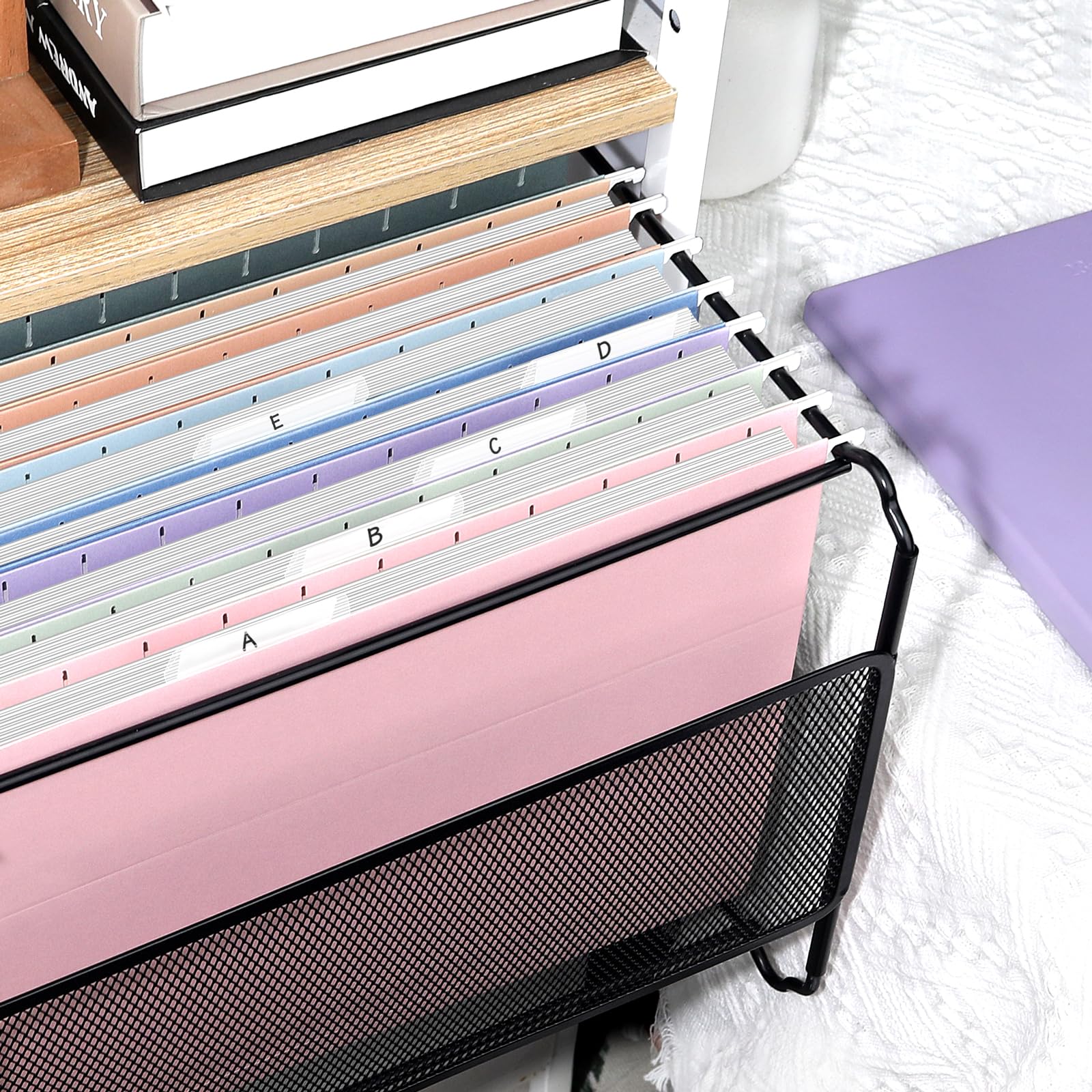 SUNEE Hanging File Folders Letter Size, Pastel Colors, 25 Count Letter Size File Folders with 1/5-cut Tabs, Heavy Duty 2 Inch Expansion, Stay Organized for Your Home and Office Bulk File