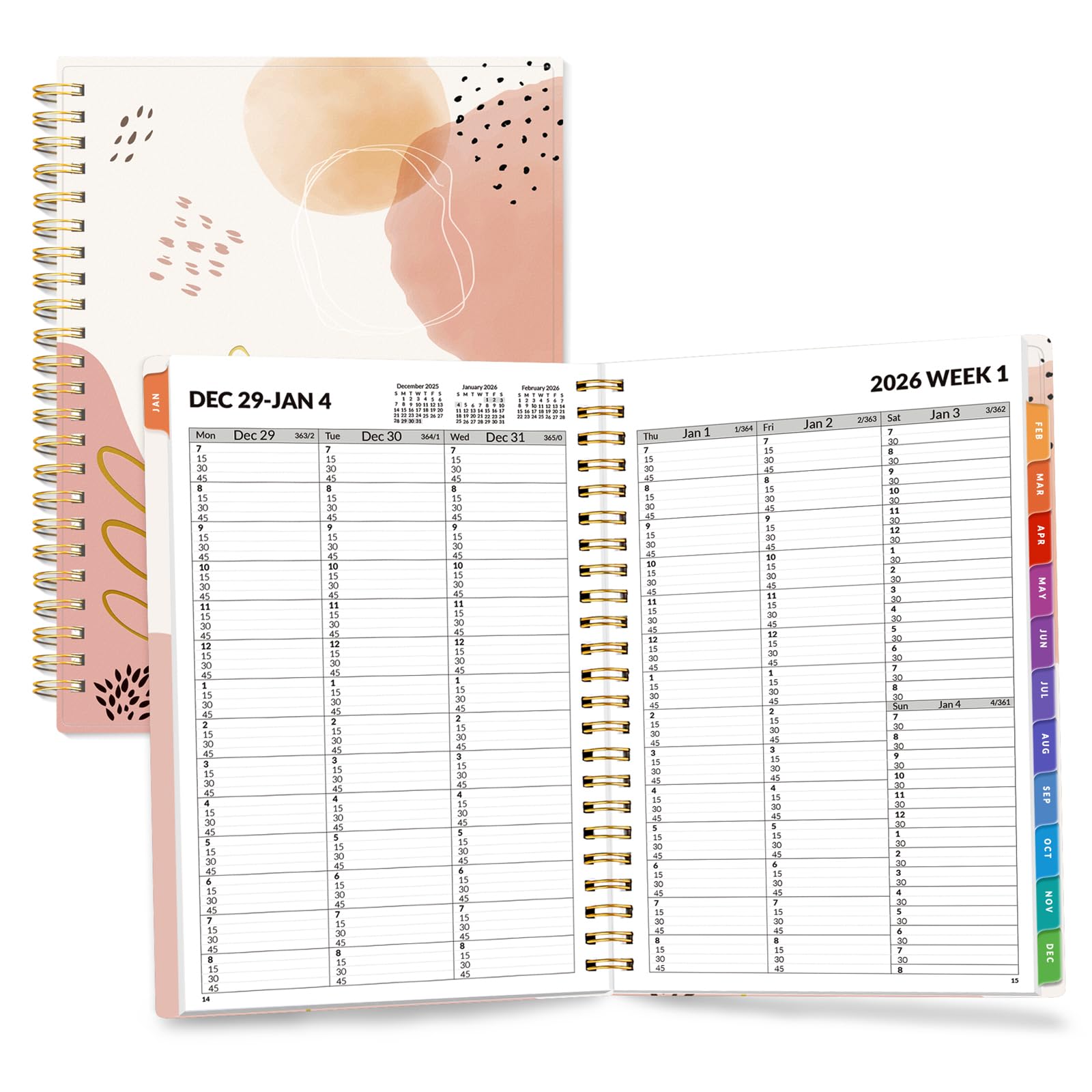SUNEE 2026 Appointment Book, Quarter-Hourly, Weekly & Monthly - from January 2026 - December 2026, 6.4"x8.3" Weekly Planner, Flexible Cover, Note Pages, Pockets, Bookmark, Spiral Binding, Pink Breeze