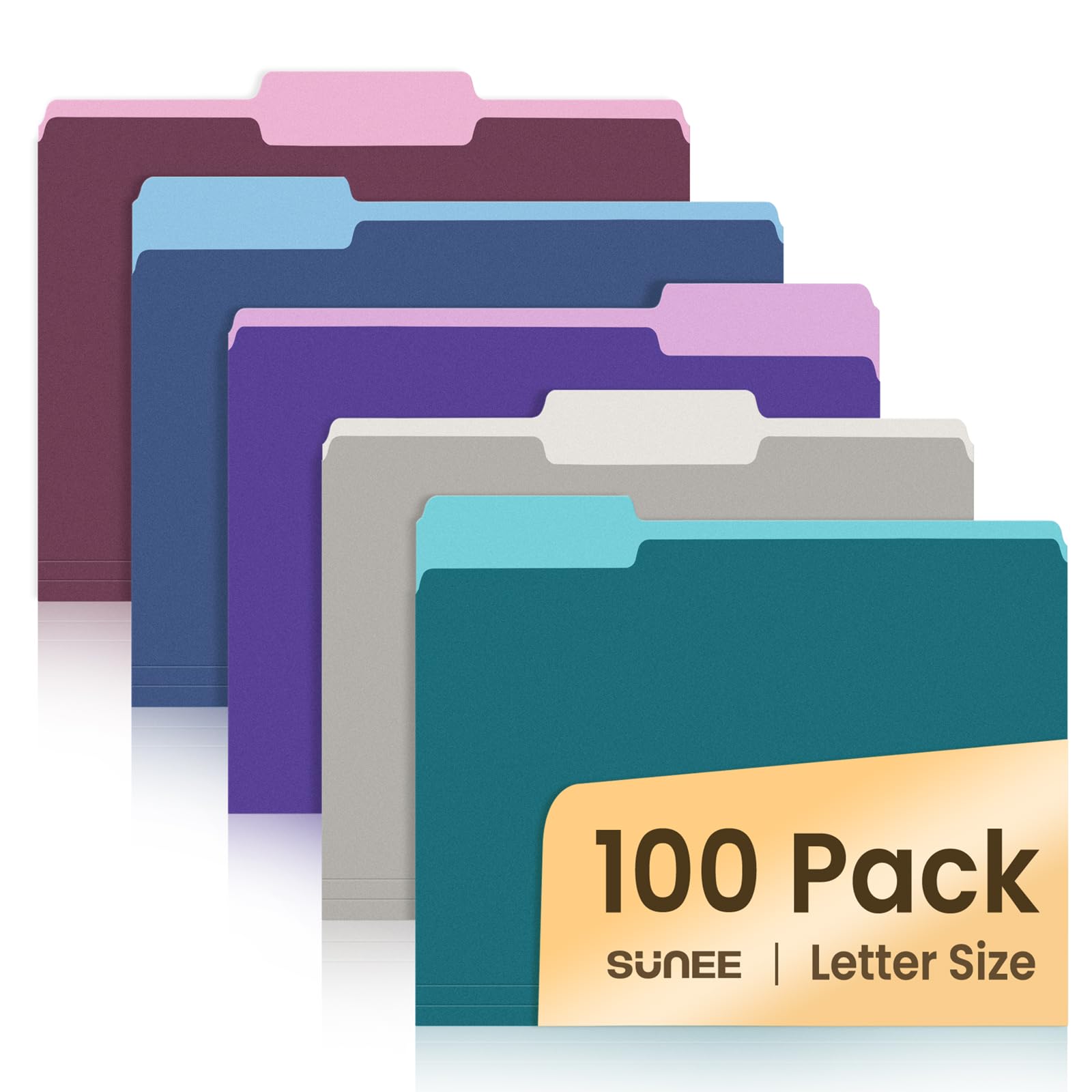 SUNEE File Folders, 100 Pack Manila File Folders 1/3 Cut Letter Size, Colored Folders,Office Organization,Folders for School,Files Paper Home and Classroom,5 Bright Color