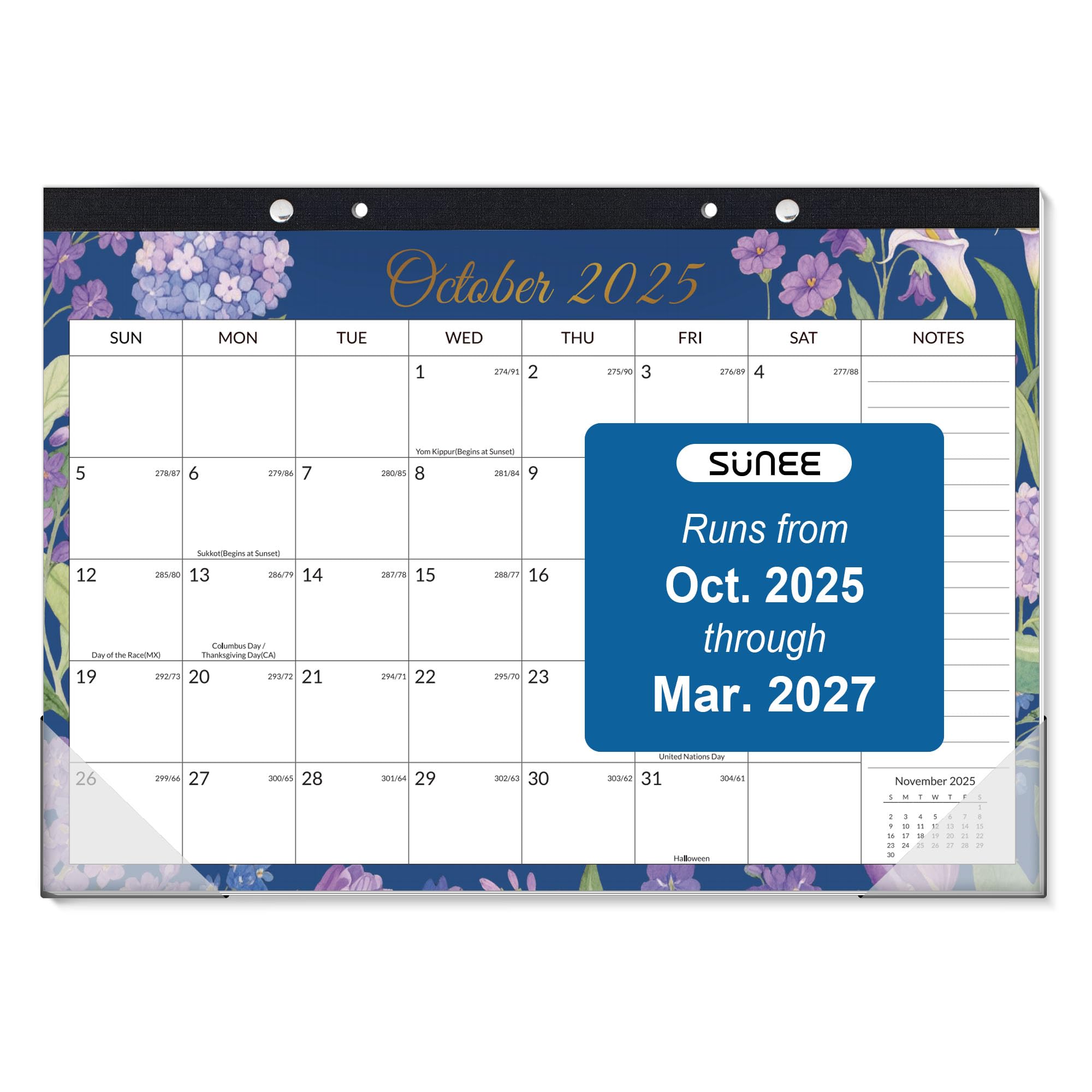 SUNEE Desk Calendar 2025-2026 - 18 Month Calendar Oct 2025 - Mar 2027, 17" x 12" Desktop Calendar with Notes, for Planning, Organizing in Family, School or Office - Colorful Floral 2026 Calendar