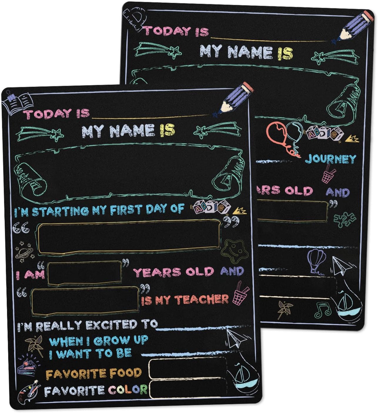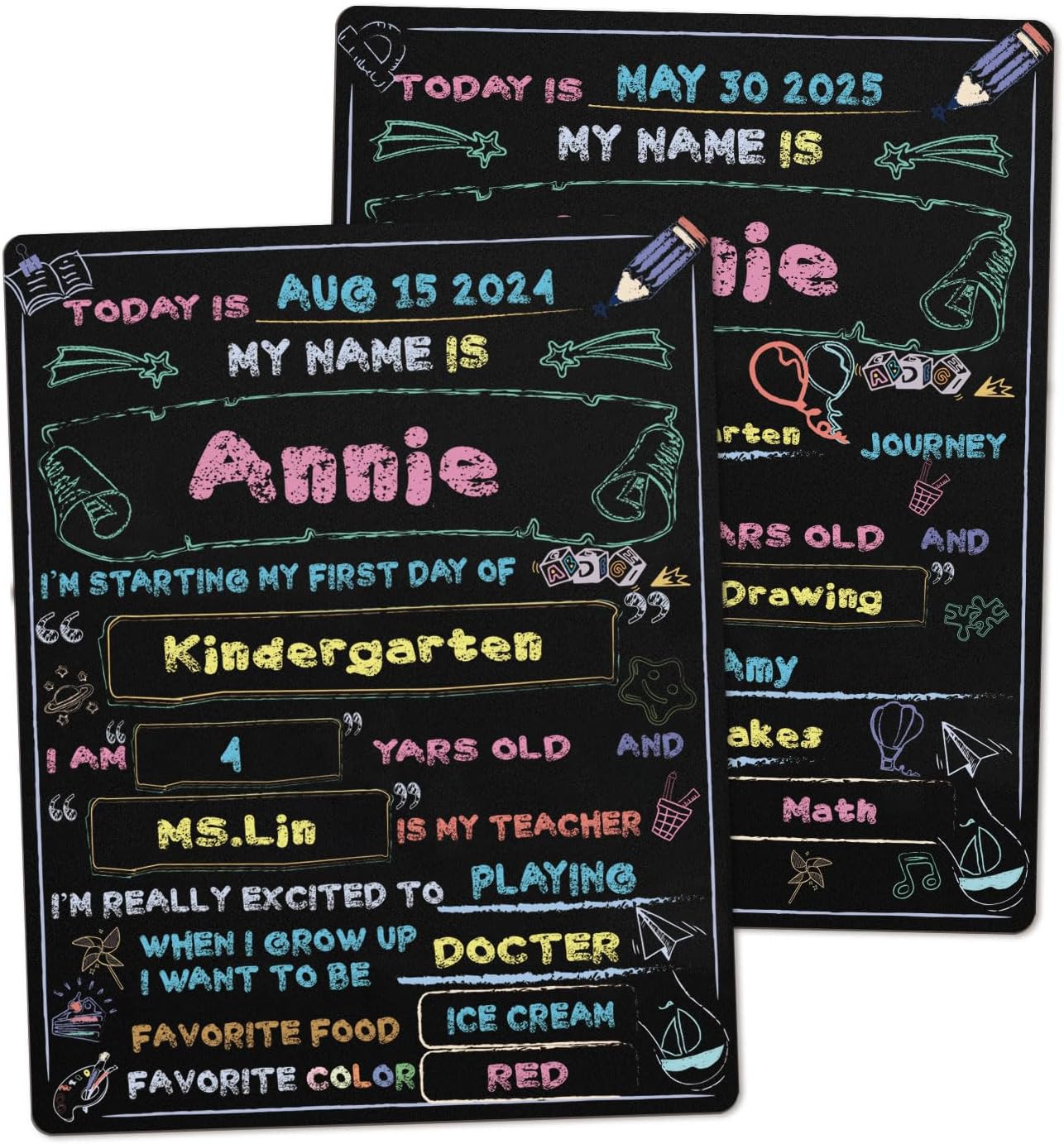 【1ST Day and Last Day of School Chalkboard】: The school blackboard sign features a double-sided design with self-introductions about beginnings and endings. The vibrant design is sure to pique their interest. It's a perfect back-to-school sign for children.