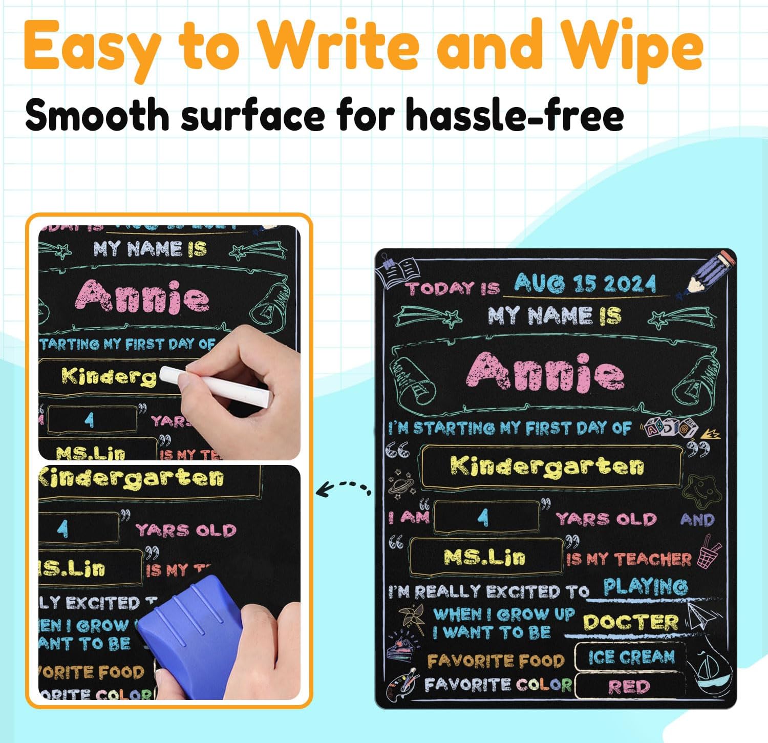 【Easy to Write and Clean】: School chalkboard sign for kids first and last day simple to erase and reuse. Smooth writing with solid chalk and easy to wipe with damp paper towel or damp cloth.