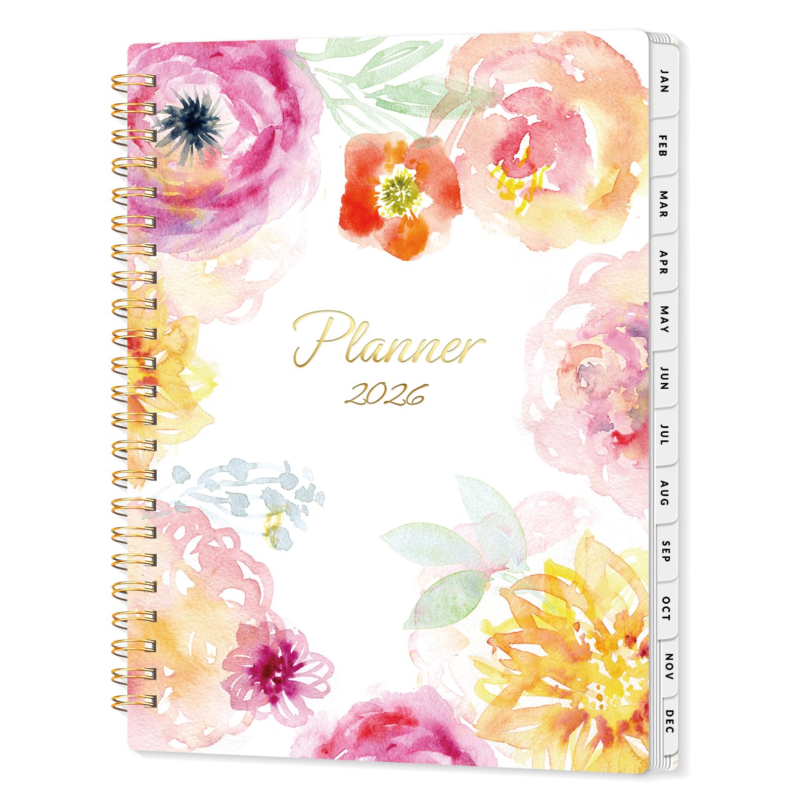 SUNEE Planner 2026 Weekly and Monthly, January 2026-December 2026, 8.5"x11", Tabs, Note Pages,Spiral Binding, Flora
