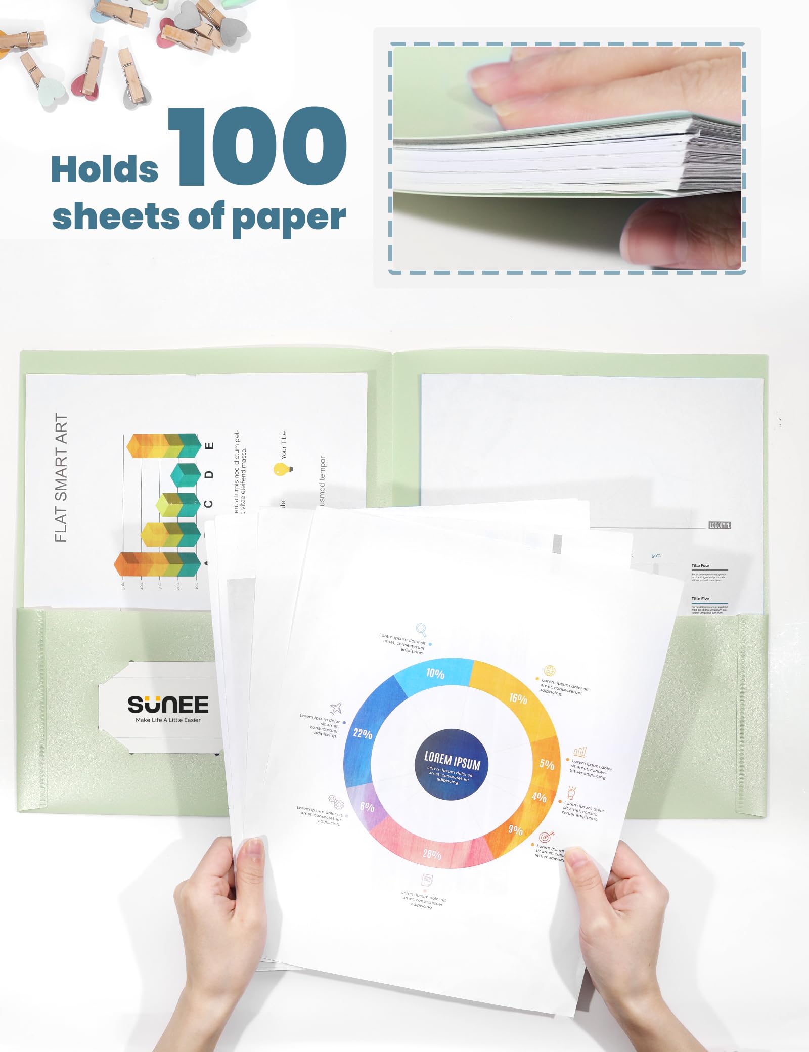 【SIZES】The 9 1/2 x 11 1/2 inches Poly file folders with 2 pockets fit 8.5"x11" paper perfectly. You can easily and neatly stack 50 pages of letter-size paper per pocket.