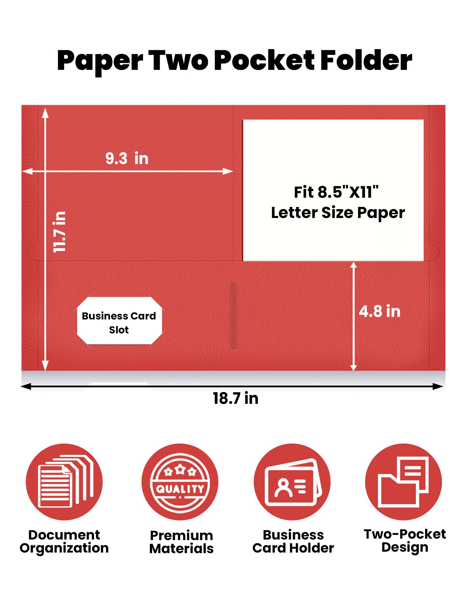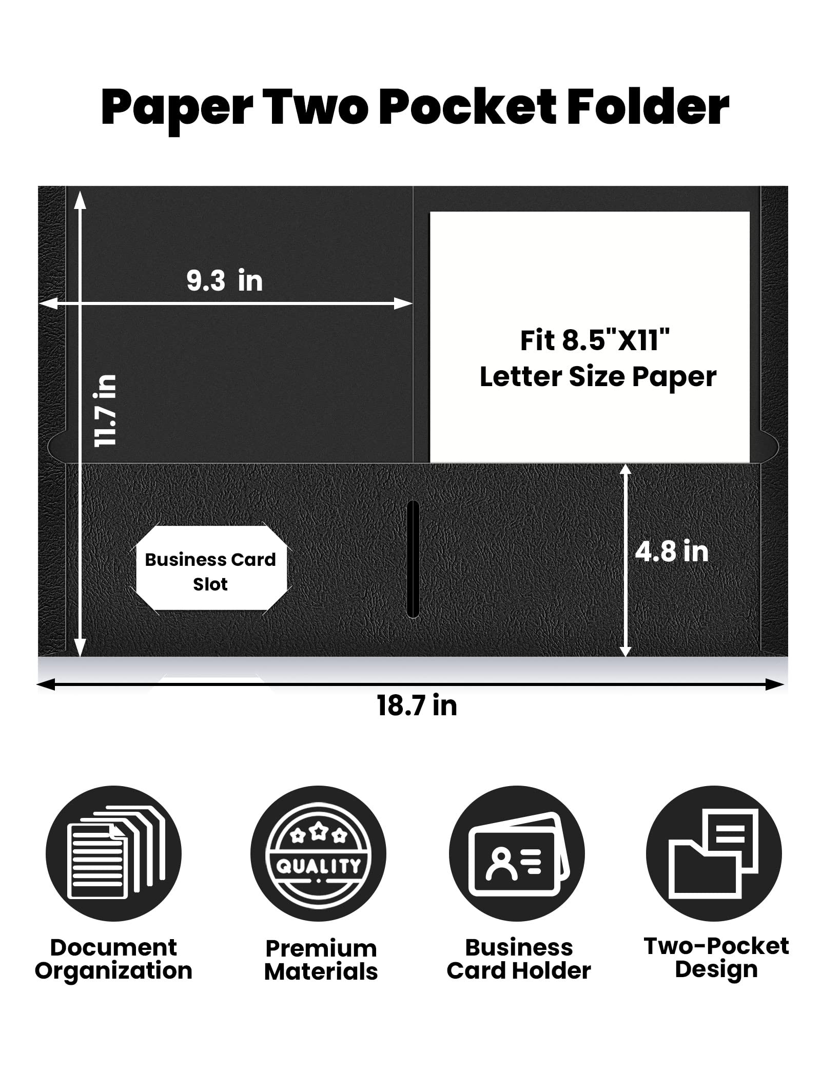 【Multifunctional】Each folder for documents has a business card holder design, making it a great choice for students, teachers, and school administrators. 2 pocket folders are traditionally used as school supplies, but they also work well for home projects, receipts, tax paperwork, and more.