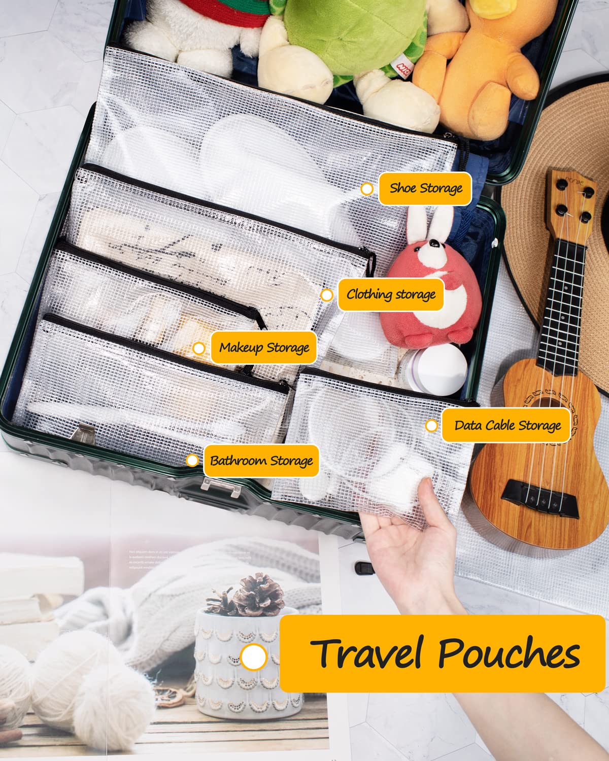 【SIMPLY SORTING YOUR ITEMS】- Make it easy to organize and classify items of various shapes at work and home; everything will be conveniently stored in clear pouches with zipper for quick and easy access. Stay clutter-free and enjoy hassle-free organization with these compact and portable mesh zipper pouches.