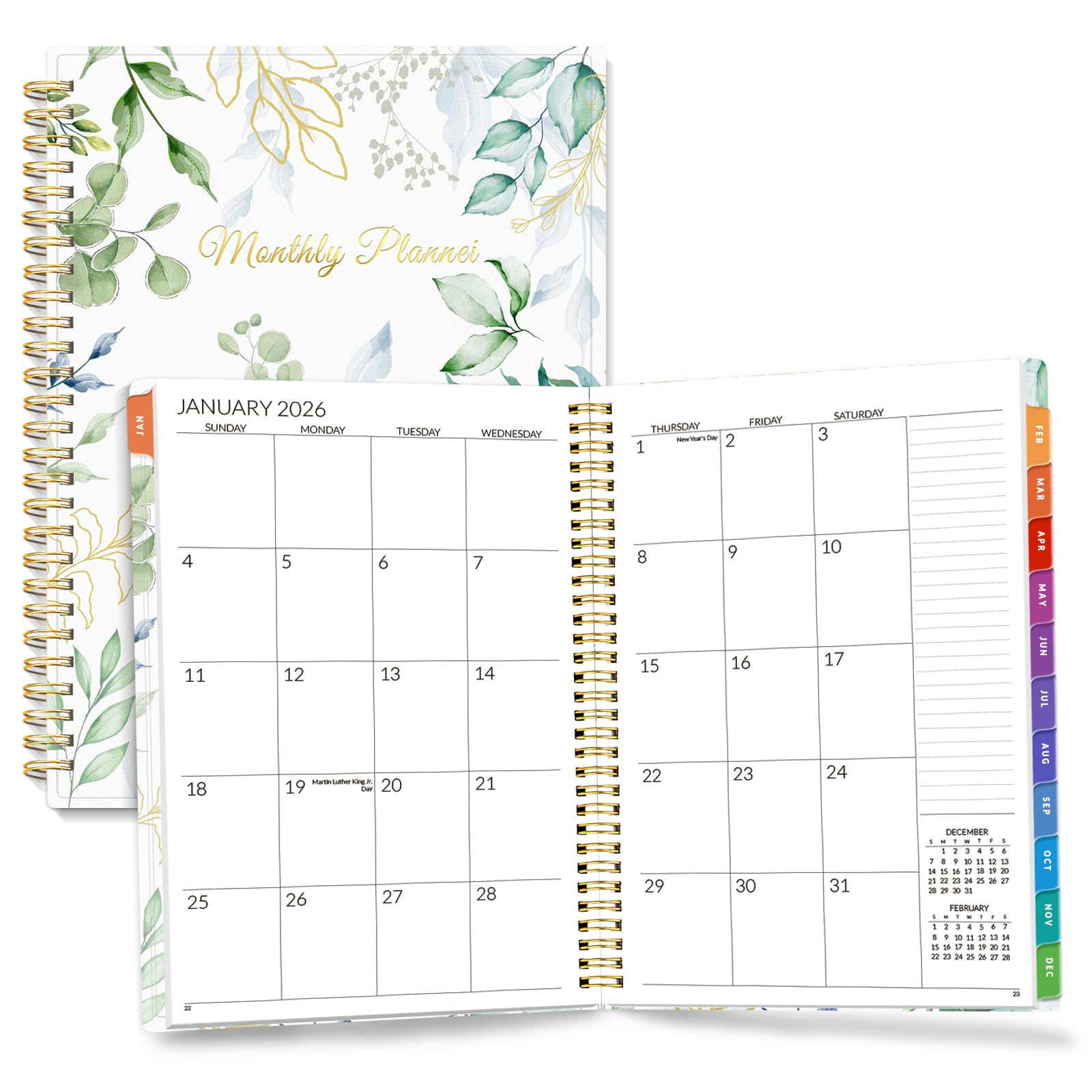 SUNEE 2026-2027 Planner - 24 Months (Jan 2026 - Dec 2027) - 7"x10" Monthly Spreads & Yearly Planner, Greenery