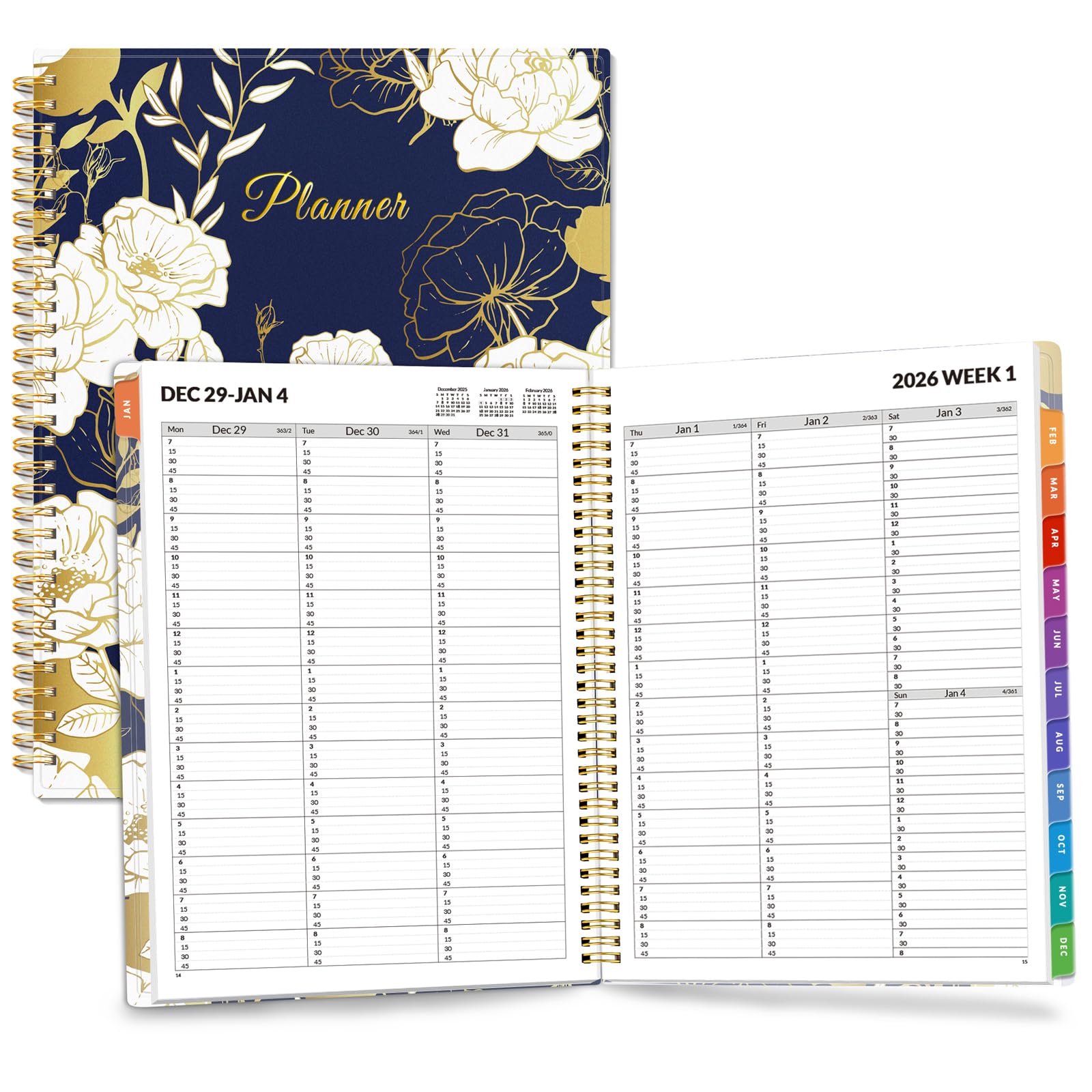 SUNEE 2026 Appointment Book, Quarter-Hourly, Weekly & Monthly - from January 2026 - December 2026, 8.5"x11" Weekly Planner, Flexible Cover, Note Pages, Pockets, Bookmark, Spiral Binding, Dark Blue