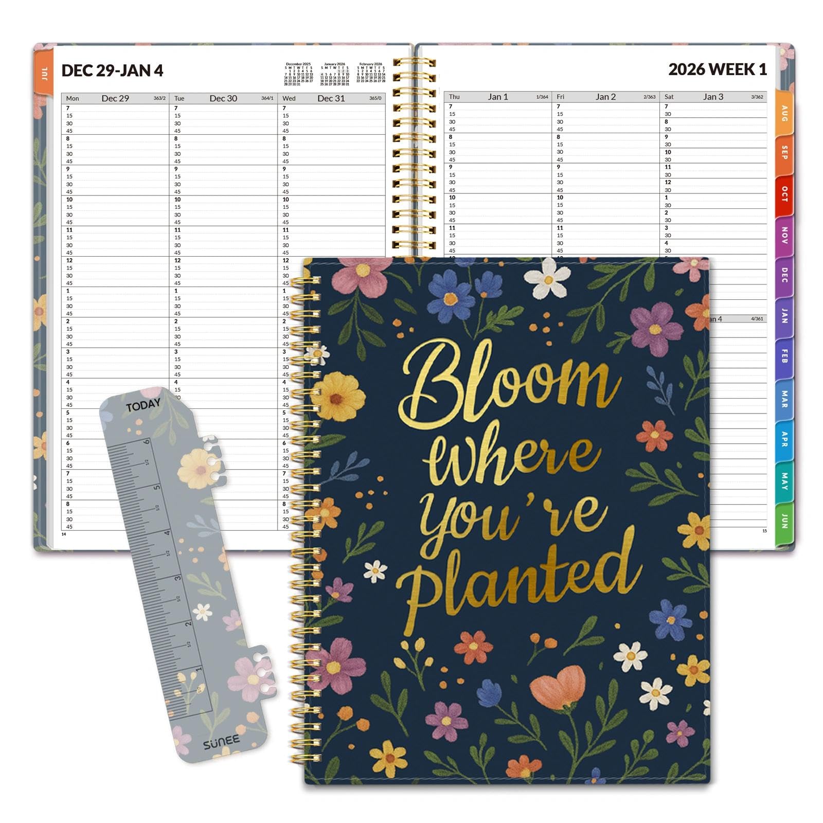 SUNEE 2026 Appointment Book, Quarter-Hourly, Weekly & Monthly - from January 2026 - December 2026, 8.5"x11" Weekly Planner, Flexible Cover, Note Pages, Pockets, Bookmark, Spiral Binding, Navy Flower