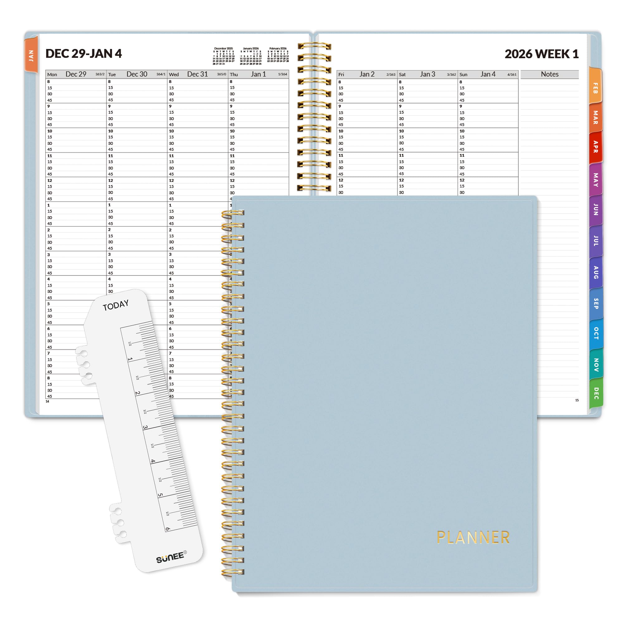 SUNEE 2026 Appointment Planner 15-Minute Time Block – Weekly & Monthly Spiral Organizer with Note Section – Thick Paper, Lay-Flat Bound – 8.5 x 11 for Office, School, Salon, Men & Women, Gray Blue