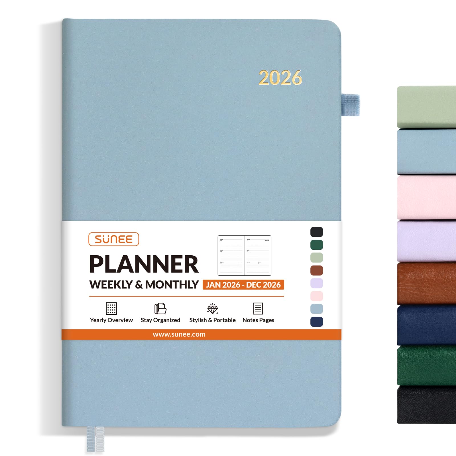 SUNEE 2026 Weekly & Monthly Hardcover Planner 5.5" x 8.3" - 12 Month (January 2026 - December 2026), Small Hardcover Planner, Pocket, Notes, 100 GSM Paper, Gray Blue
