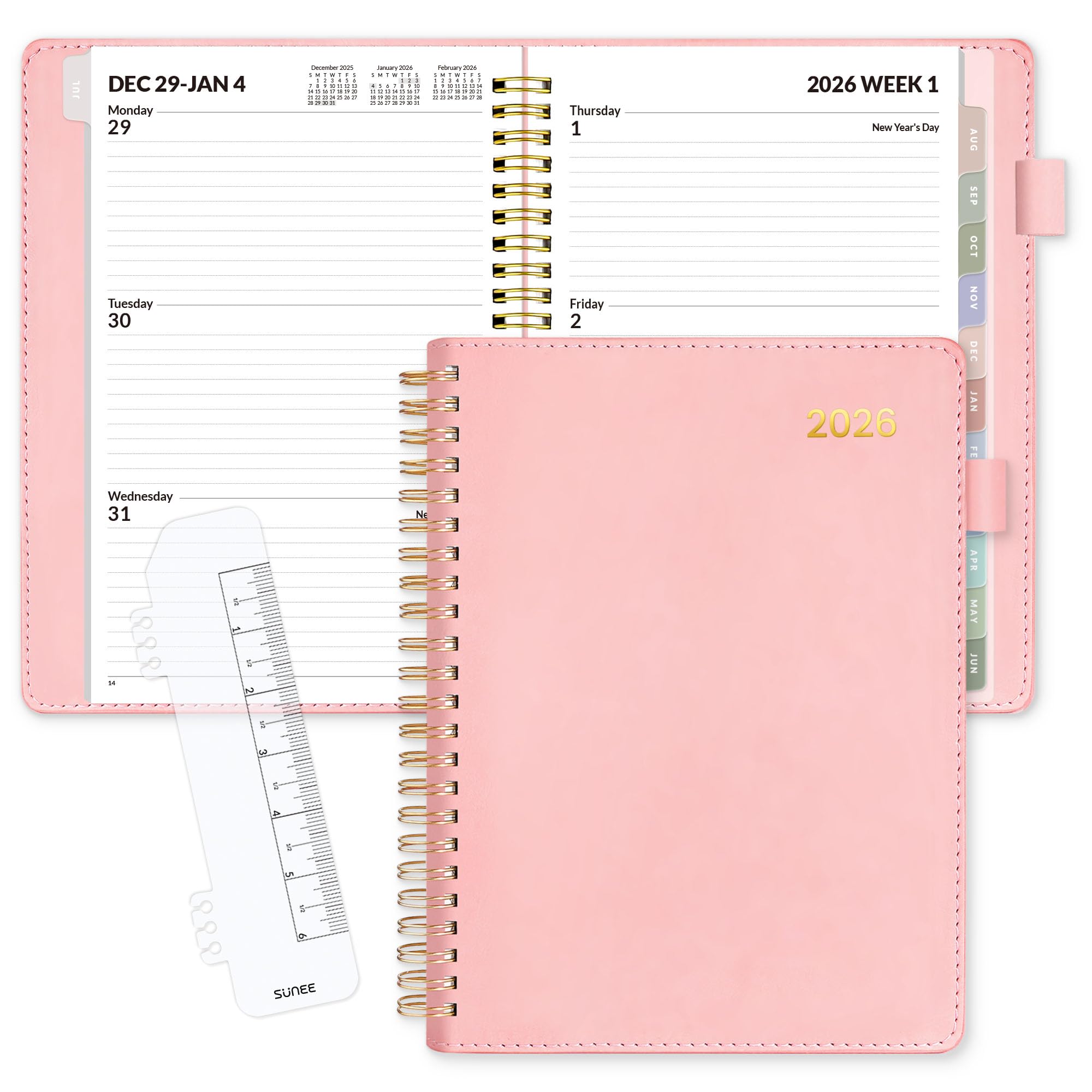 Stay organized throughout 2026 with the SUNEE Weekly & Monthly Planner, designed for practical and efficient planning. Measuring 6.4"x8.5", this 12-month planner covers January to December 2026, featuring both weekly and monthly layouts for detailed scheduling. Crafted with a durable vegan leather cover in a subtle peach pink, it includes a convenient pocket for essentials, a bookmark for quick access, notes sections to capture ideas, and monthly tabs for effortless navigation. Ideal for professionals seeking structure and style in their daily planning.