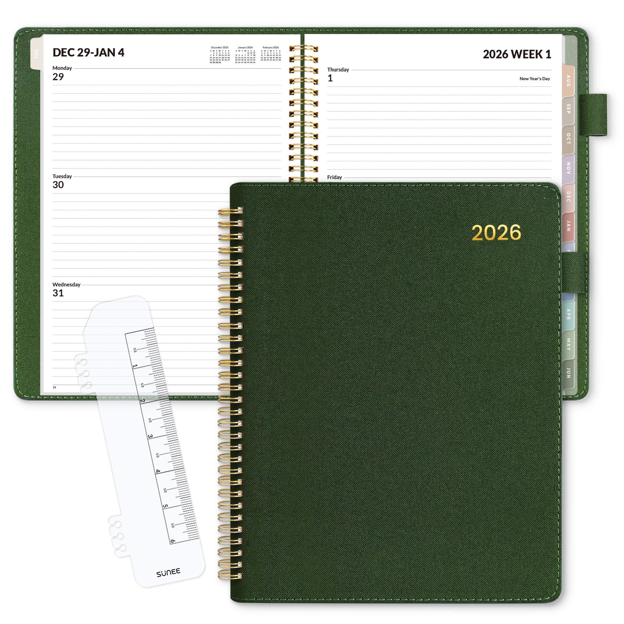 Designed for effective time management, the SUNEE 2026 Weekly & Monthly Planner spans January to December 2026. Its 9" x 11.2" layout offers ample space for detailed scheduling. Crafted with a durable vegan leather cover in a sophisticated deep green, it includes practical features such as a pocket for essentials, a convenient bookmark, notes pages, and monthly tabs for quick navigation. This planner is an essential tool for professionals seeking organized and efficient planning throughout the year.