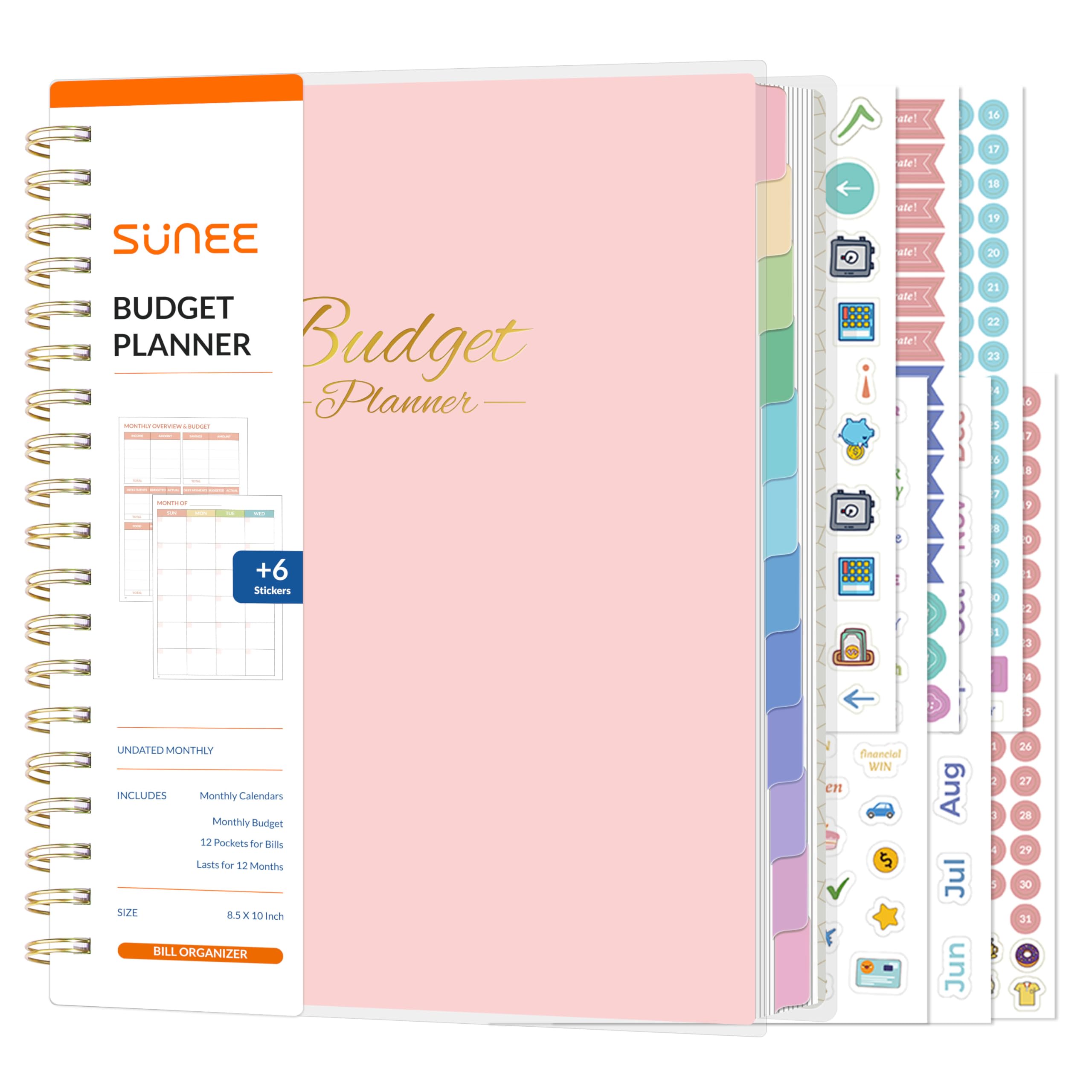 The SUNEE Budget Planner is a comprehensive financial organizer designed to streamline your monthly budgeting and expense tracking. Featuring a durable B5 size (8" x 10") format, it includes undated pages for flexible use over 12 months and 12 dedicated pockets to neatly store bills and receipts. This deluxe planner supports detailed expense management and account tracking, empowering you to maintain clear, organized financial records and make informed decisions with confidence. Its professional layout and practical features make it an essential tool for effective personal finance management.