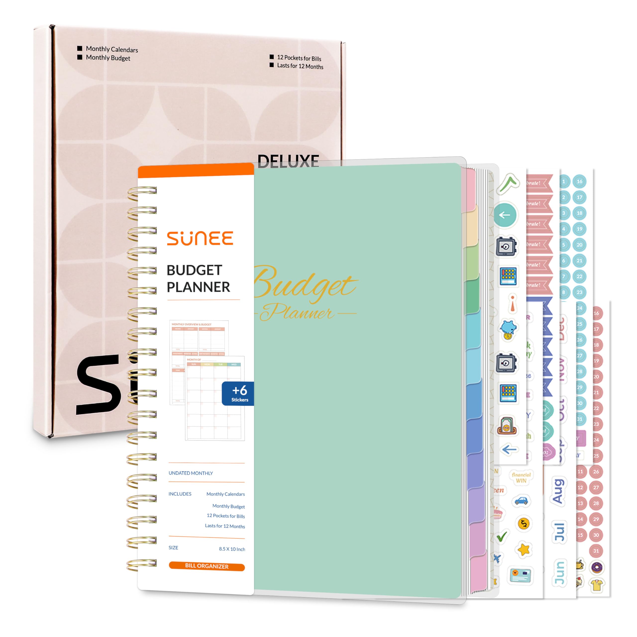 SUNEE Budget Planner - Deluxe Monthly Budget Book with 12-Pockets for Bill Organizer, Undated 12 Month Expense Tracker Notebook & Account Book B5 Size (8" x 10") to Manage Your Finance Planner, Blue
