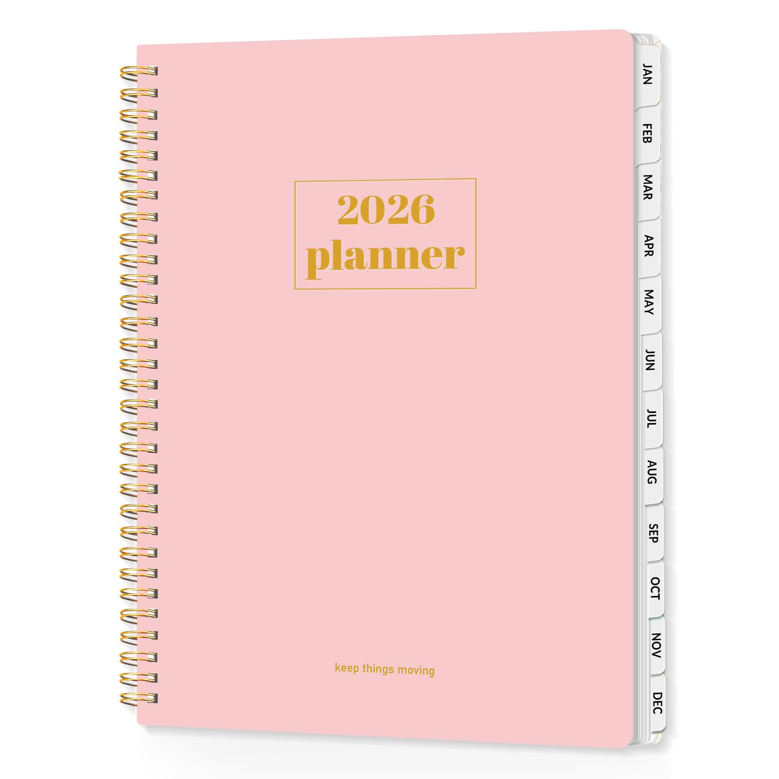 SUNEE Planner 2026 Weekly and Monthly, January 2026-December 2026, 8.5"x11", Tabs, Note Pages,Spiral Binding, Pink