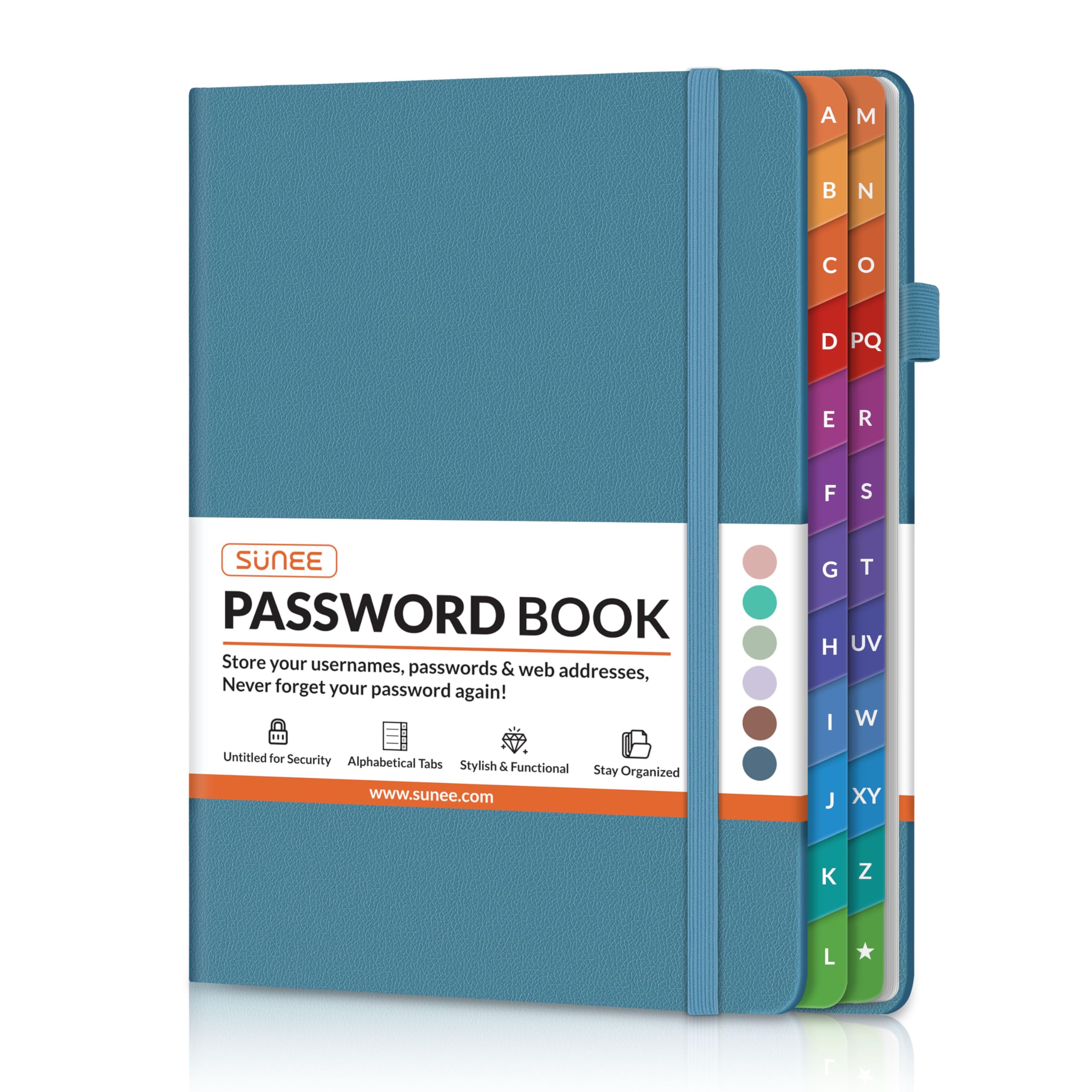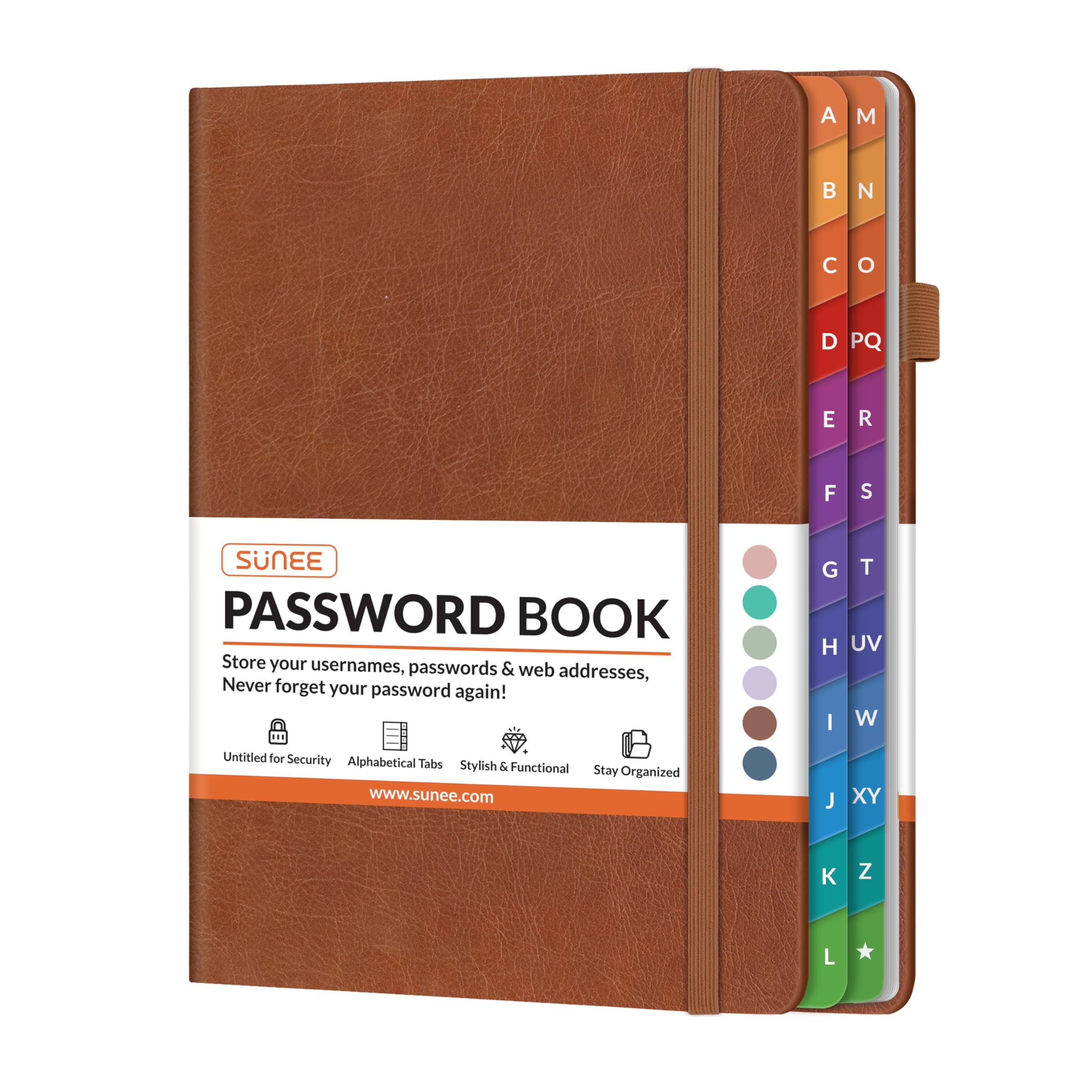 - Easy A–Z Organization – Colorful alphabetical tabs make finding logins quick and effortless