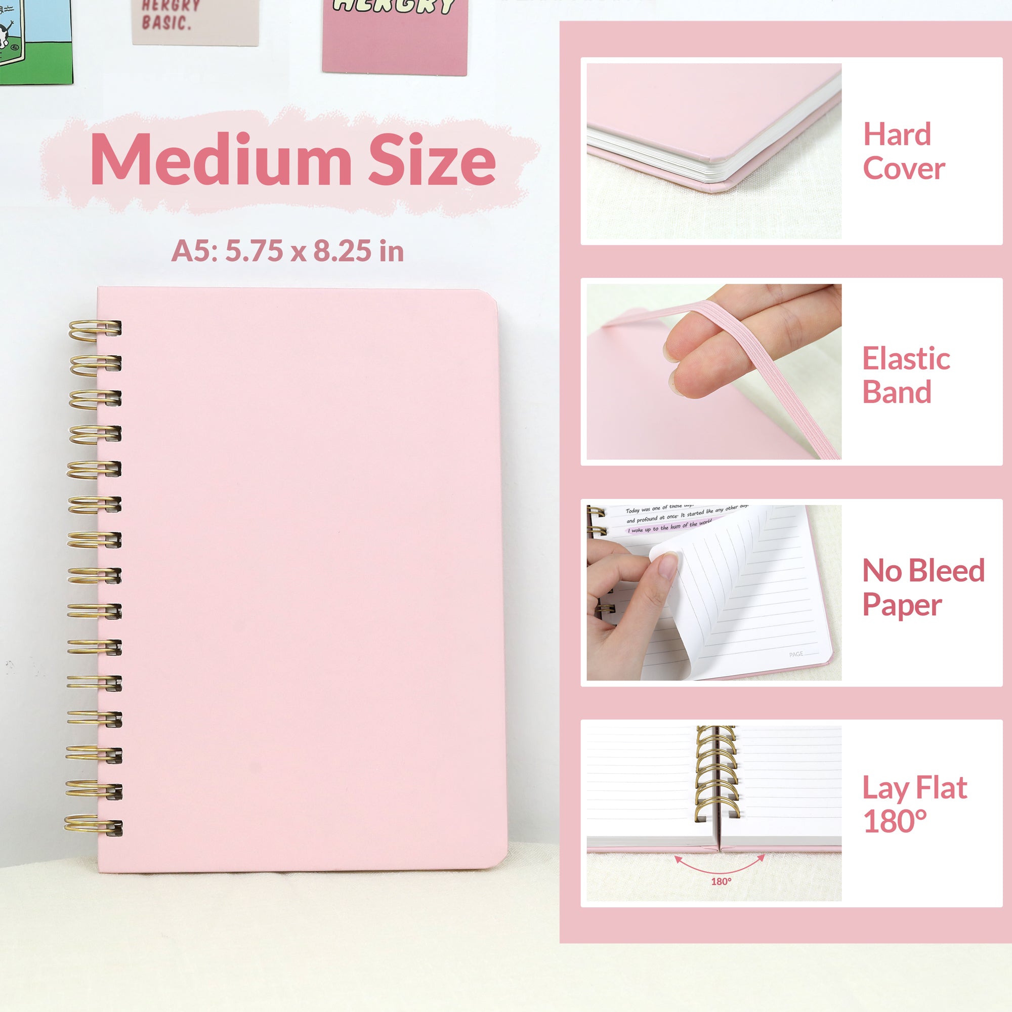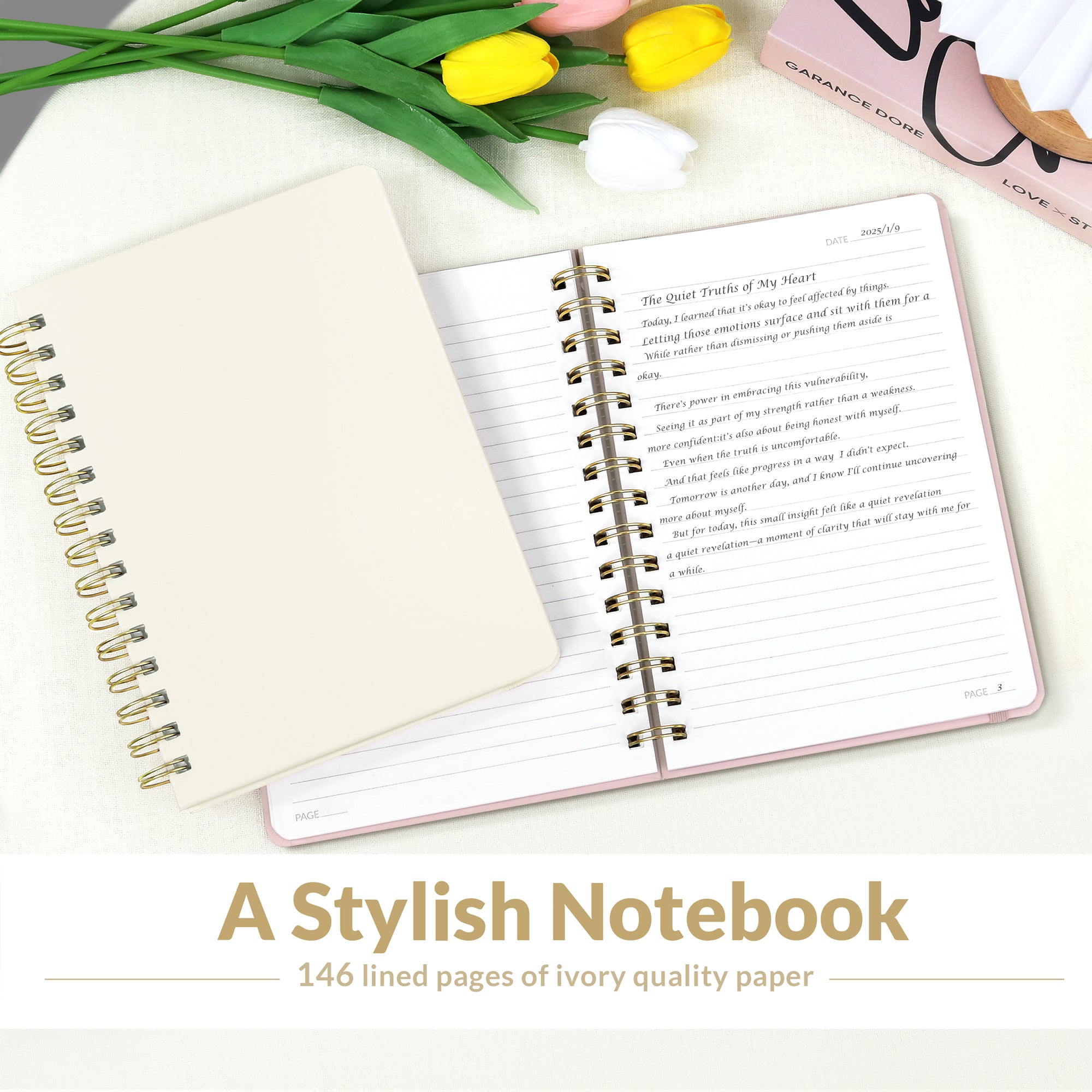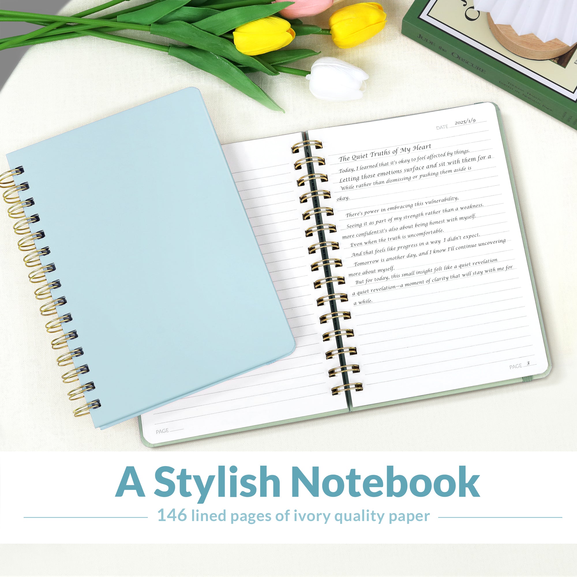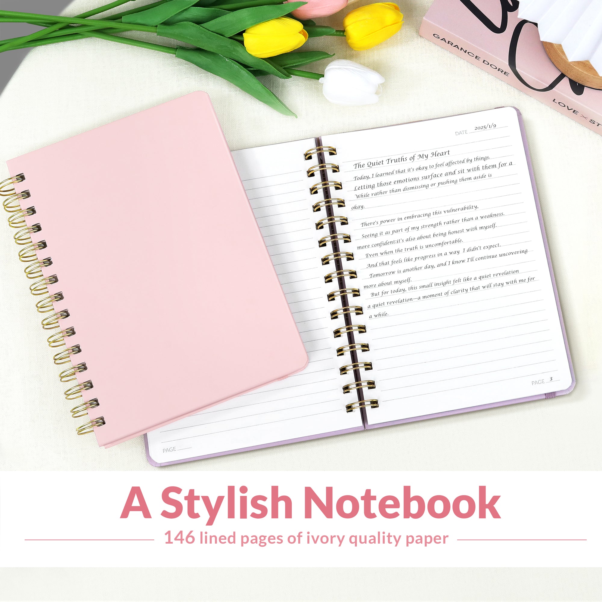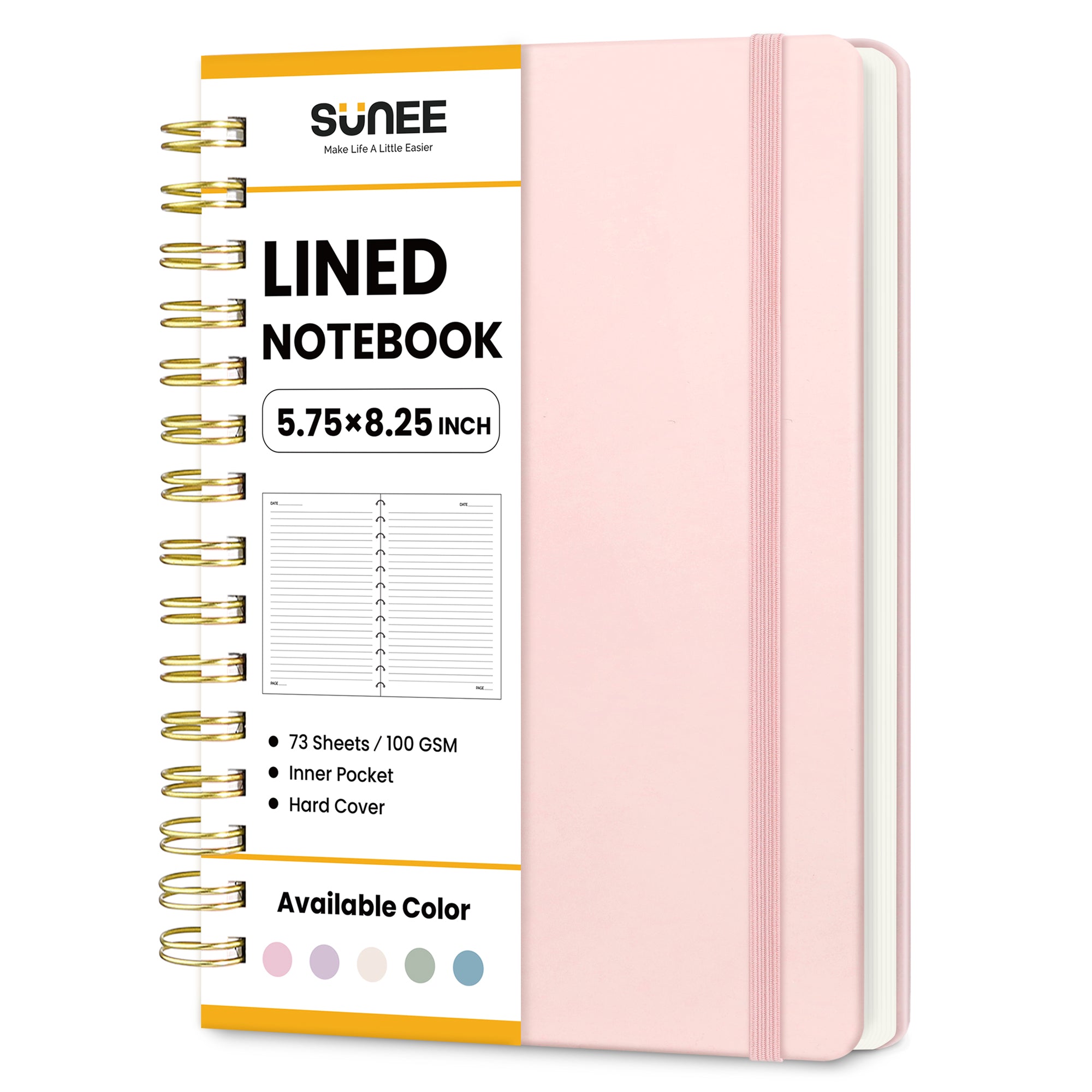 SUNEE A5 Lined Spiral Hardcover Notebook for Work, Note Taking, 146 Pages
