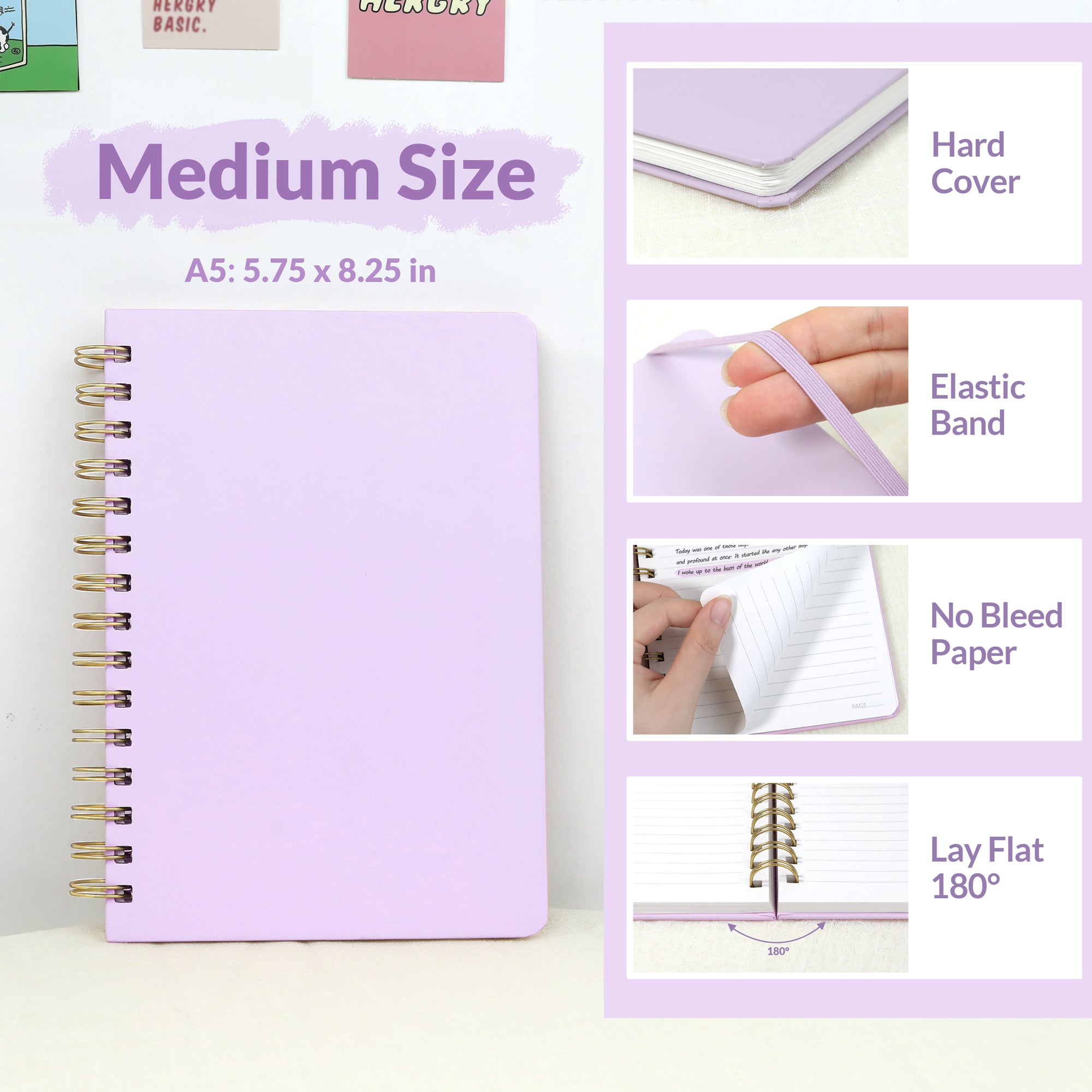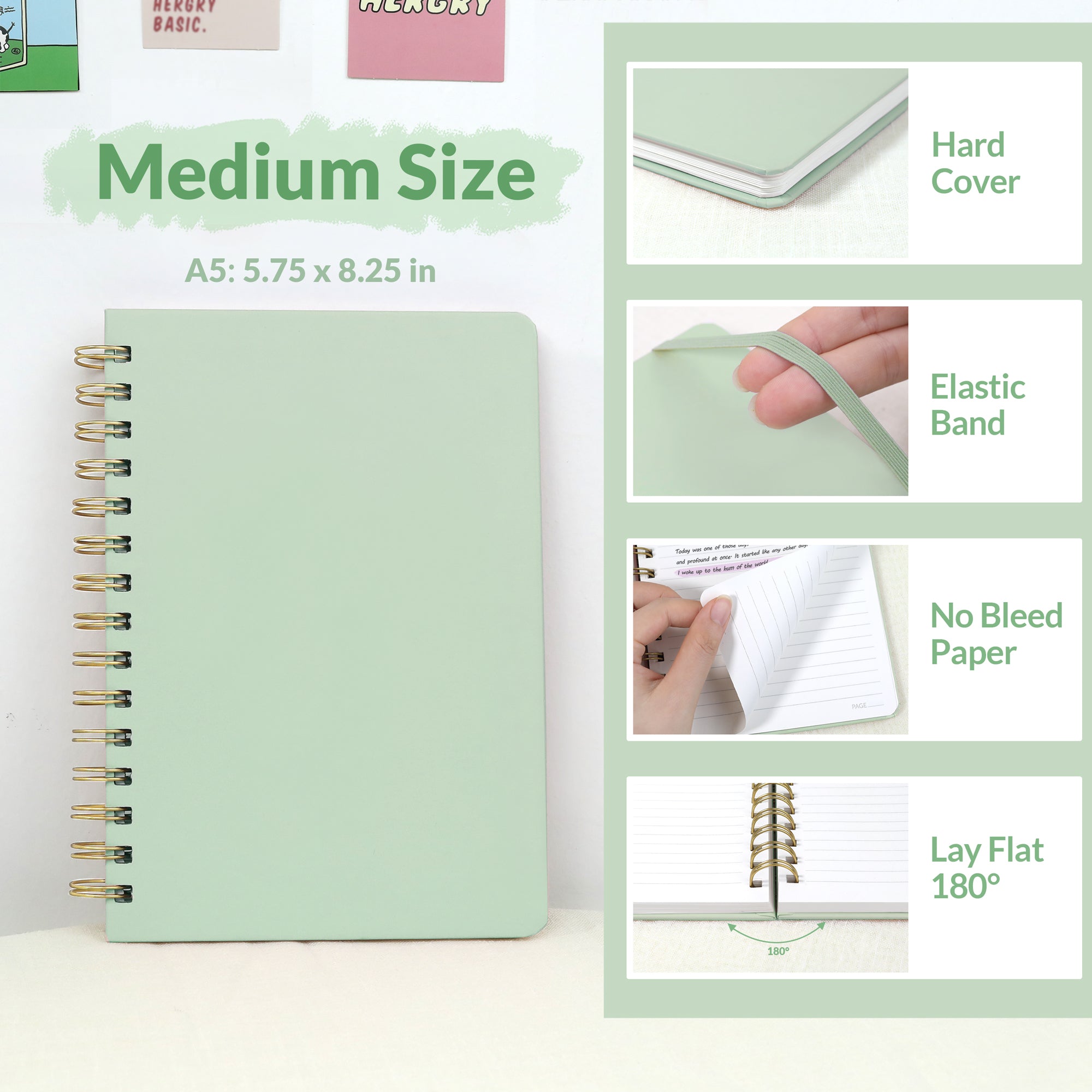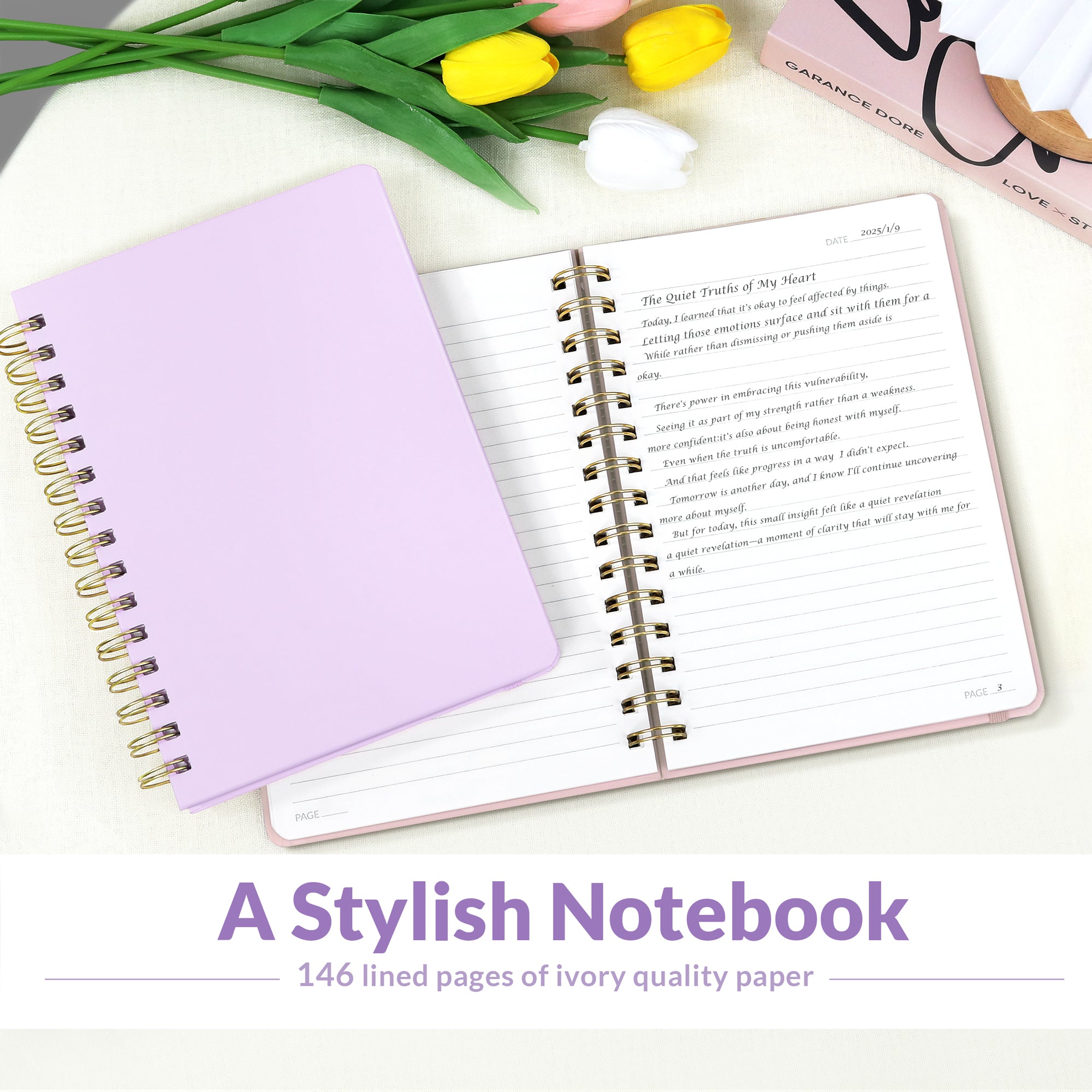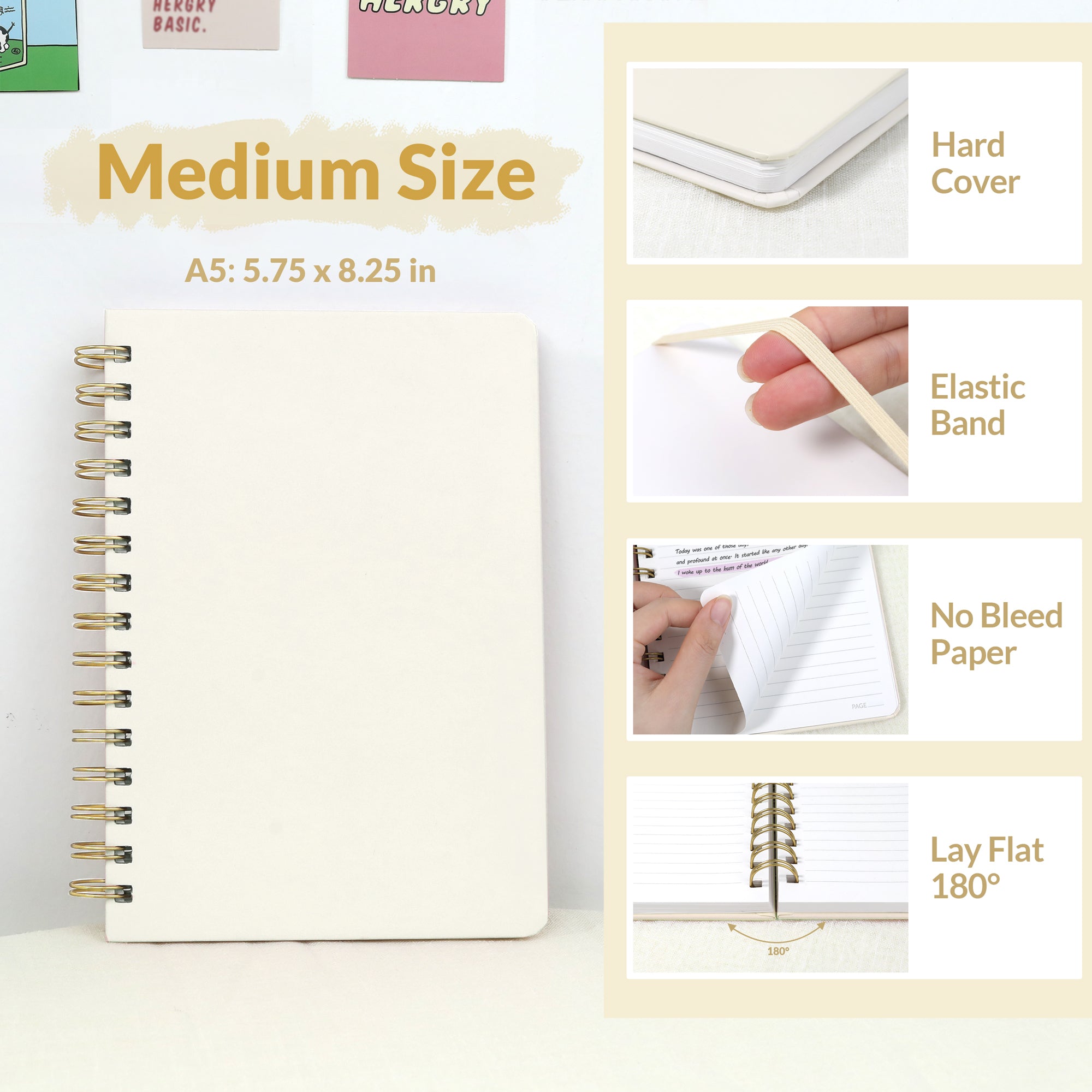 SUNEE A5 Lined Spiral Hardcover Notebook for Work, Note Taking, 146 Pages