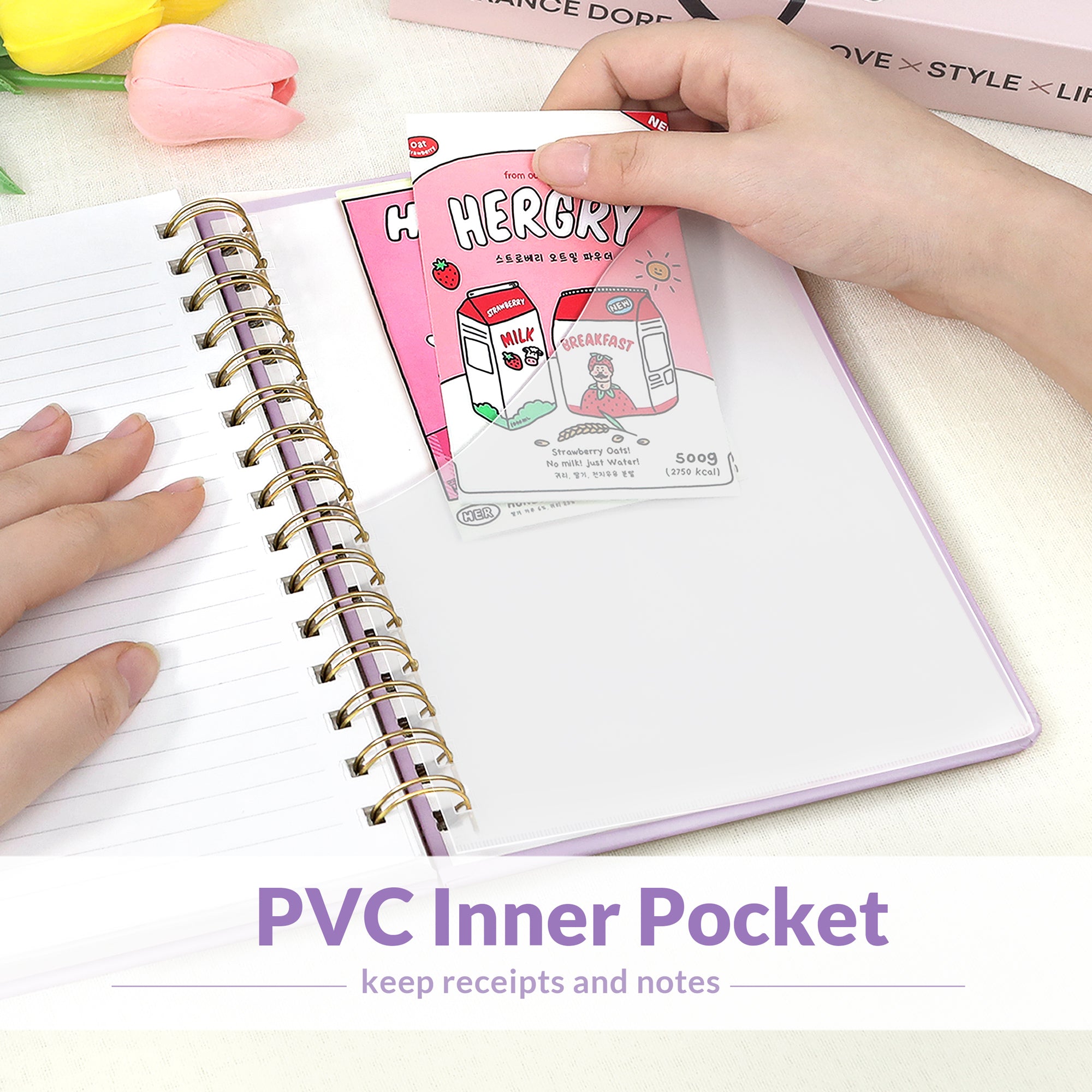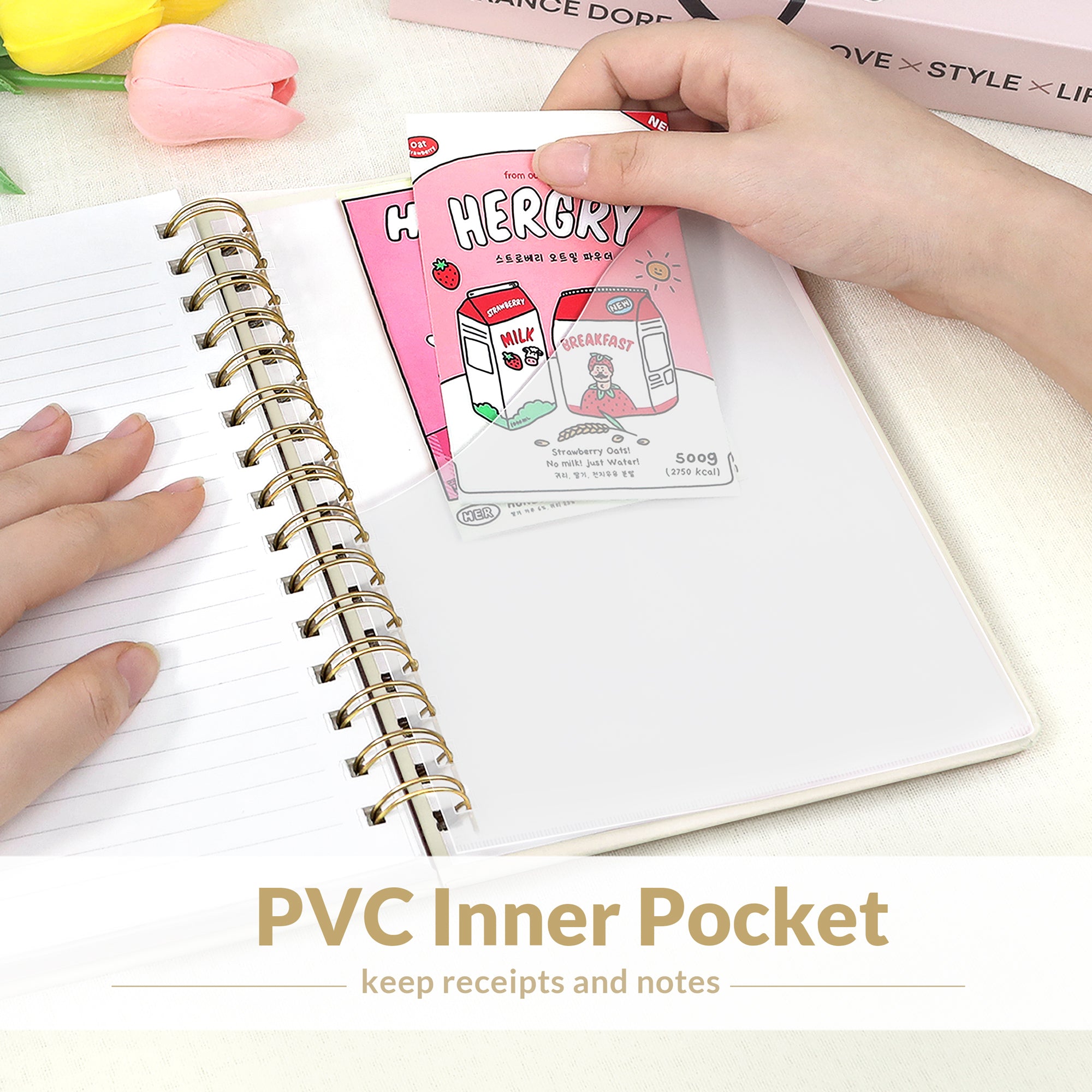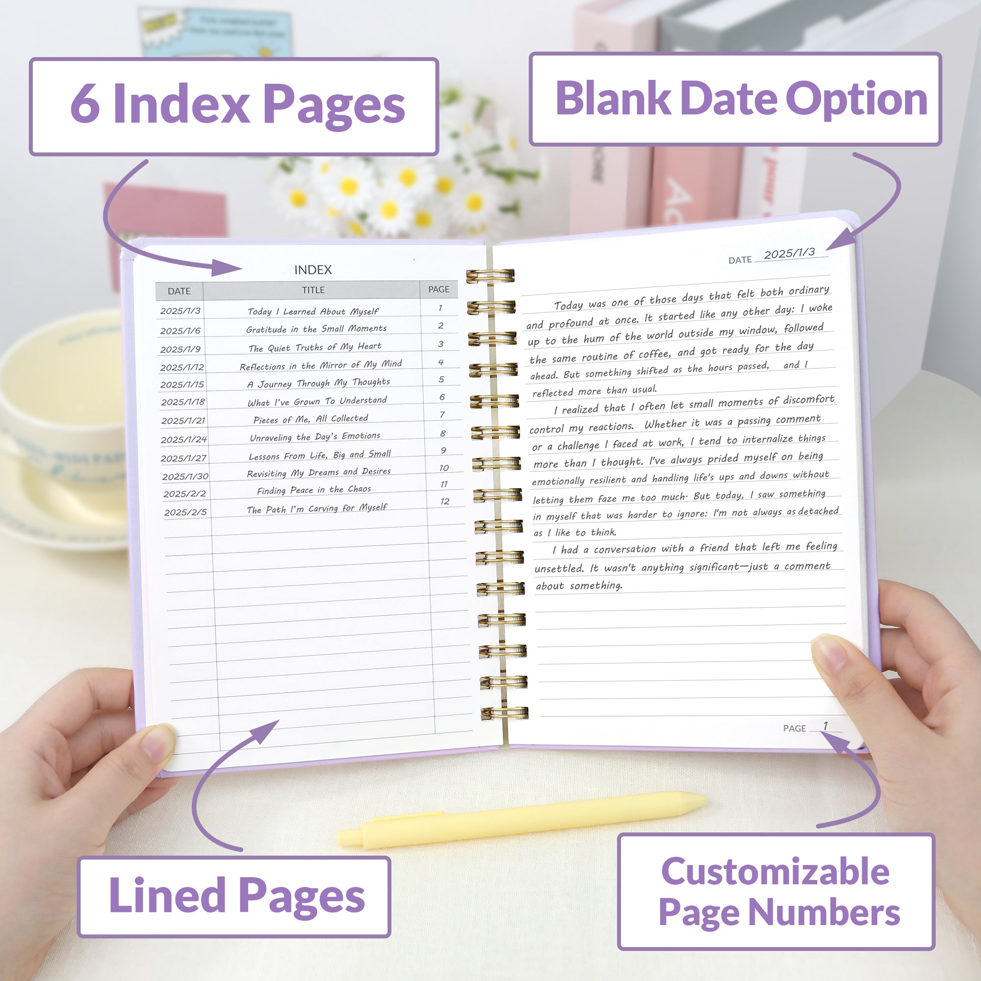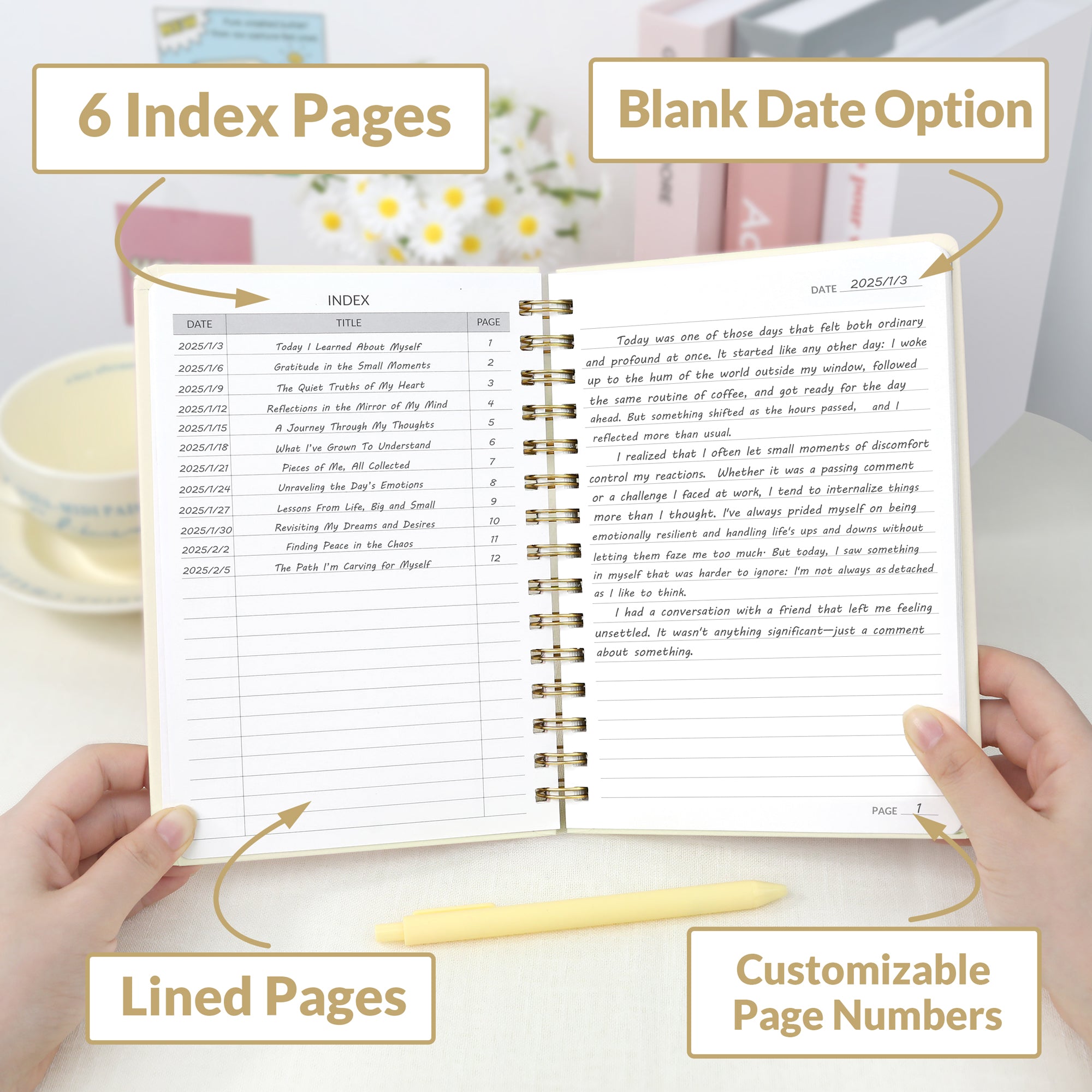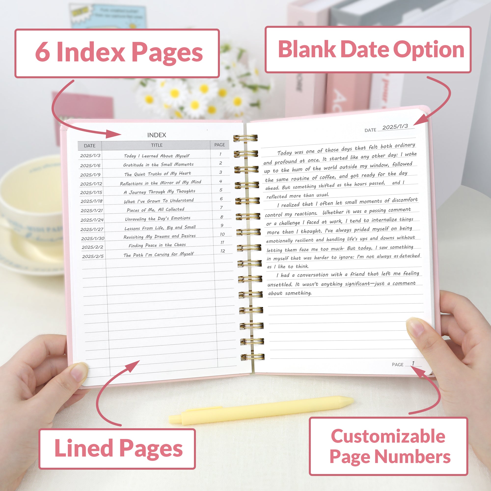 SUNEE A5 Lined Spiral Hardcover Notebook for Work, Note Taking, 146 Pages