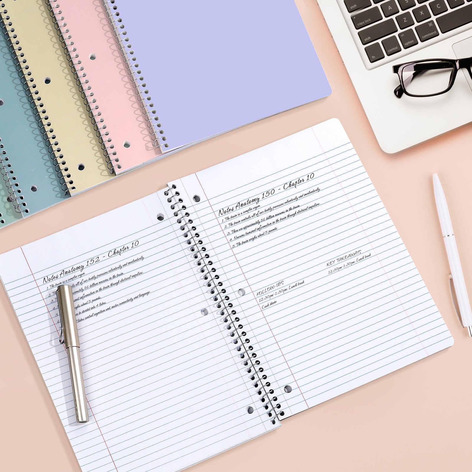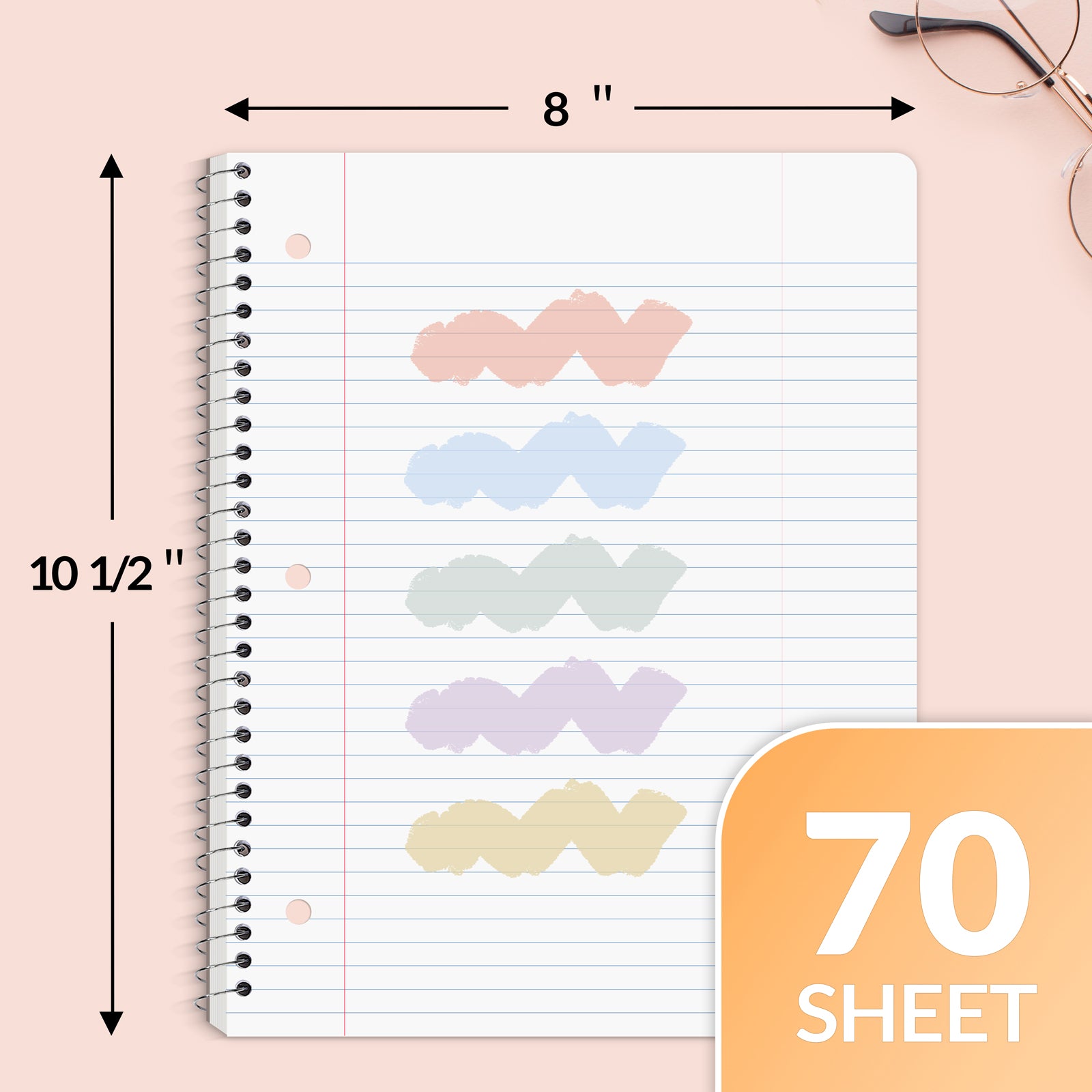 SUNEE Spiral Notebooks, 1-Subject, College Ruled Paper, 8" x 10-1/2", 70 Sheets Notebook