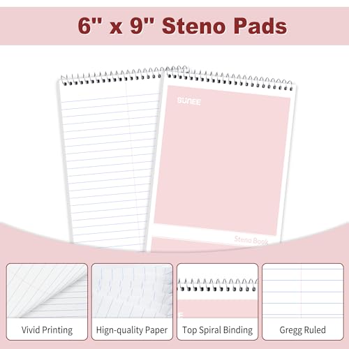 SUNEE Steno Pads 6x9 Gregg Rule 60 Sheets 6 Assorted Color