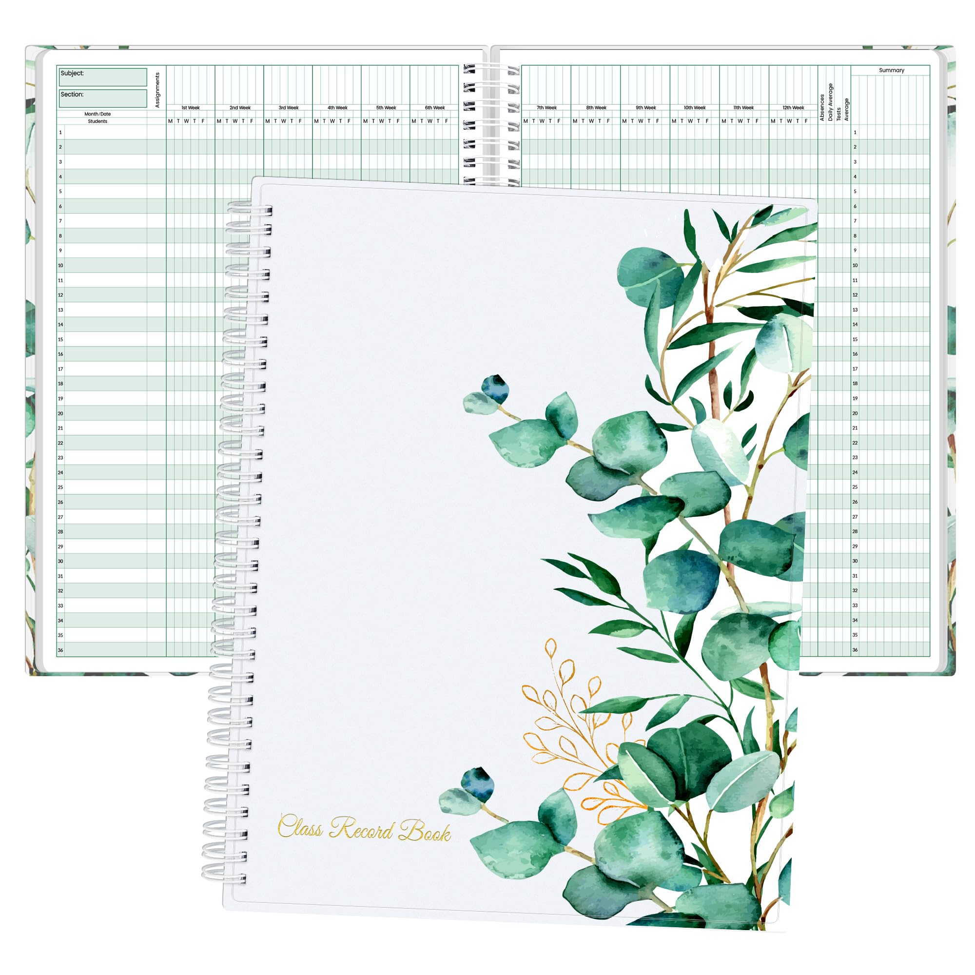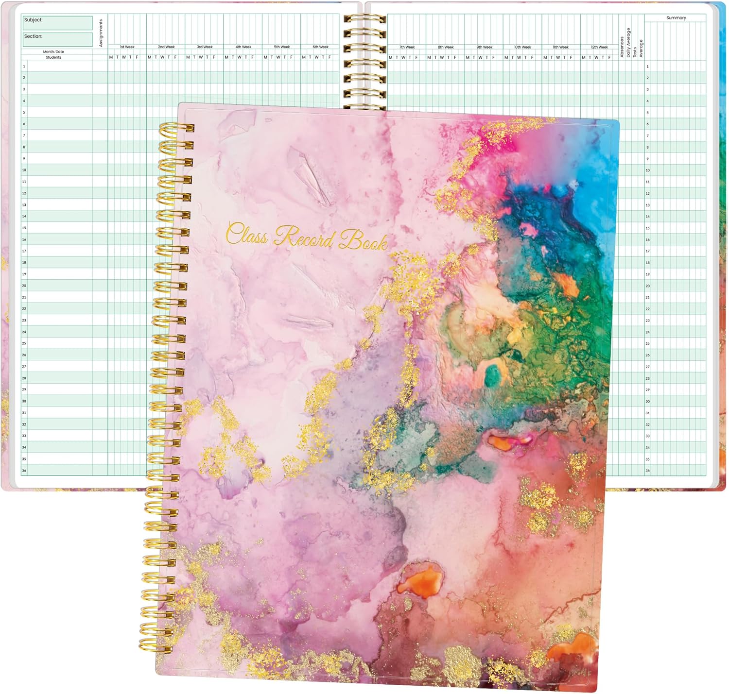 SUNEE Teacher Class Record Book for 11-12 weeks, 36 Names, 8.5x11 Inch, 104 Pages (52 Sheets), 100gsm Thick Paper, Larger Grade Recording up to 36 Students with Water-Resistant Plastic Cover, Marble