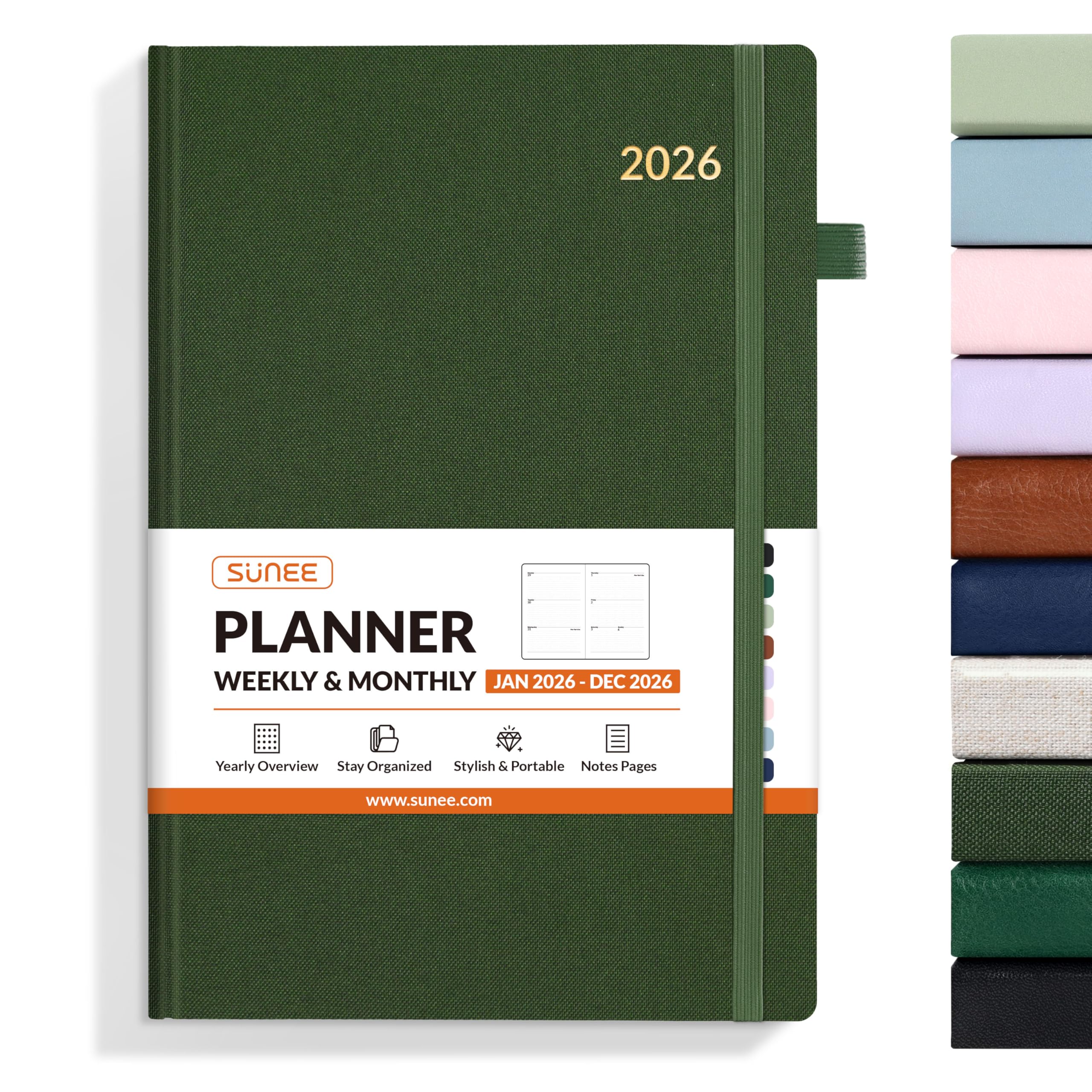 SUNEE 2026 Weekly & Monthly Hardcover Planner 5.5" x 8.3" - 12 Month (January 2026 - December 2026), Small Hardcover Planner, Pocket, Notes, 100 GSM Paper, Deep Green