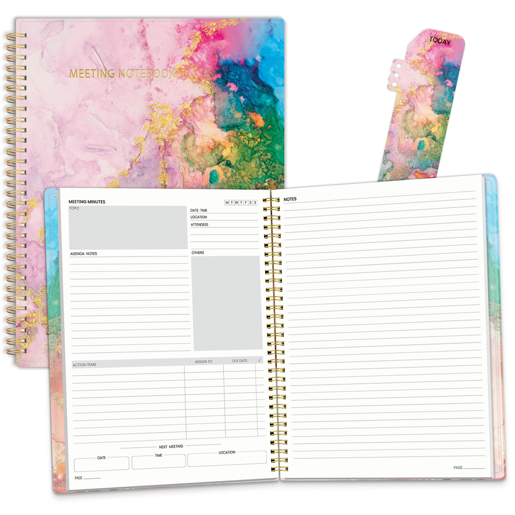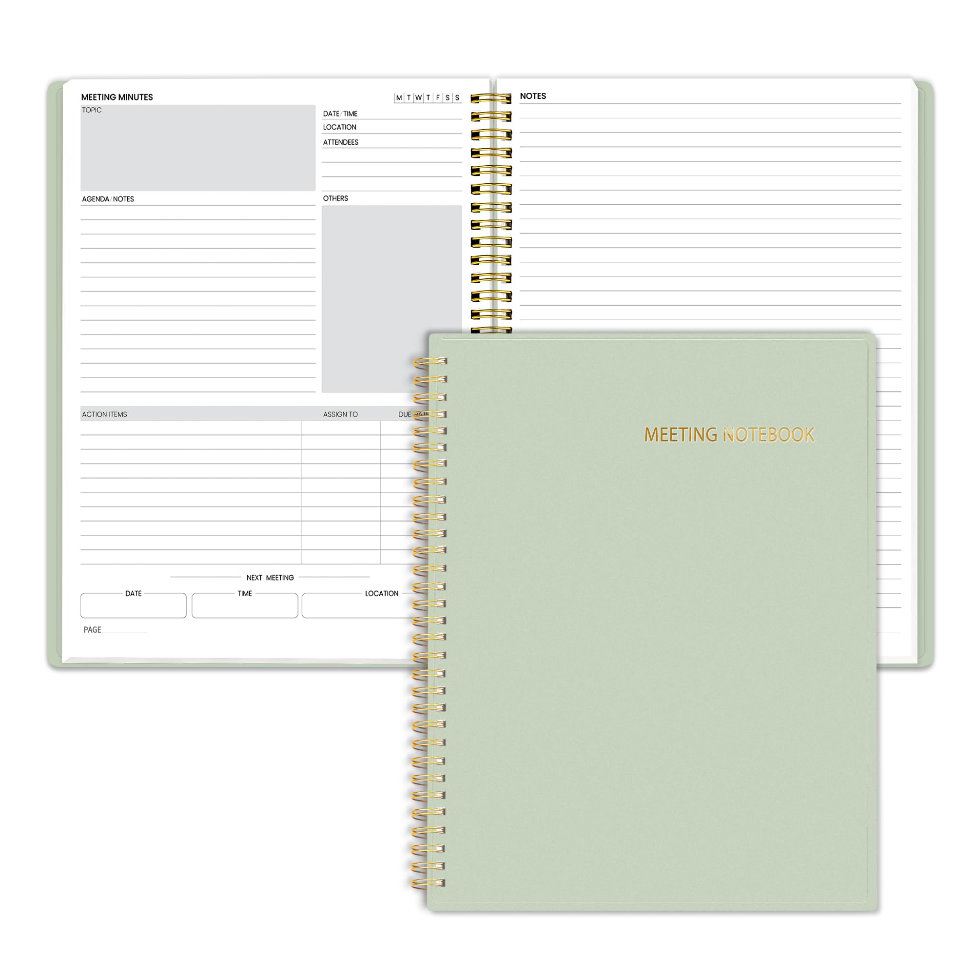 SUNEE Half Meeting Half Note - 8.5"x11" Professional Notebooks for Work - 160 Pages, A4 Size Project Planner, Spiral Meeting Agenda/Minutes Organizer for Women Men, Note Taking, Office & Business