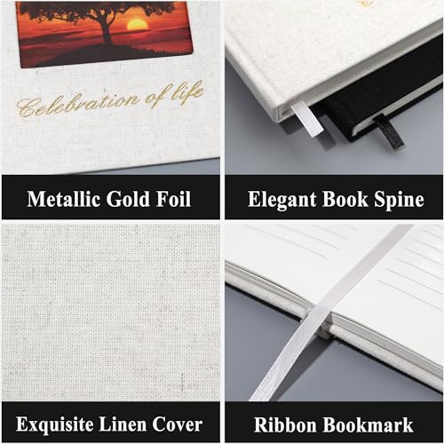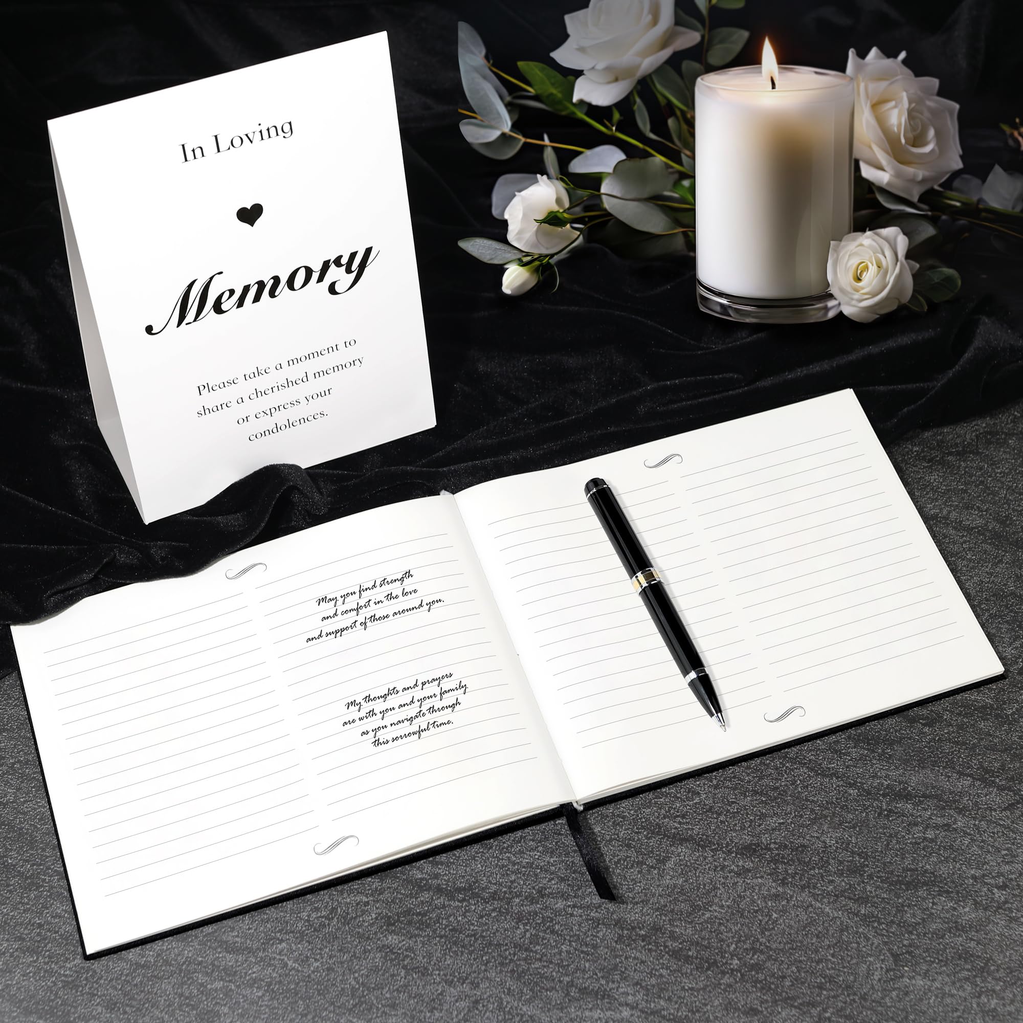 【Convenient Features】- This guest book for memorial service includes a ribbon bookmark for easy access and a memory table sign, enhancing your celebration of life setup and making it easy for guests to leave their tributes.