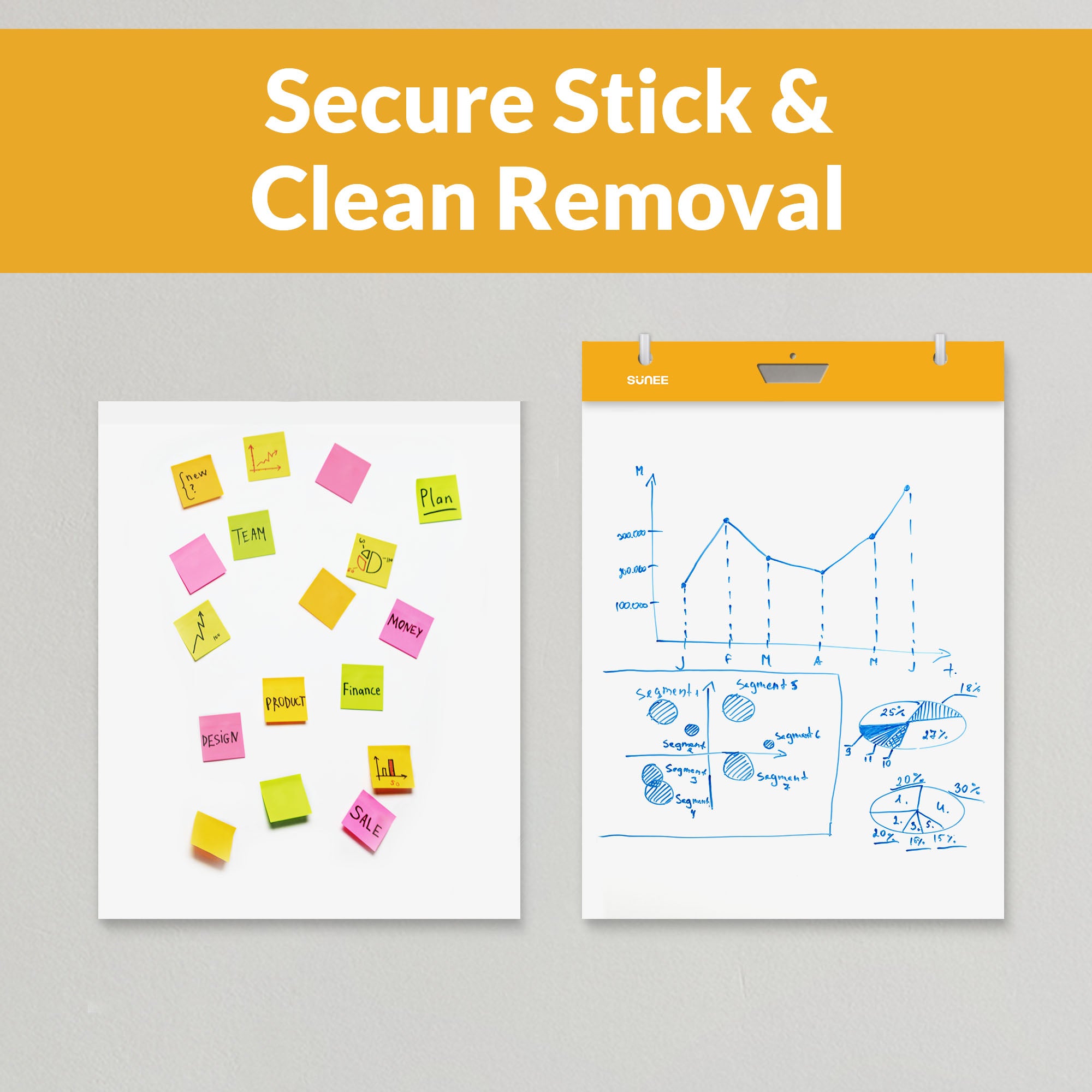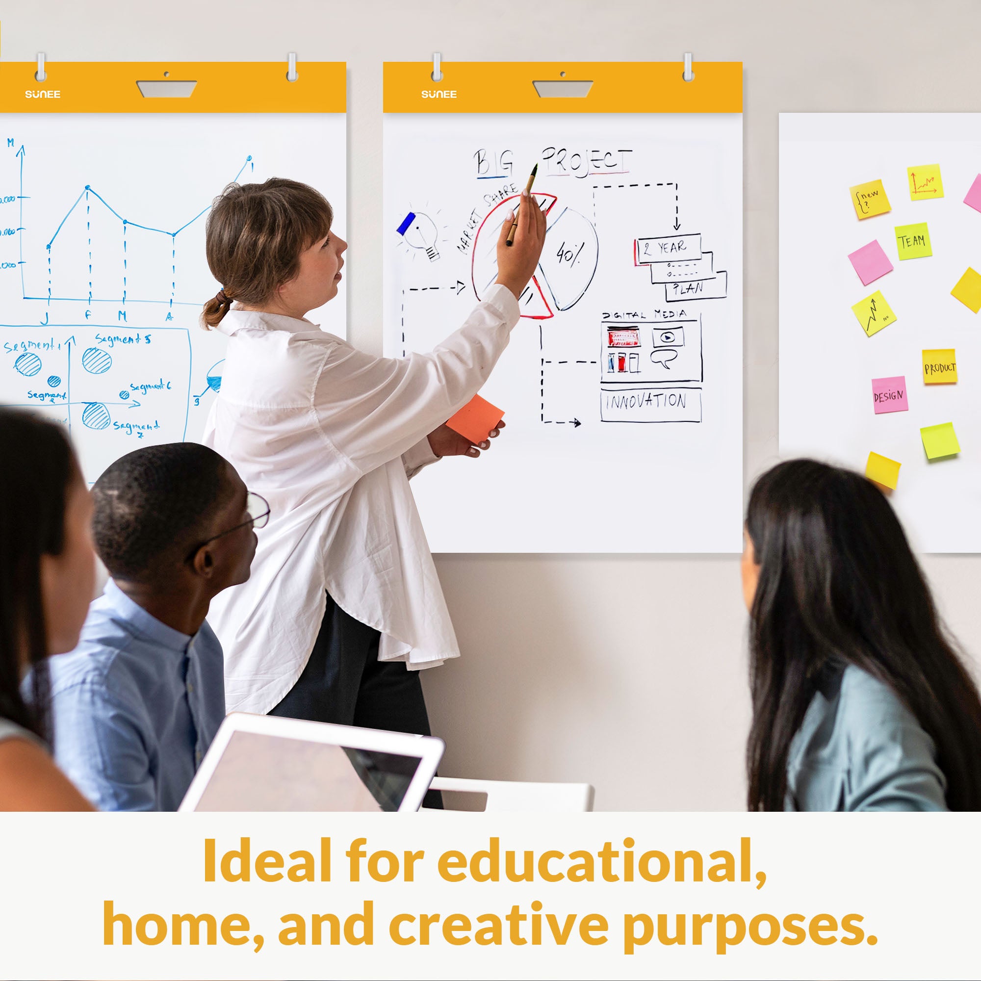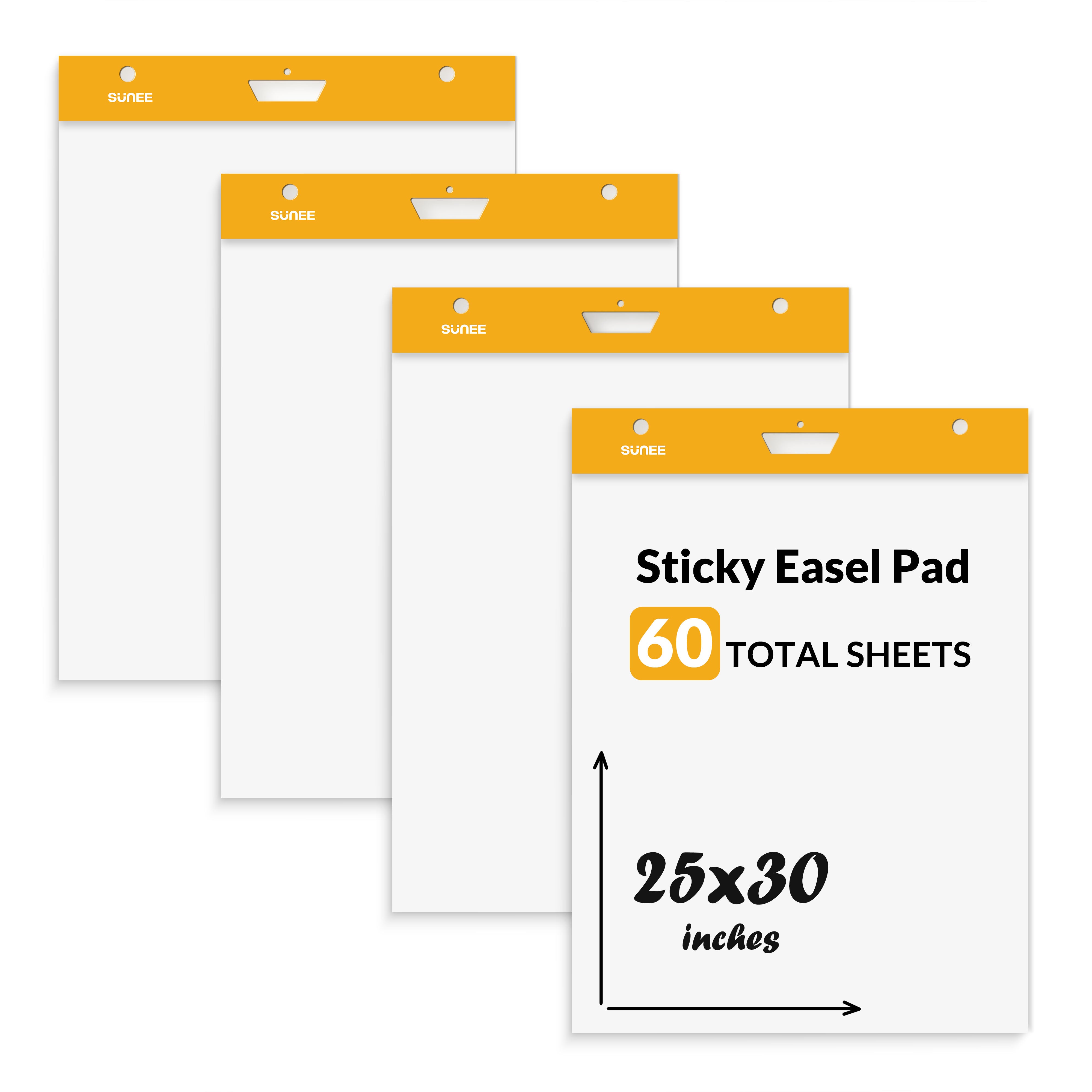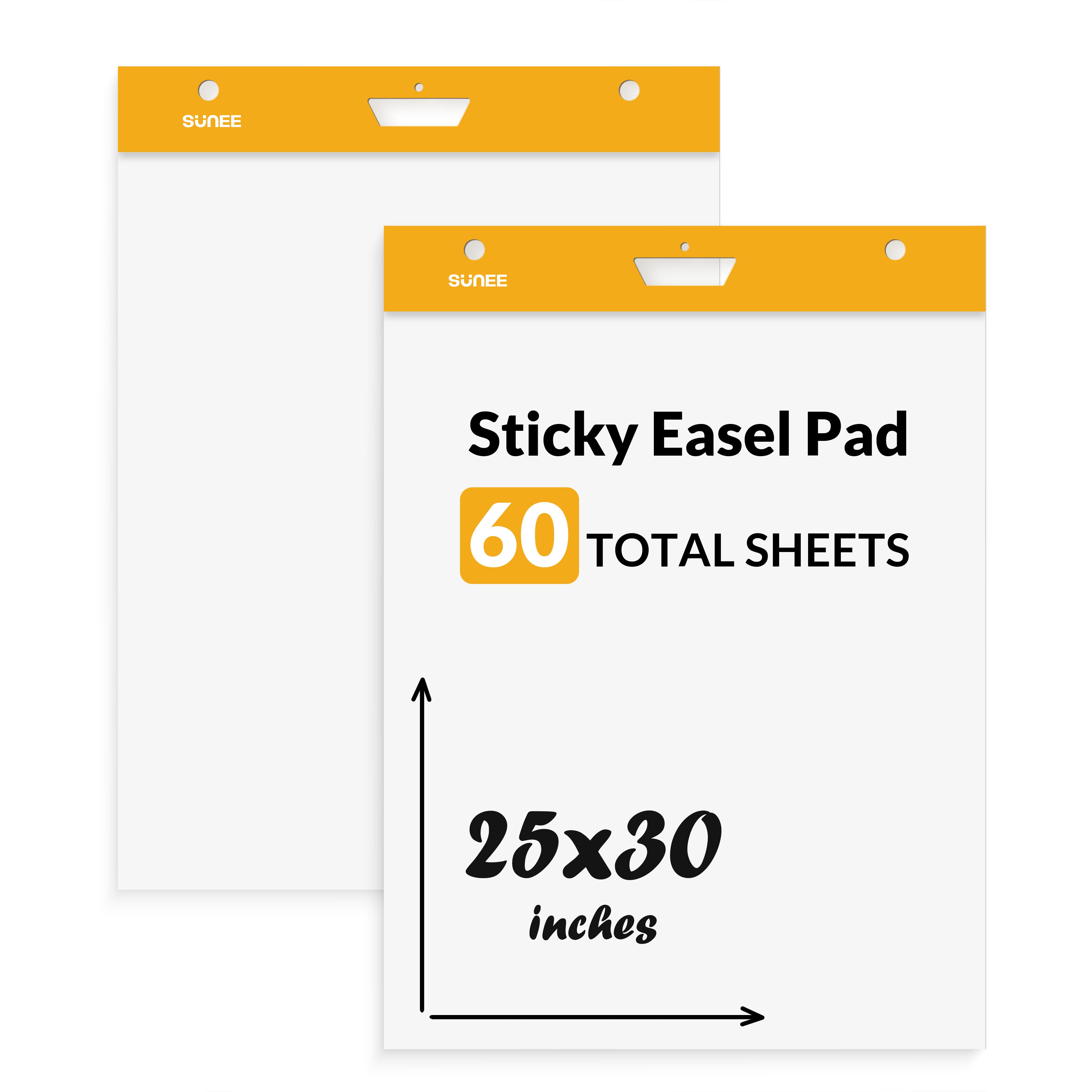 SUNEE Sticky Easel Pads, 25x30 Inches, 30 Sheets/Pad – Self Stick Flip Chart Paper for Whiteboards, Premium Large White Chart Paper