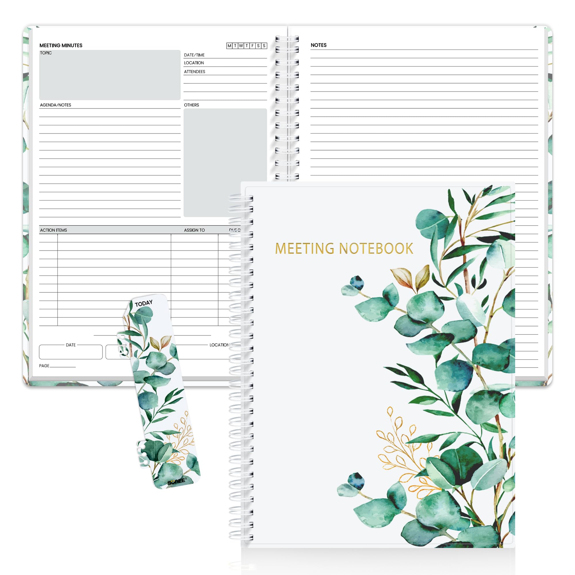 SUNEE Half Meeting Half Note - 7.5"x10" Professional Notebooks for Work - 160 Pages, B5 Size Project Planner, Spiral Meeting Agenda/Minutes Organizer for Women Men, Note Taking, Office & Business