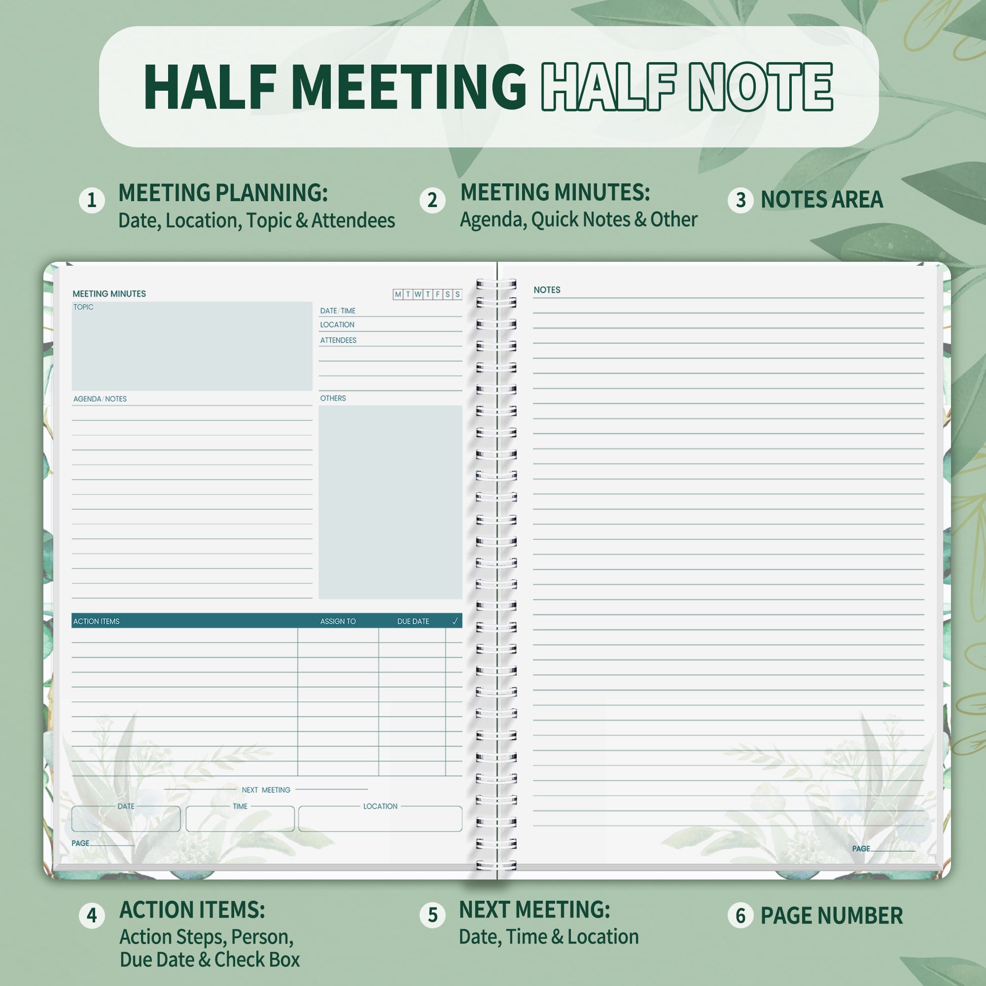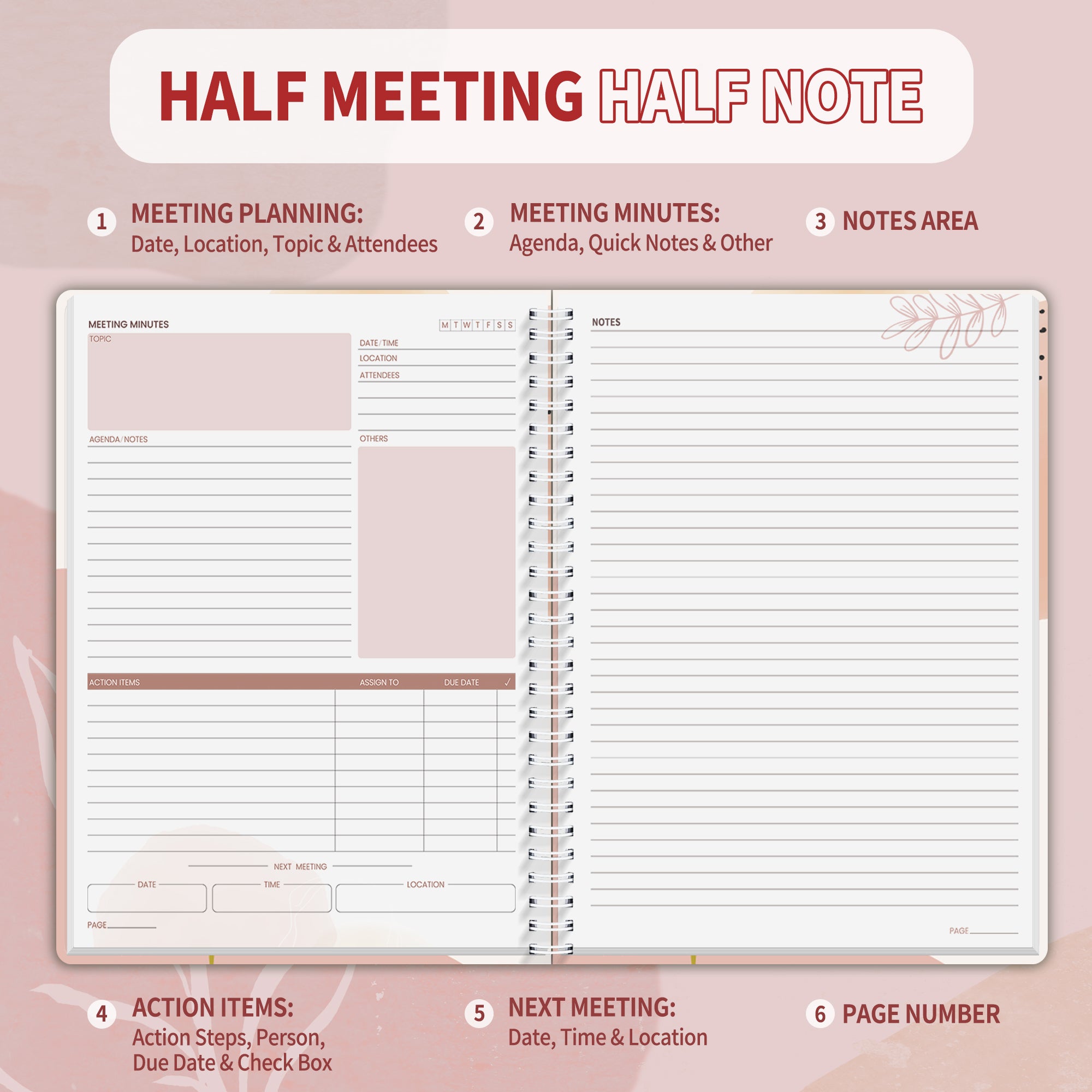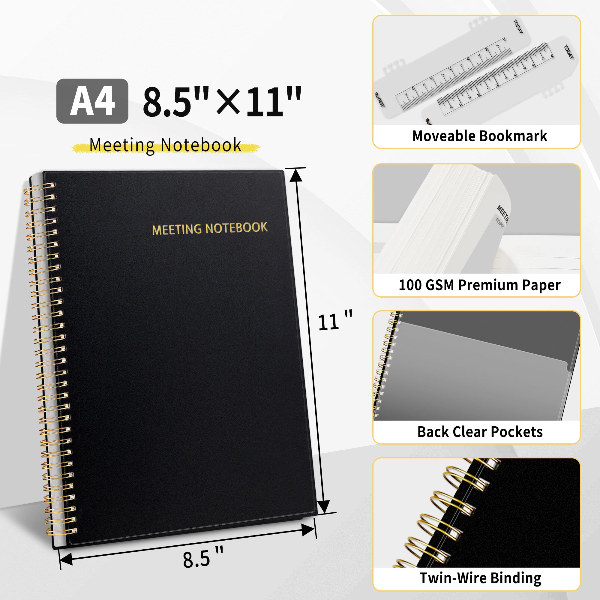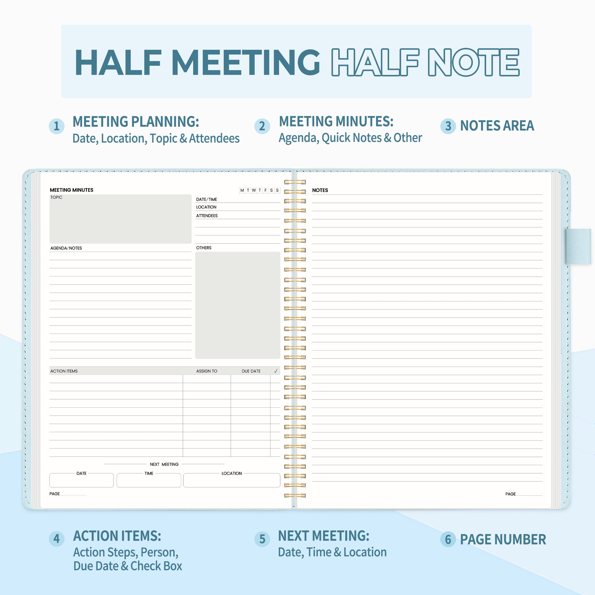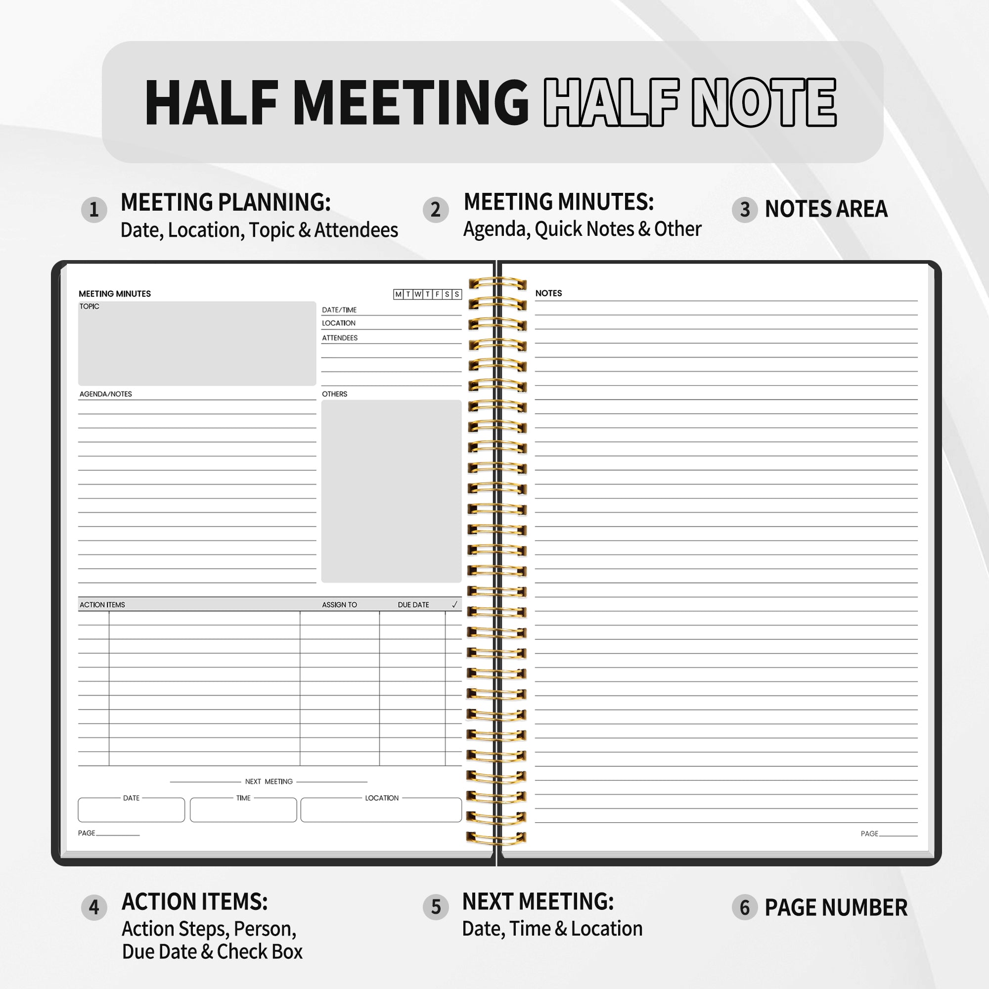 SUNEE Half Meeting Half Note - 8.5"x11" Professional Notebooks for Work - 160 Pages, A4 Size Project Planner, Spiral Meeting Agenda/Minutes Organizer for Women Men, Note Taking, Office & Business