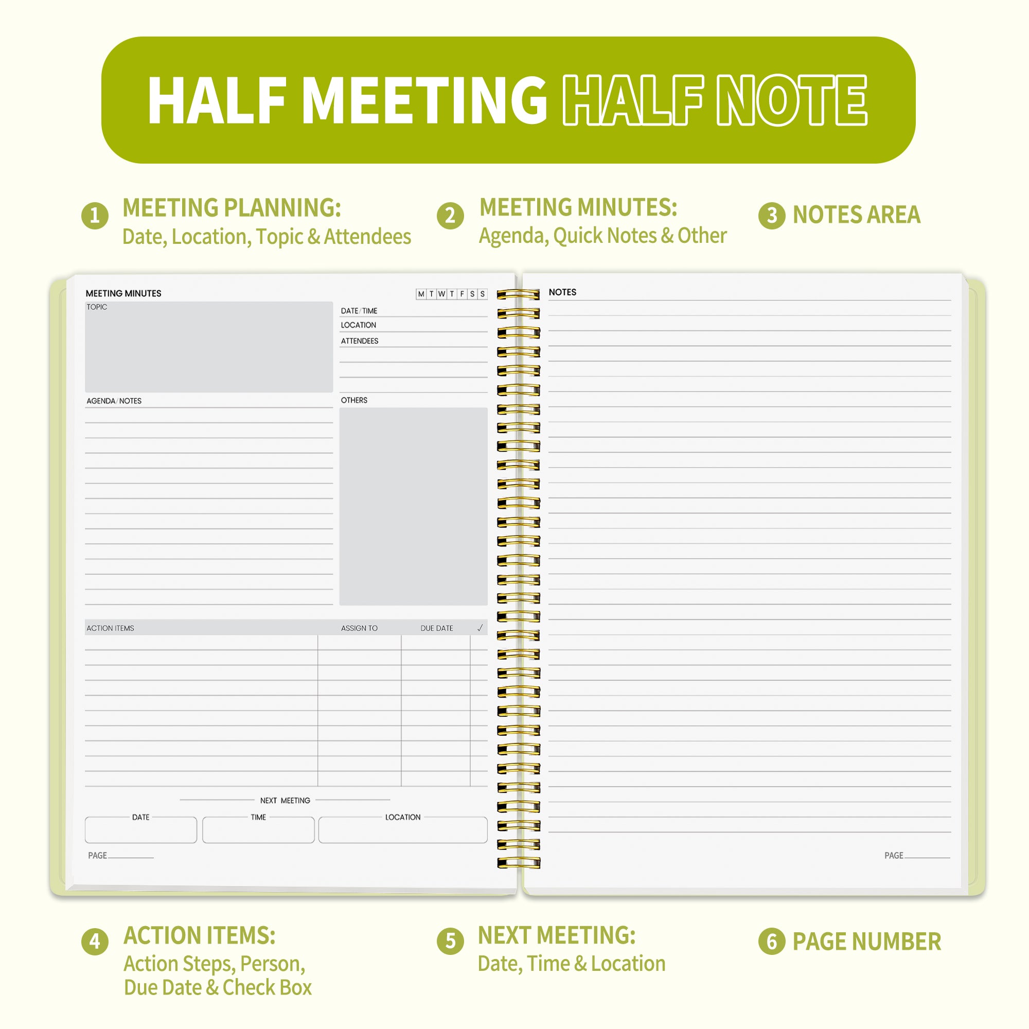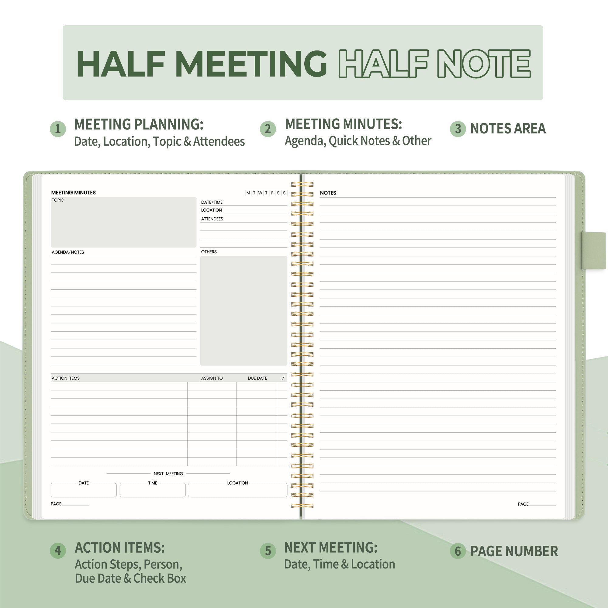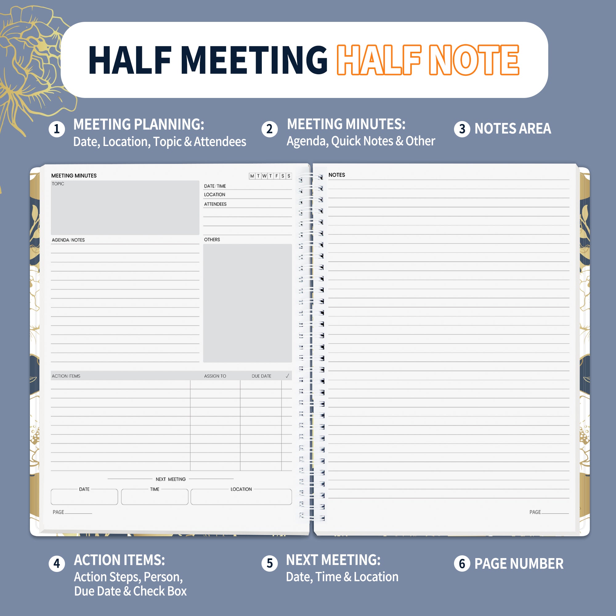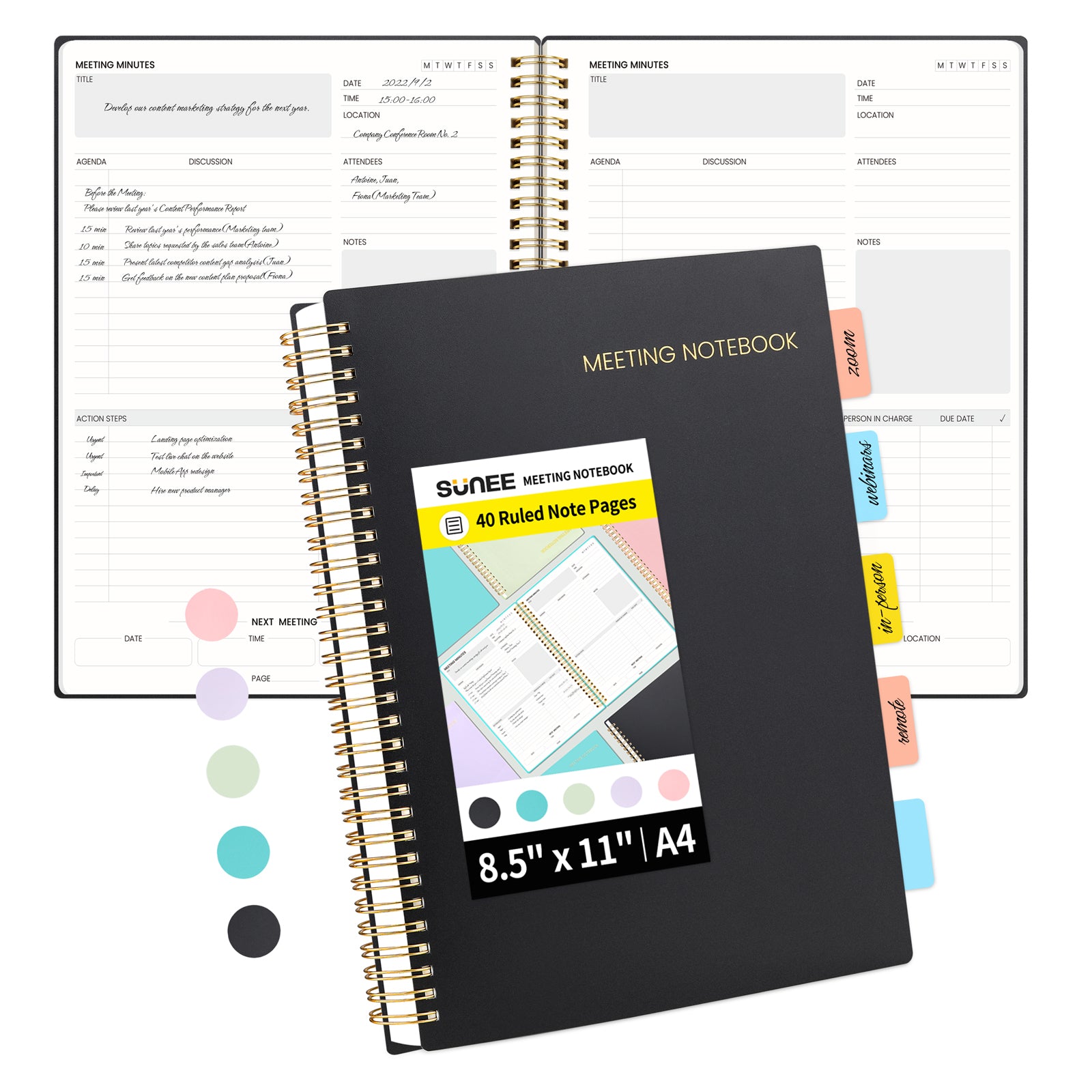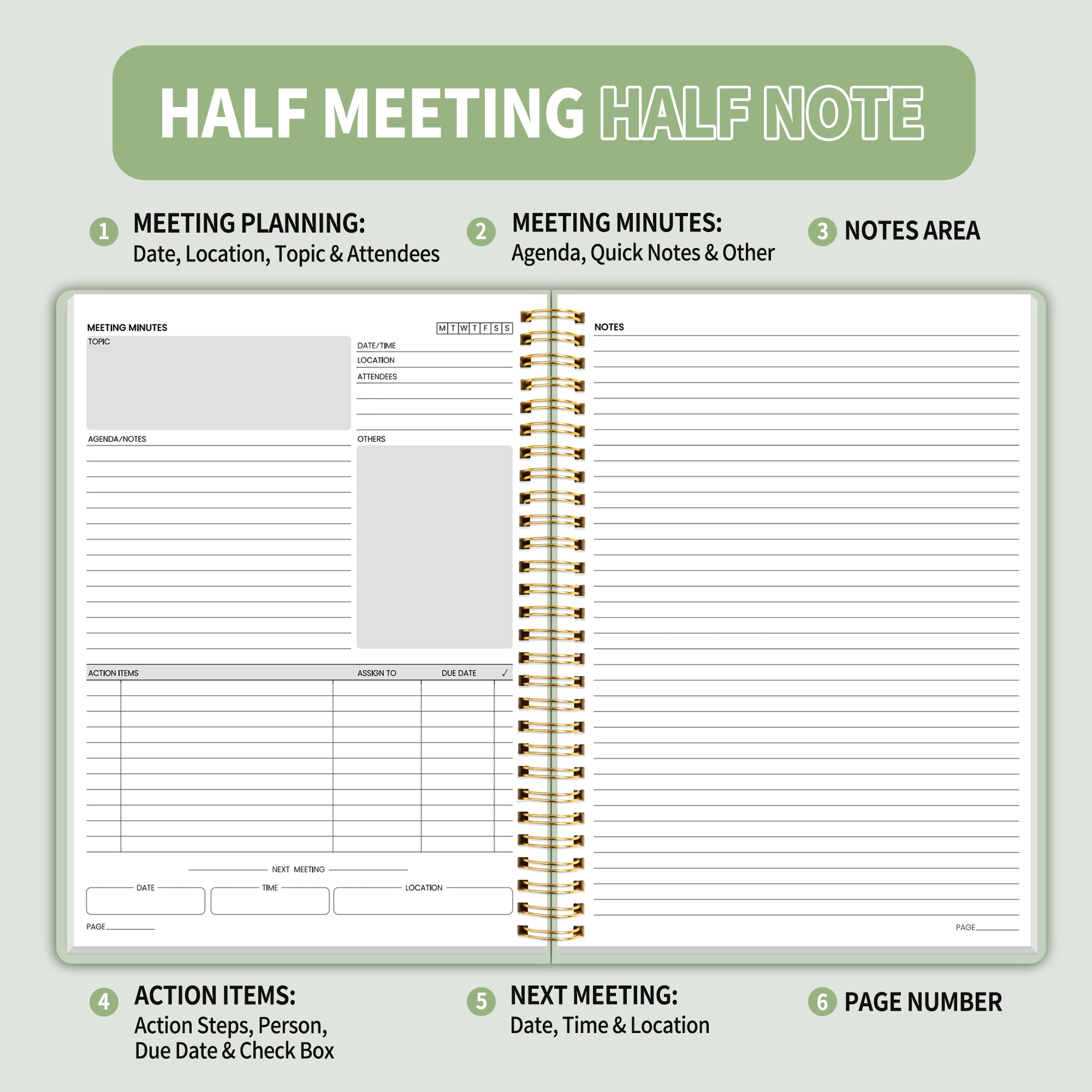 SUNEE Half Meeting Half Note - 8.5"x11" Professional Notebooks for Work - 160 Pages, A4 Size Project Planner, Spiral Meeting Agenda/Minutes Organizer for Women Men, Note Taking, Office & Business
