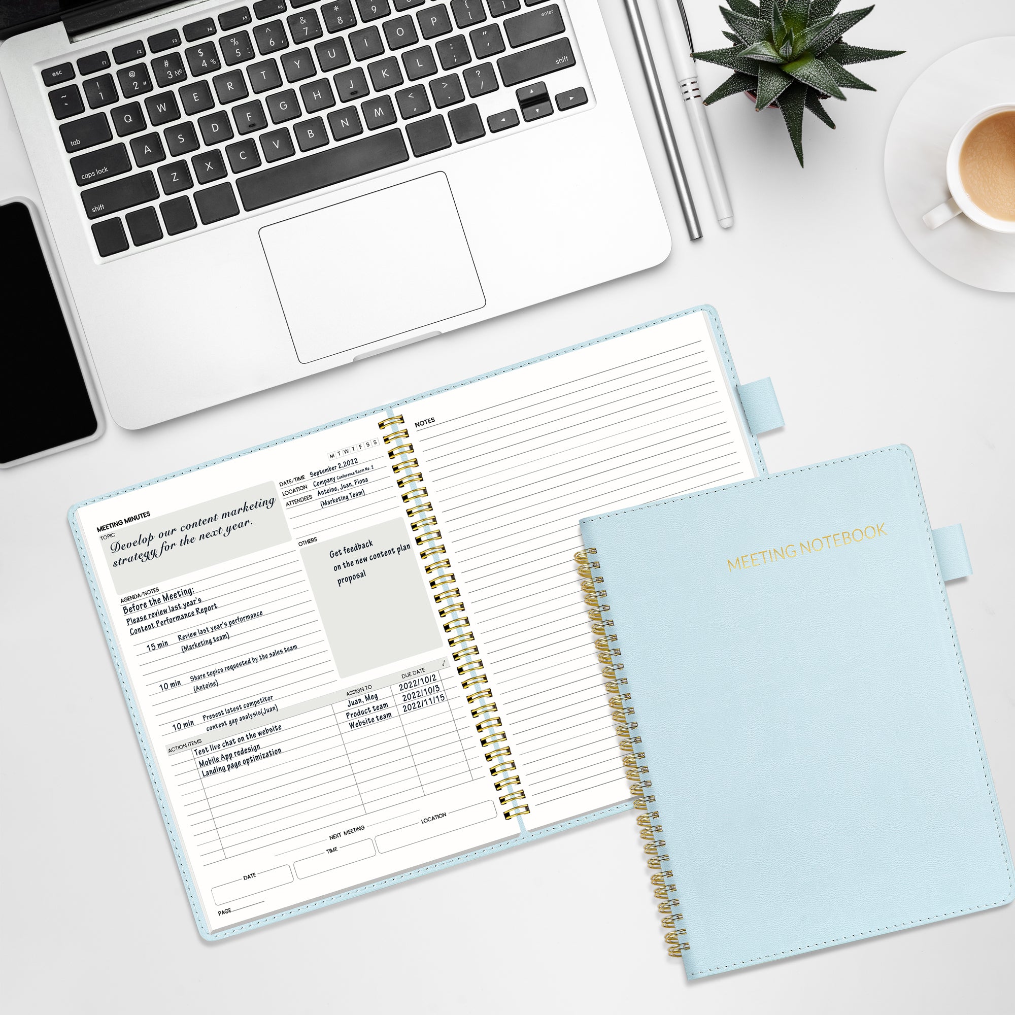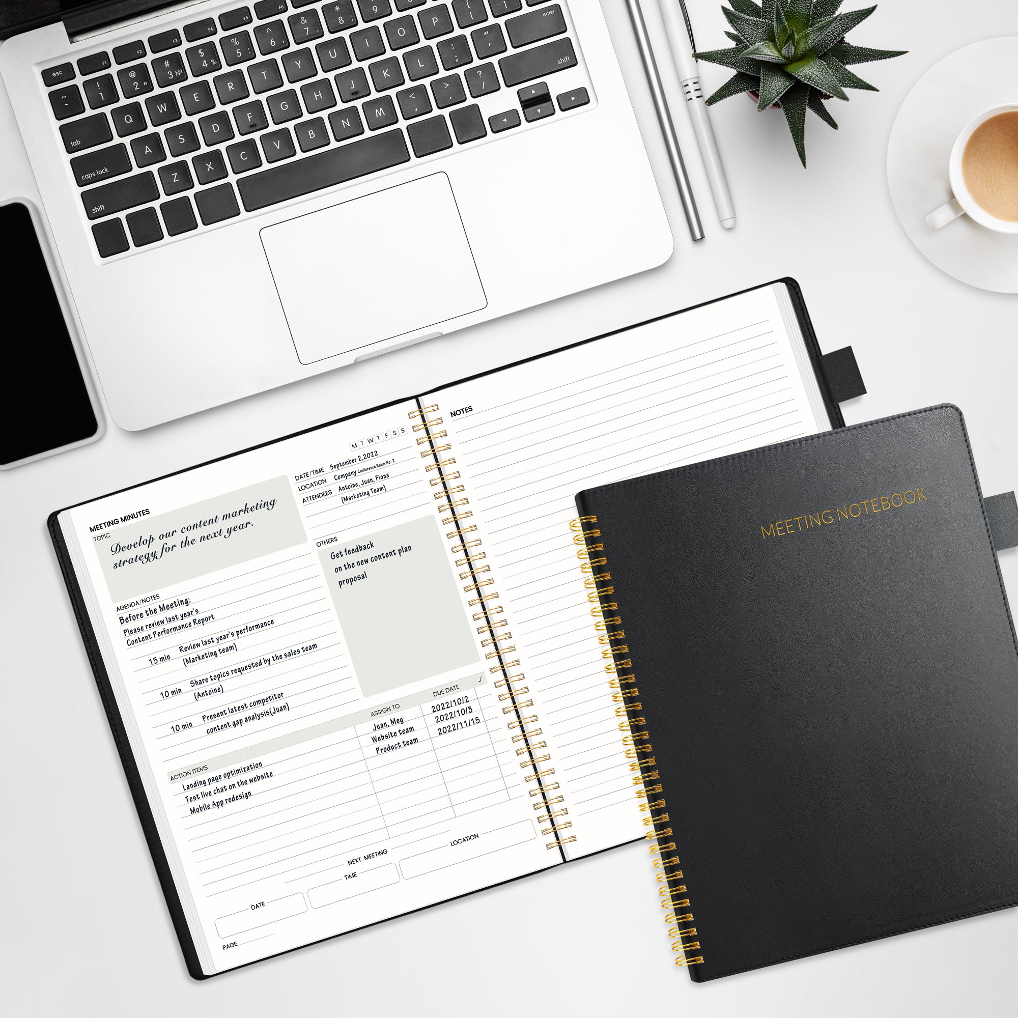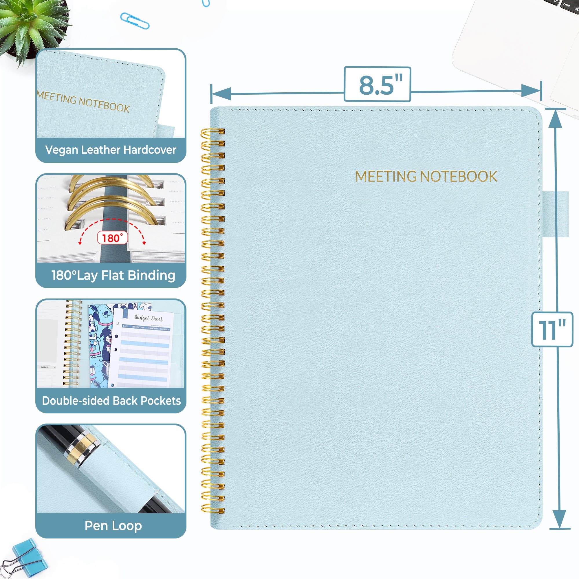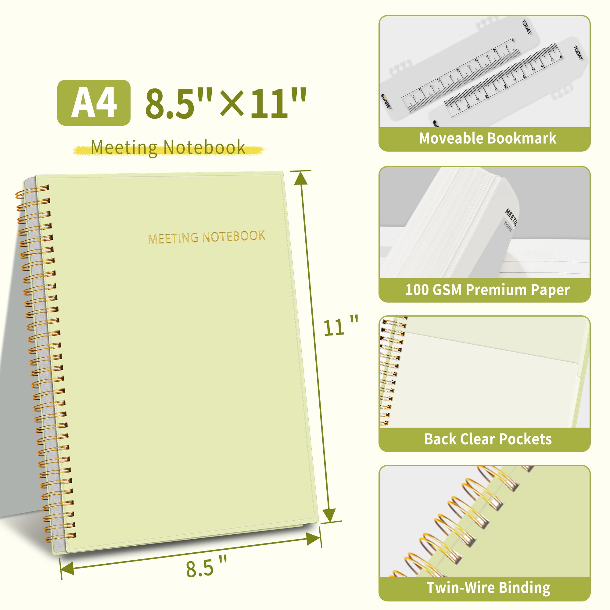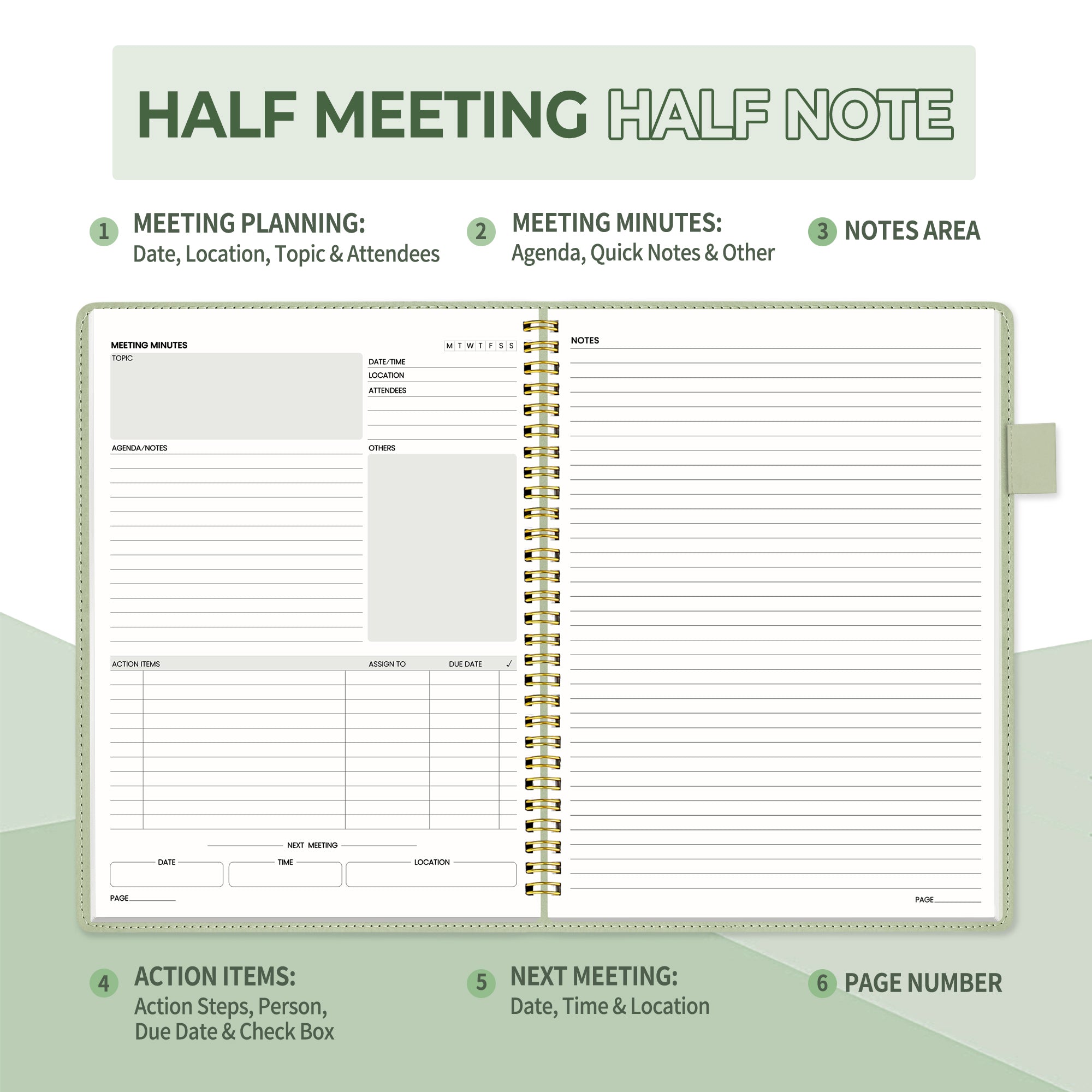 SUNEE Half Meeting Half Note - 8.5"x11" Professional Notebooks for Work - 160 Pages, A4 Size Project Planner, Spiral Meeting Agenda/Minutes Organizer for Women Men, Note Taking, Office & Business