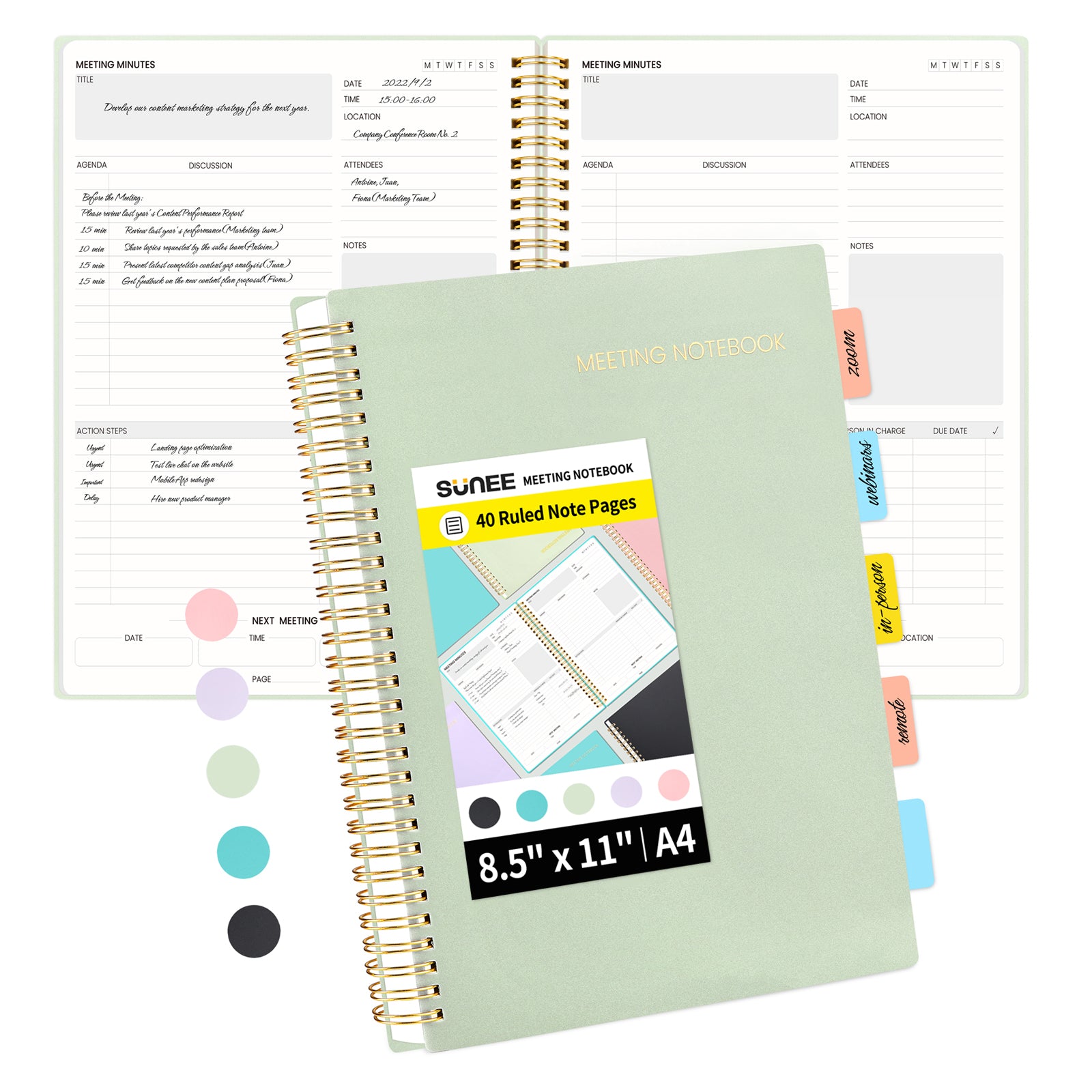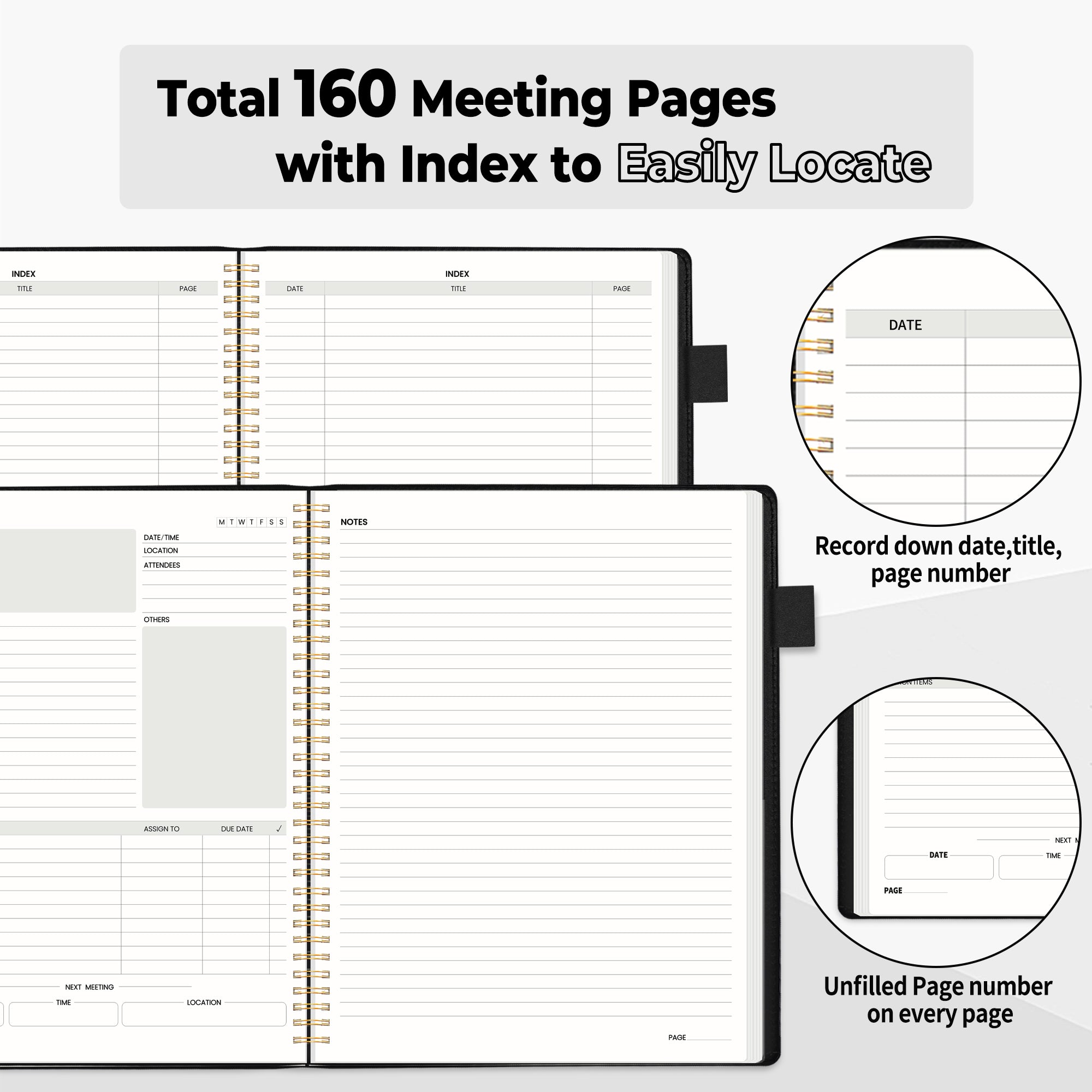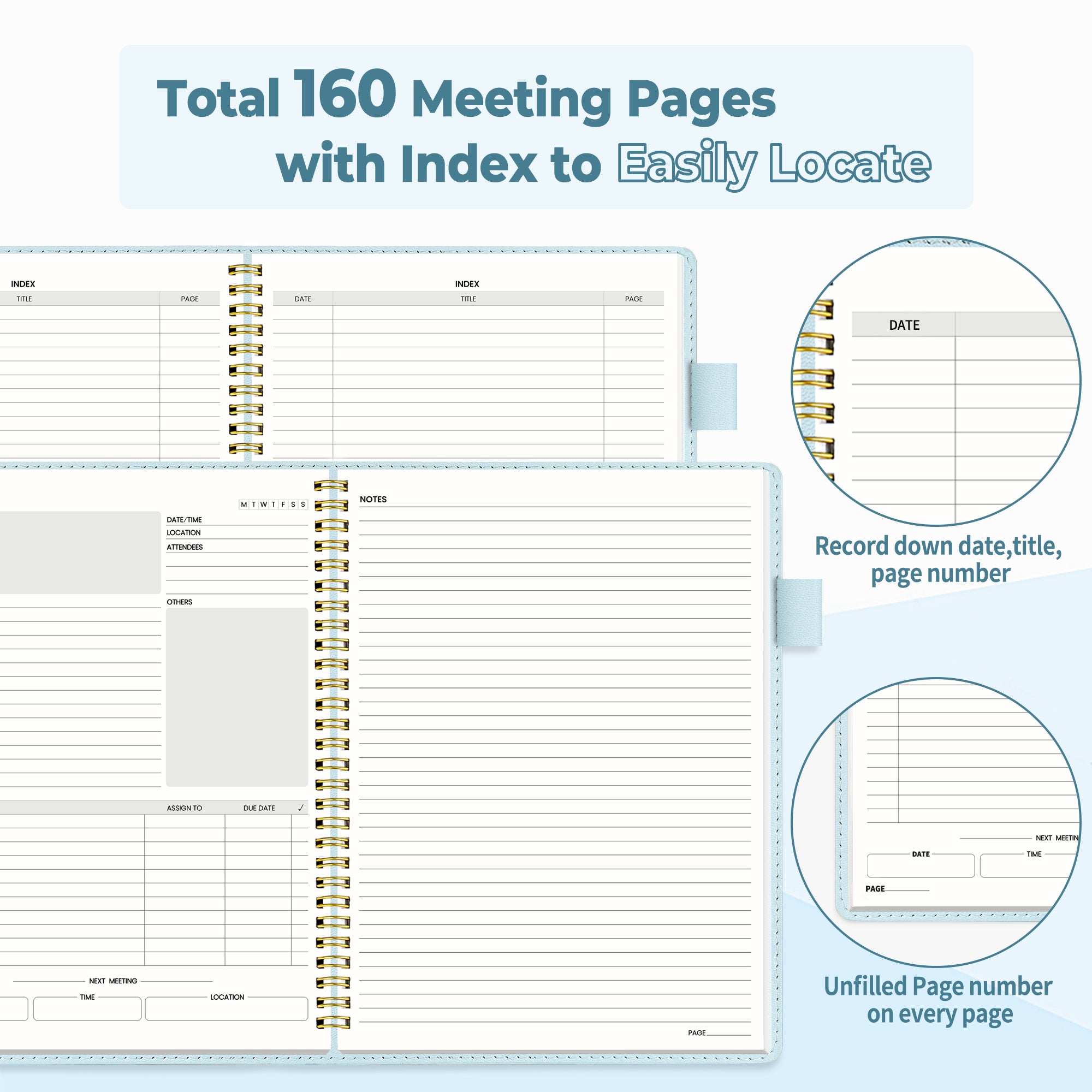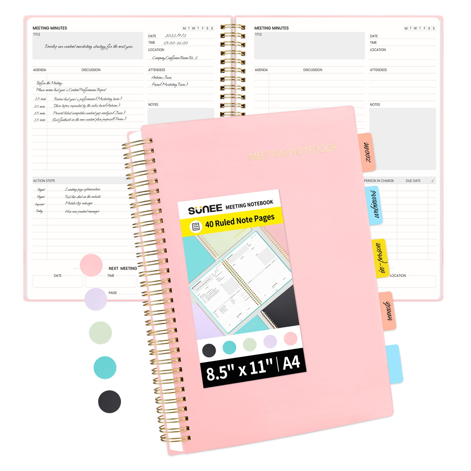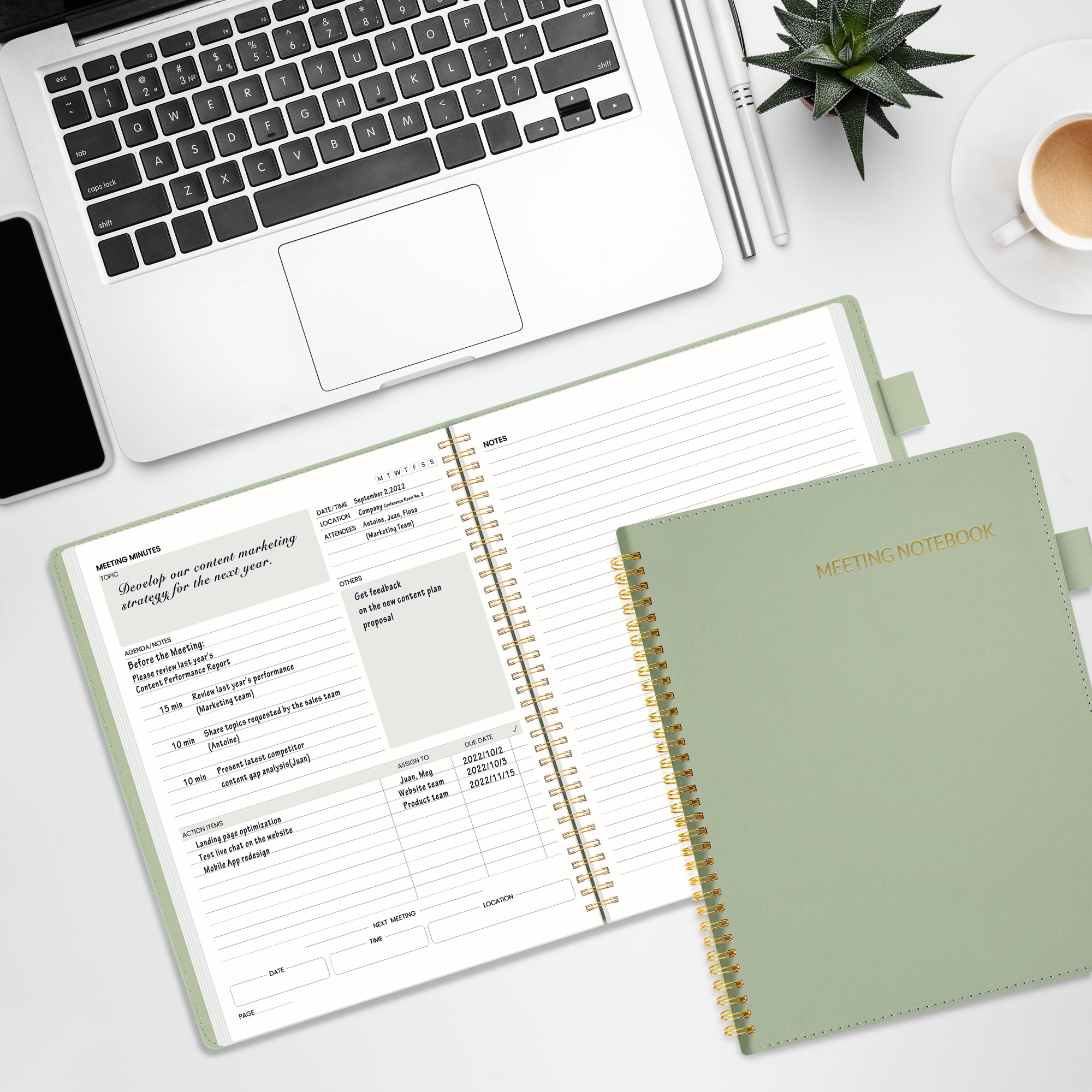 SUNEE Half Meeting Half Note - 8.5"x11" Professional Notebooks for Work - 160 Pages, A4 Size Project Planner, Spiral Meeting Agenda/Minutes Organizer for Women Men, Note Taking, Office & Business