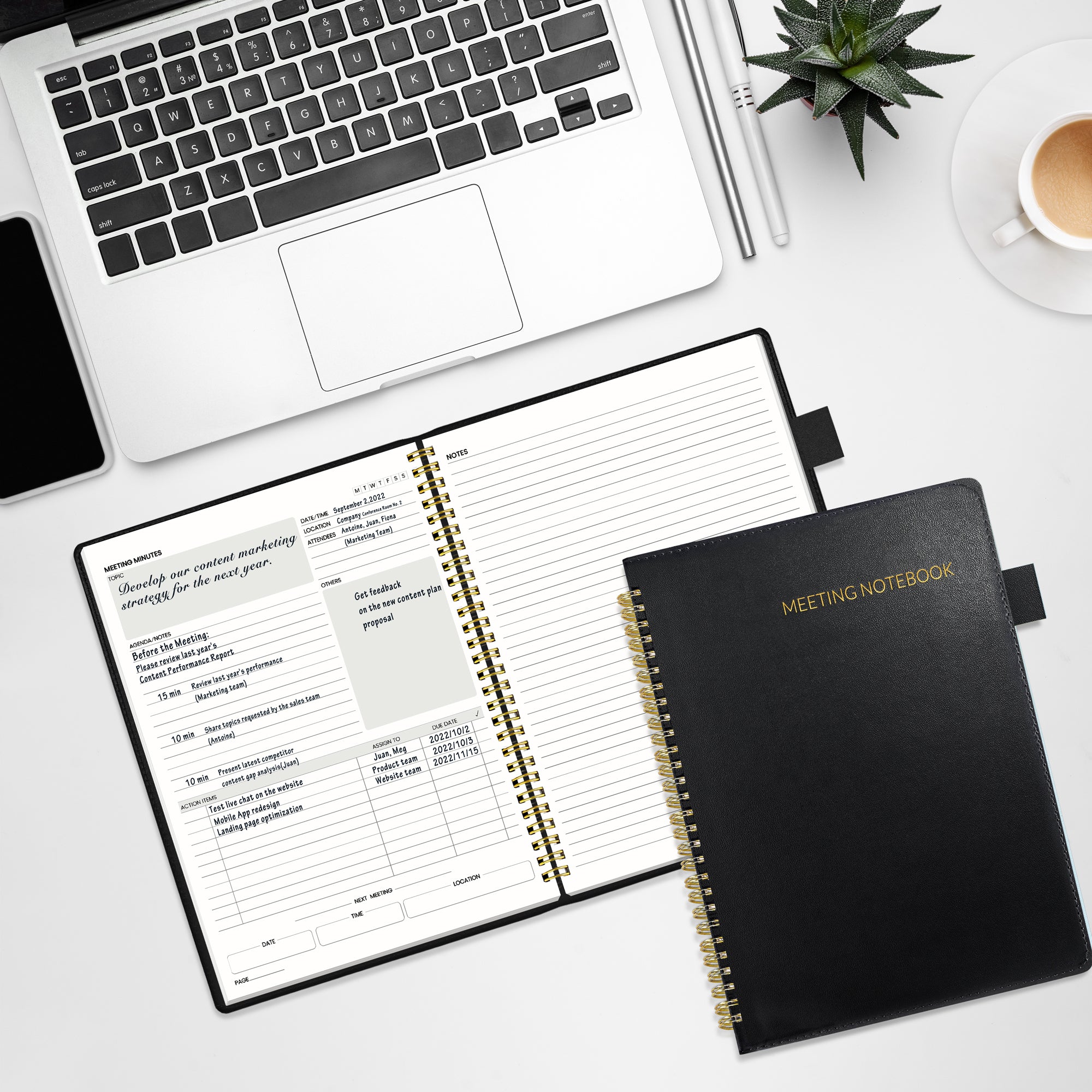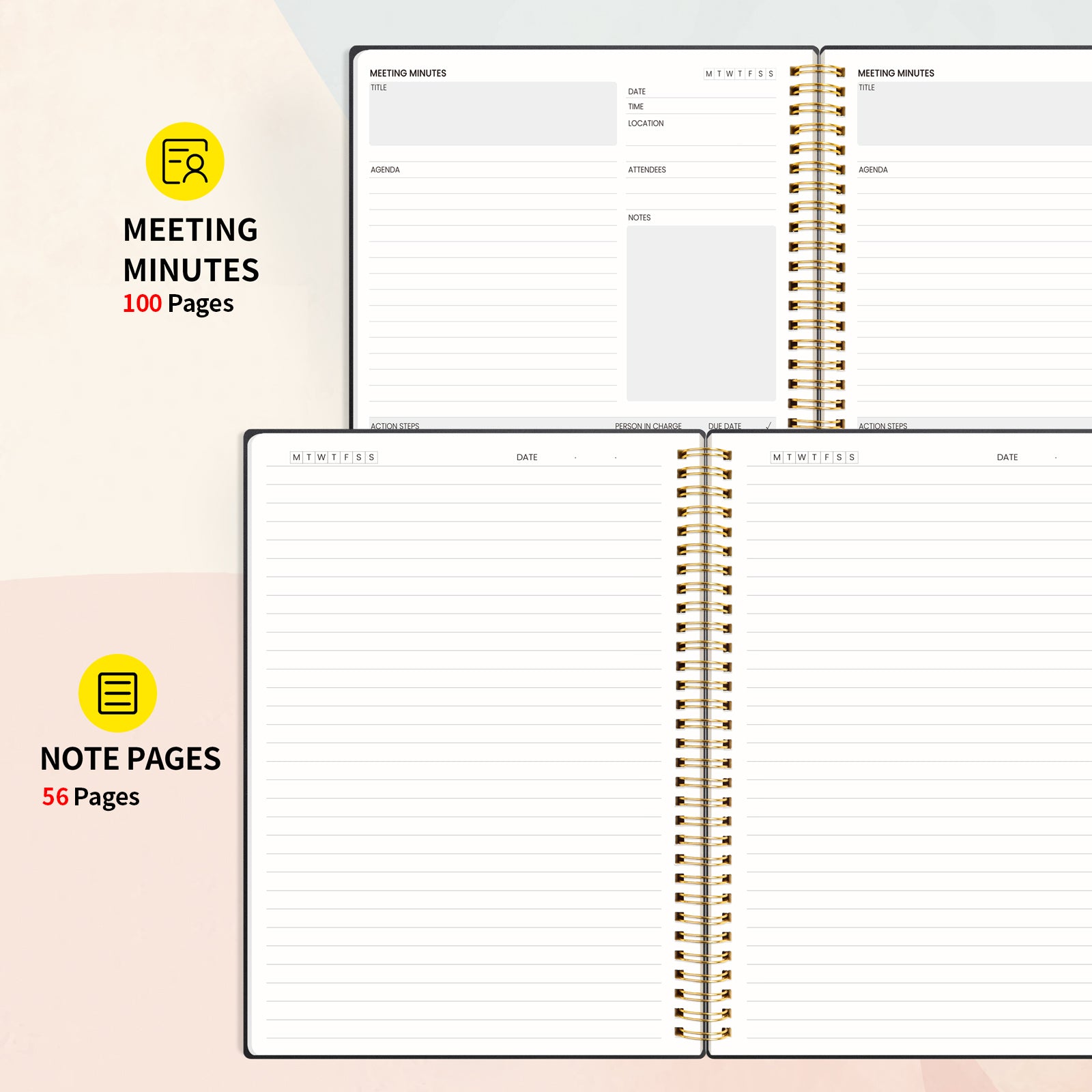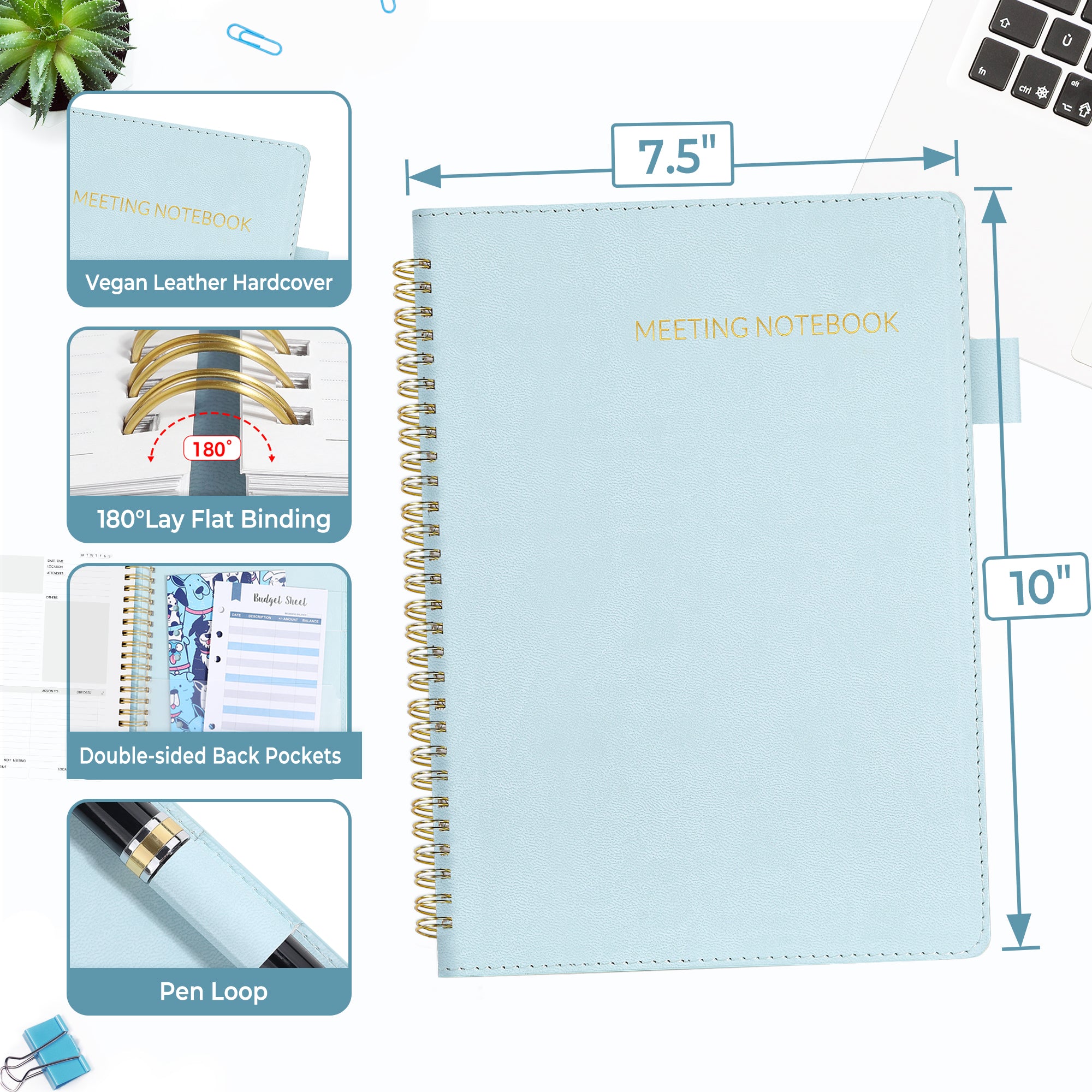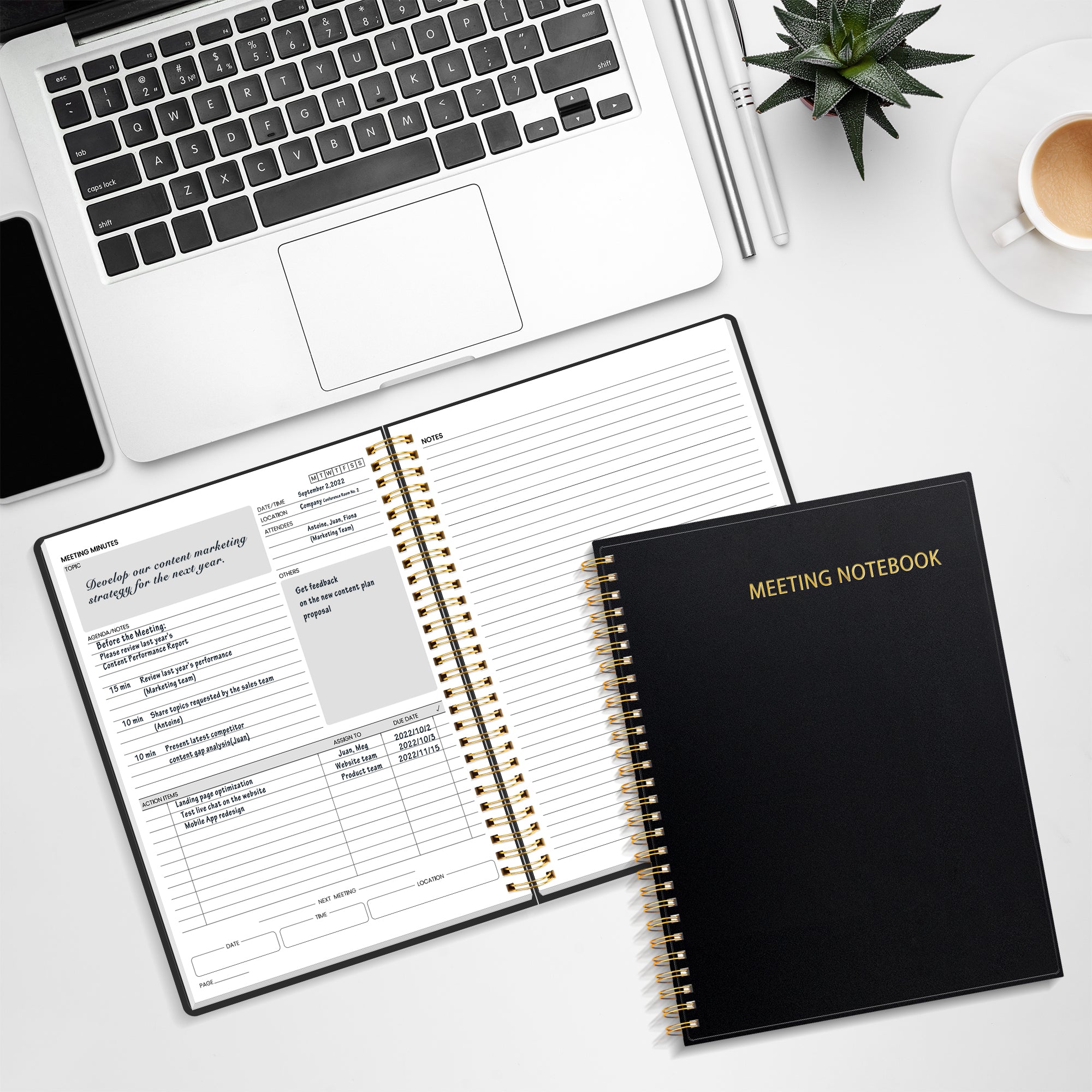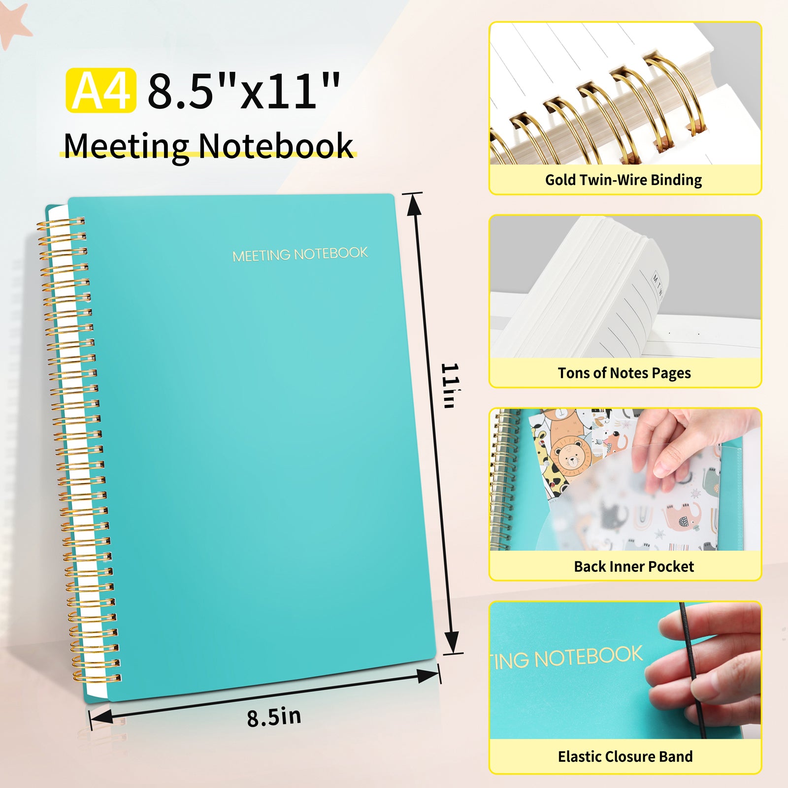 SUNEE Half Meeting Half Note - 8.5"x11" Professional Notebooks for Work - 160 Pages, A4 Size Project Planner, Spiral Meeting Agenda/Minutes Organizer for Women Men, Note Taking, Office & Business