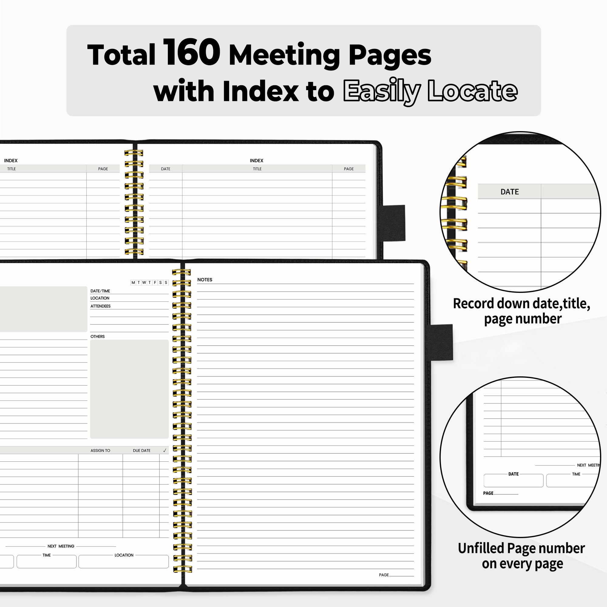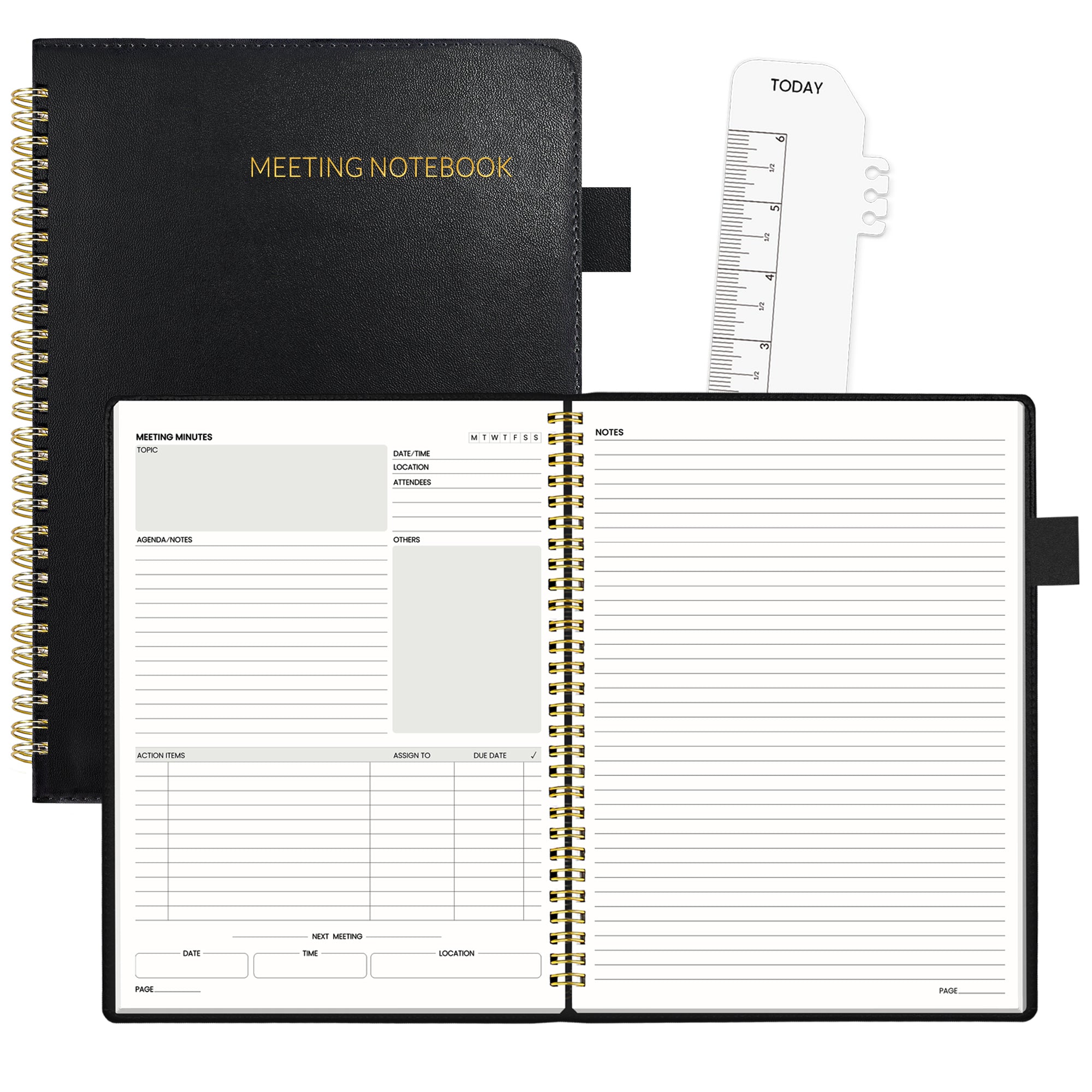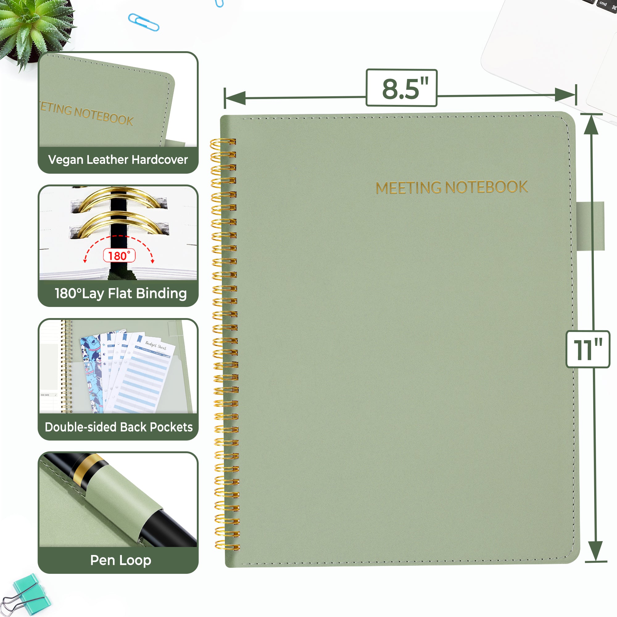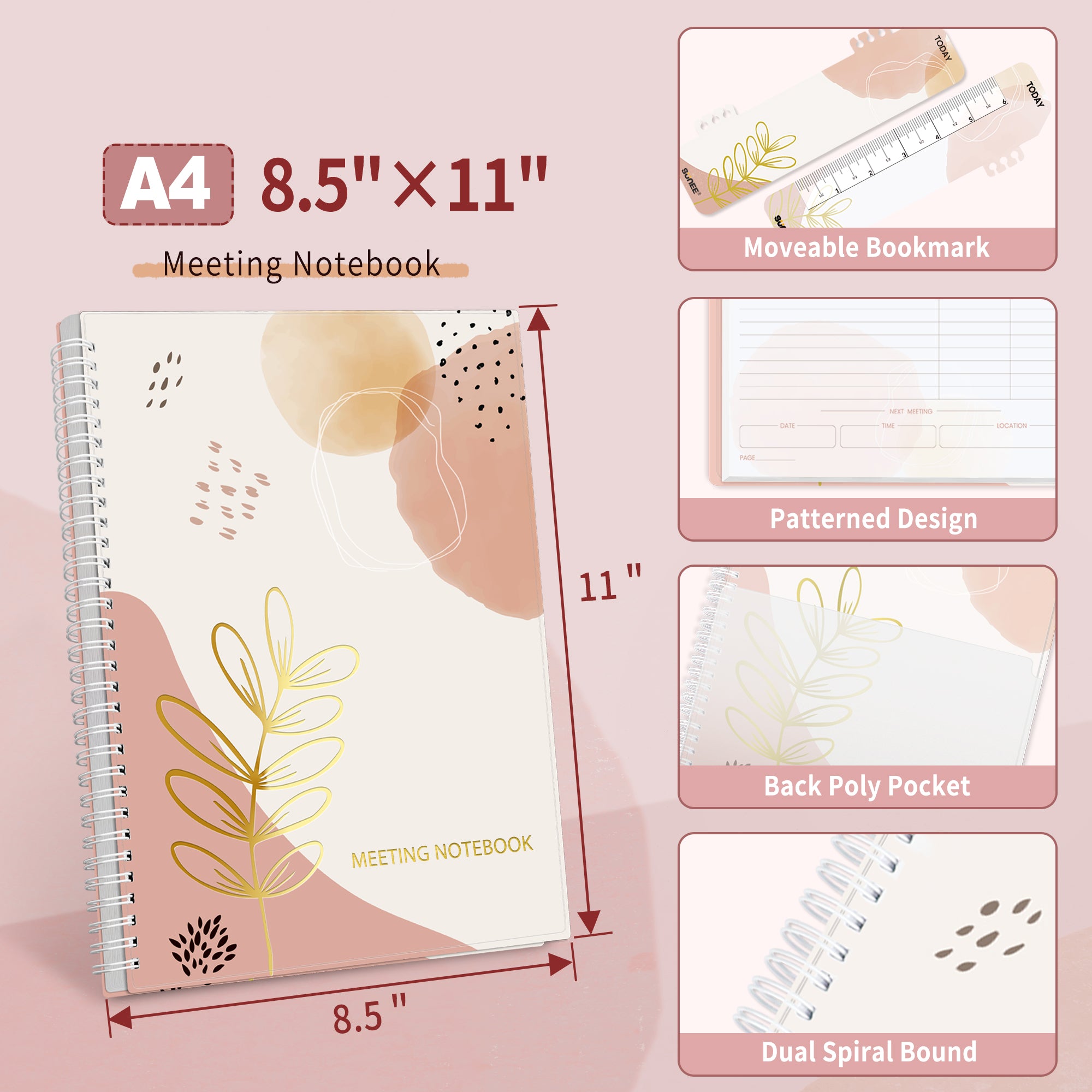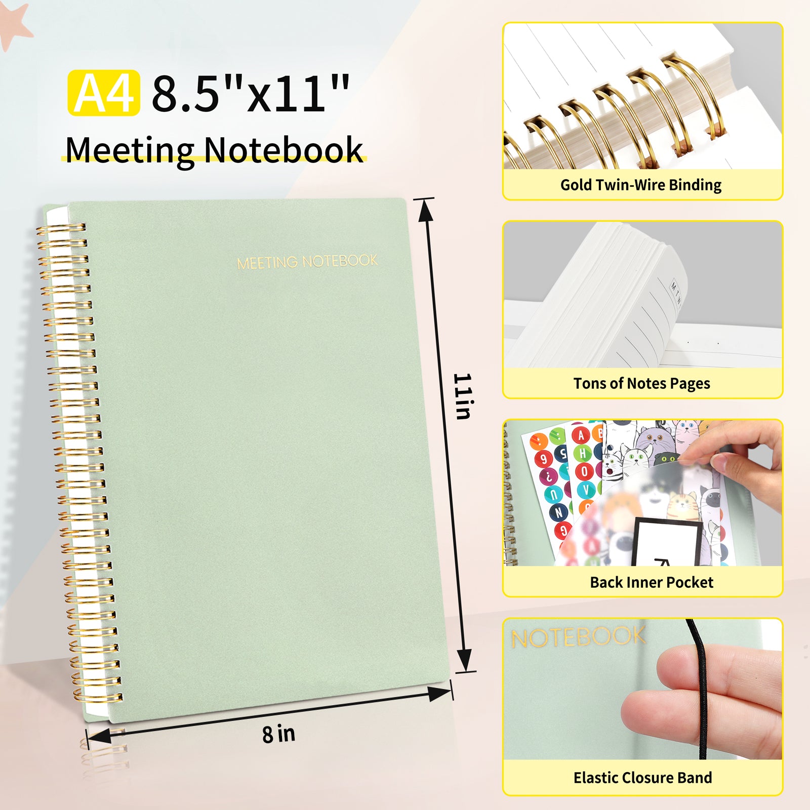 SUNEE Half Meeting Half Note - 8.5"x11" Professional Notebooks for Work - 160 Pages, A4 Size Project Planner, Spiral Meeting Agenda/Minutes Organizer for Women Men, Note Taking, Office & Business