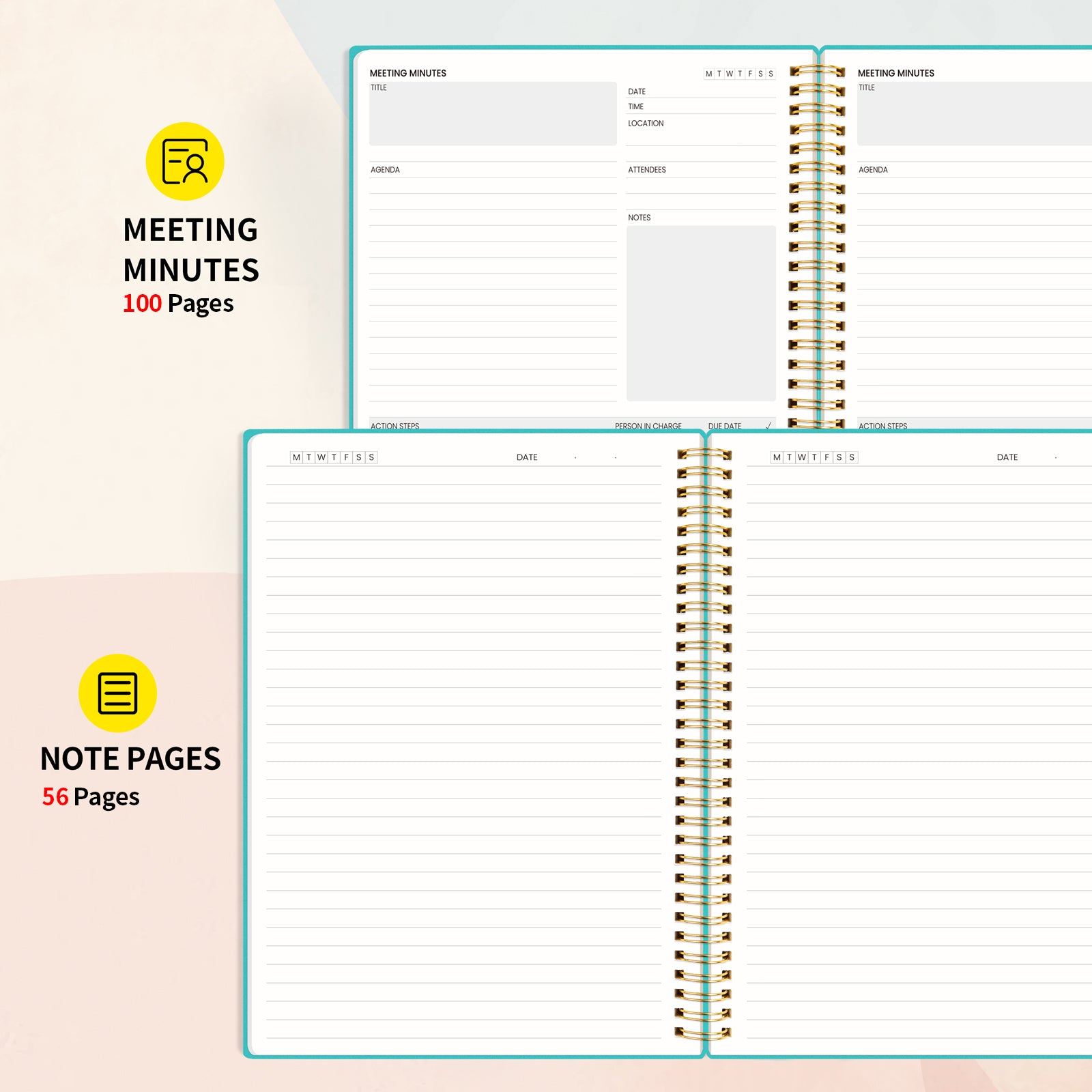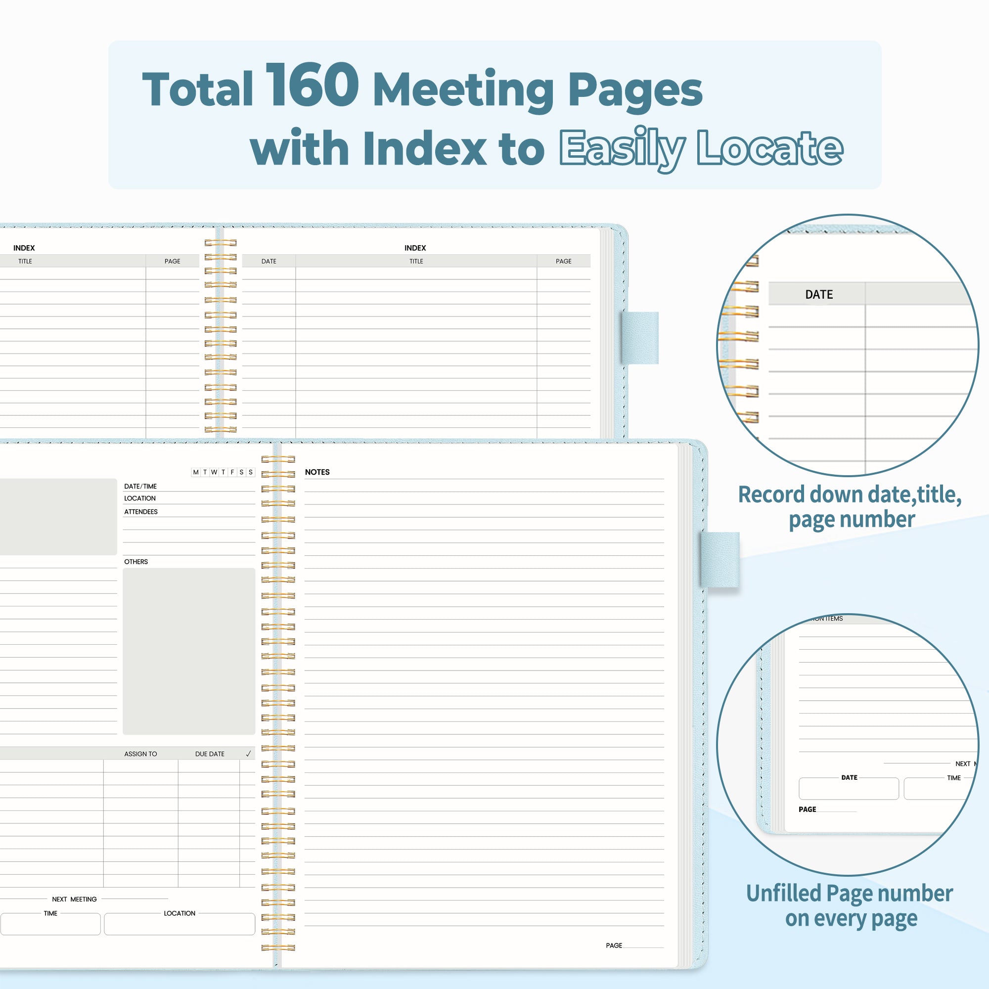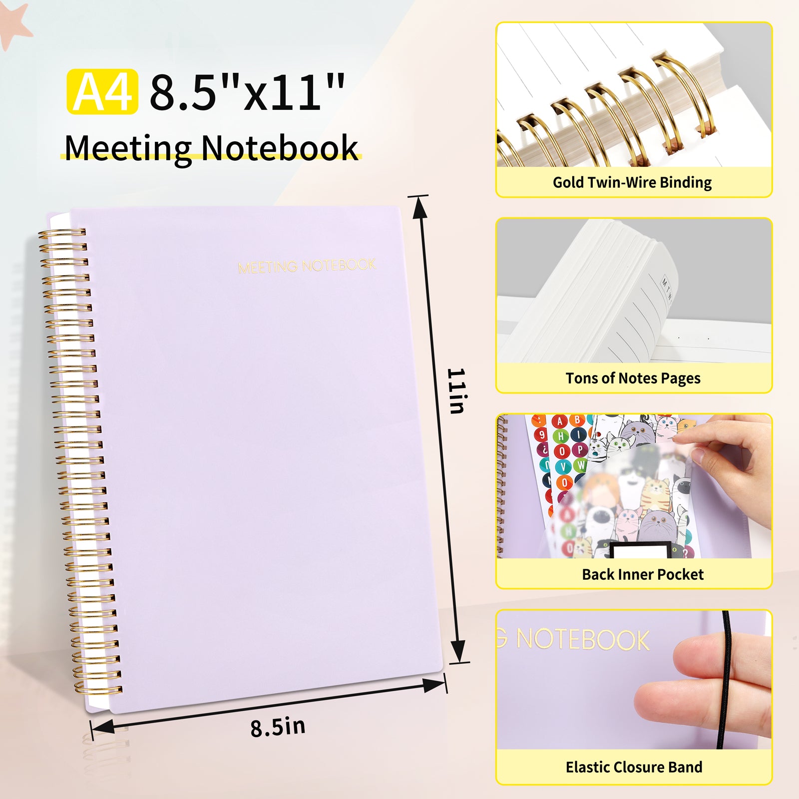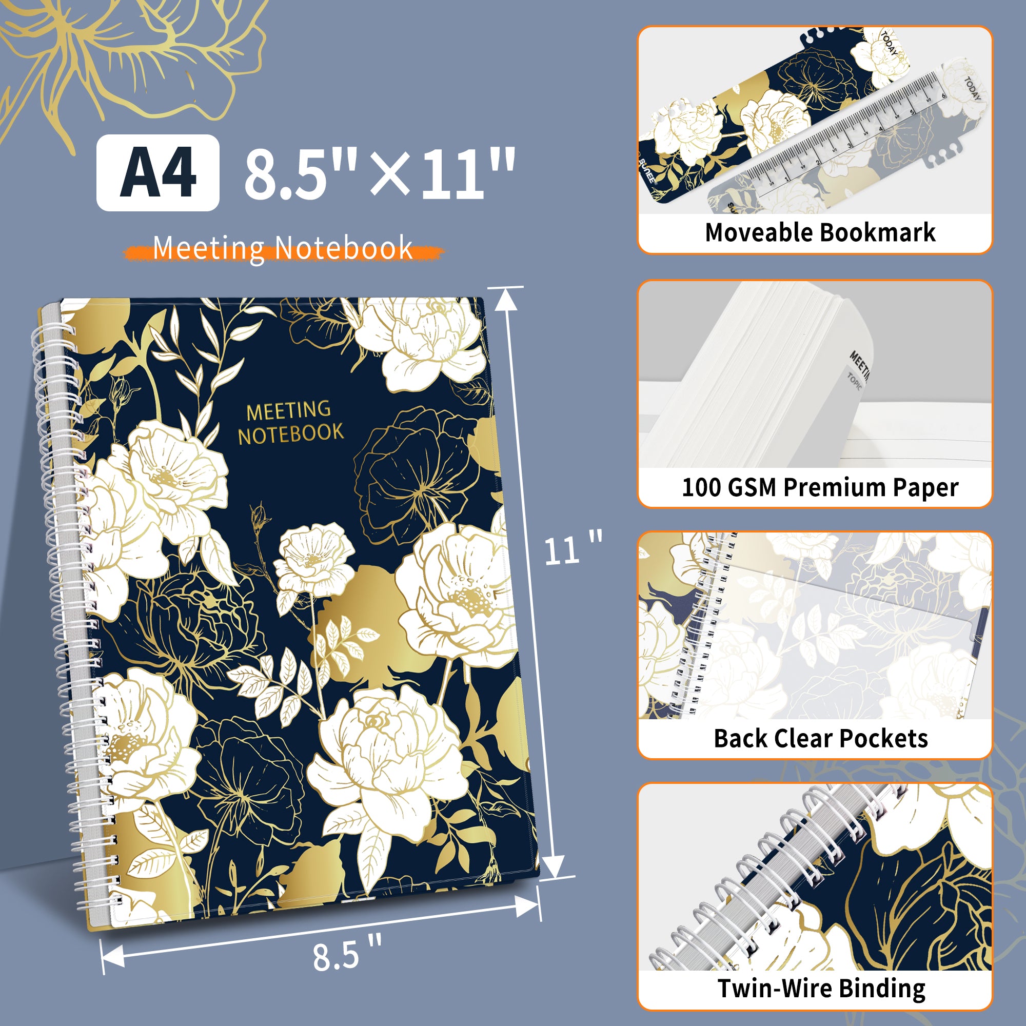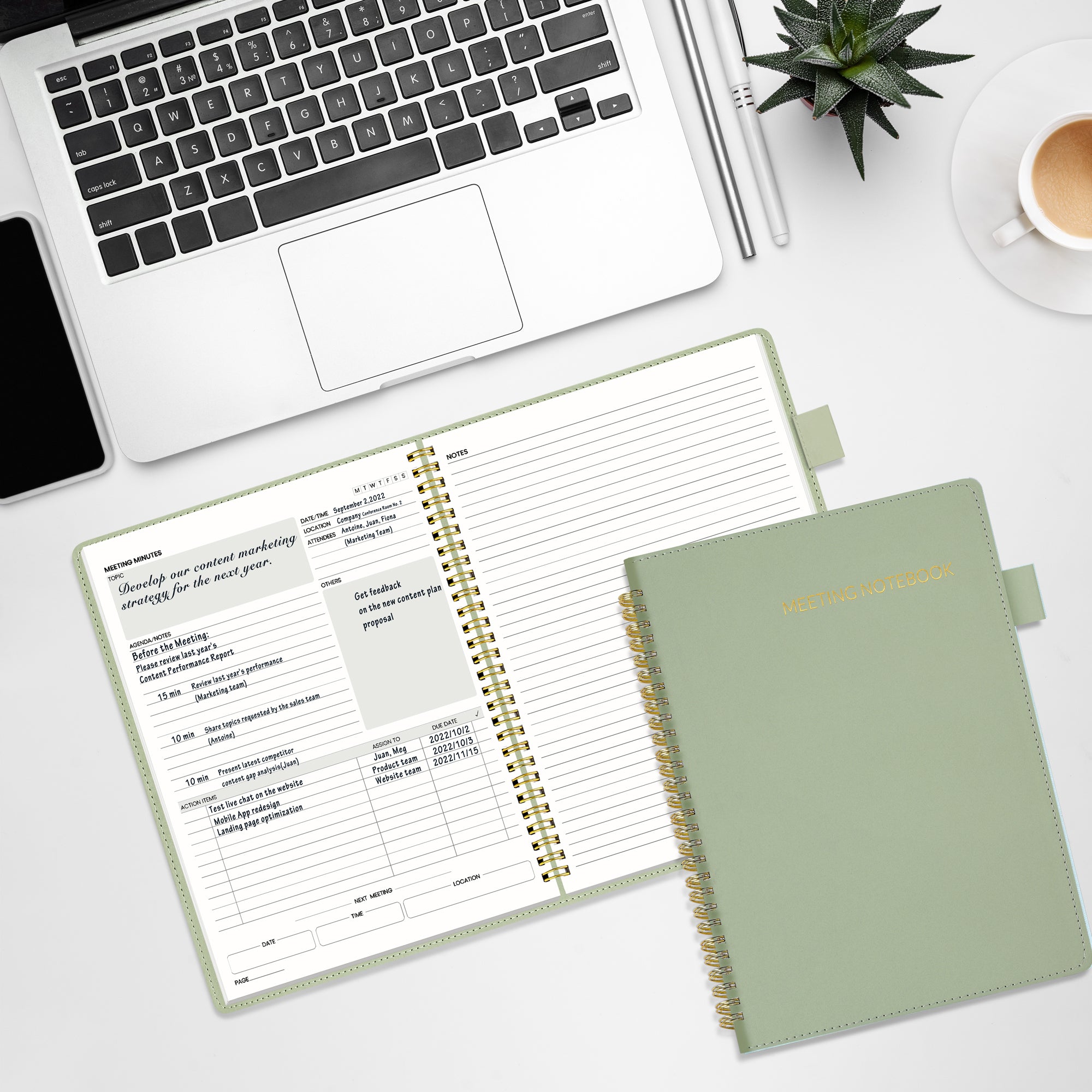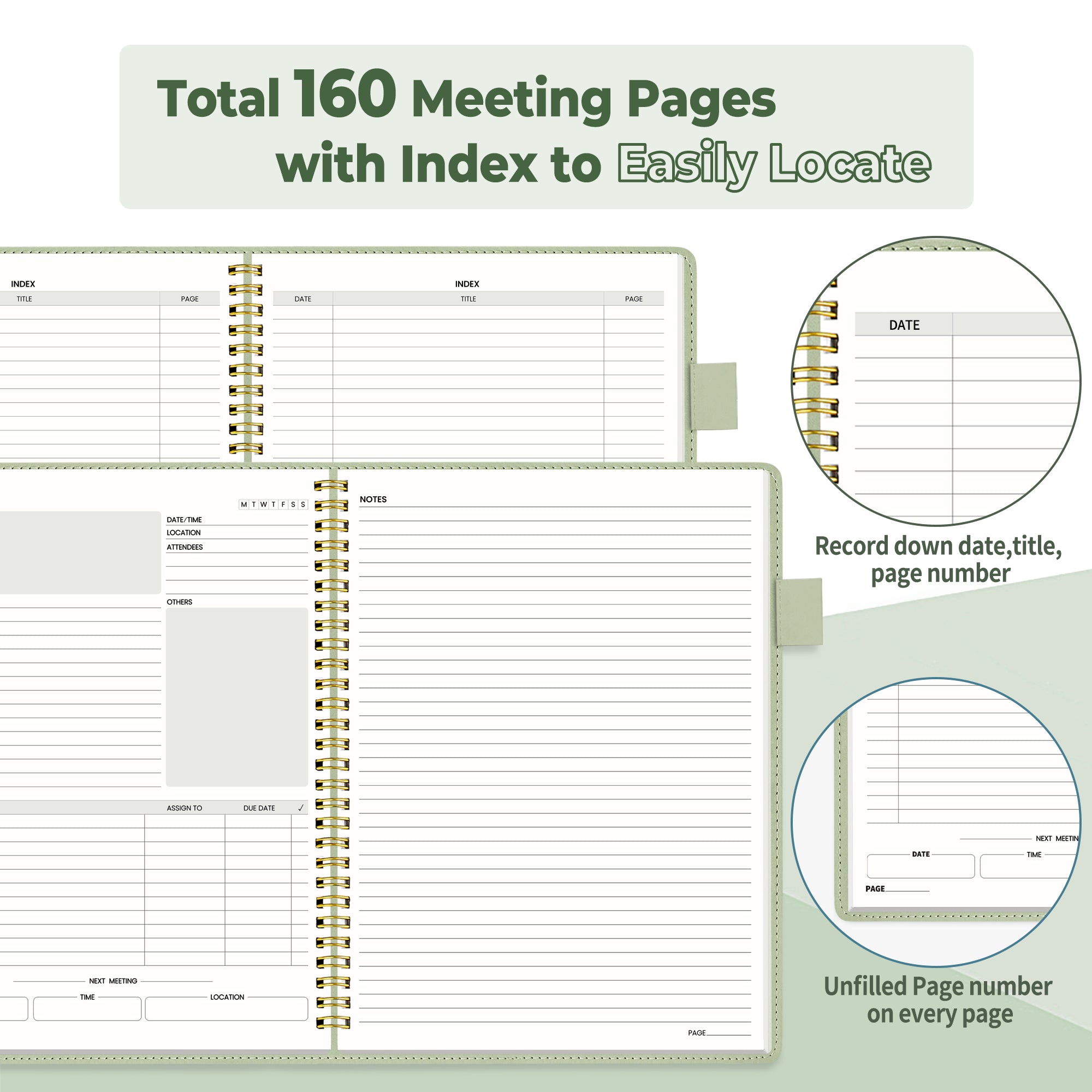 SUNEE Half Meeting Half Note - 8.5"x11" Professional Notebooks for Work - 160 Pages, A4 Size Project Planner, Spiral Meeting Agenda/Minutes Organizer for Women Men, Note Taking, Office & Business