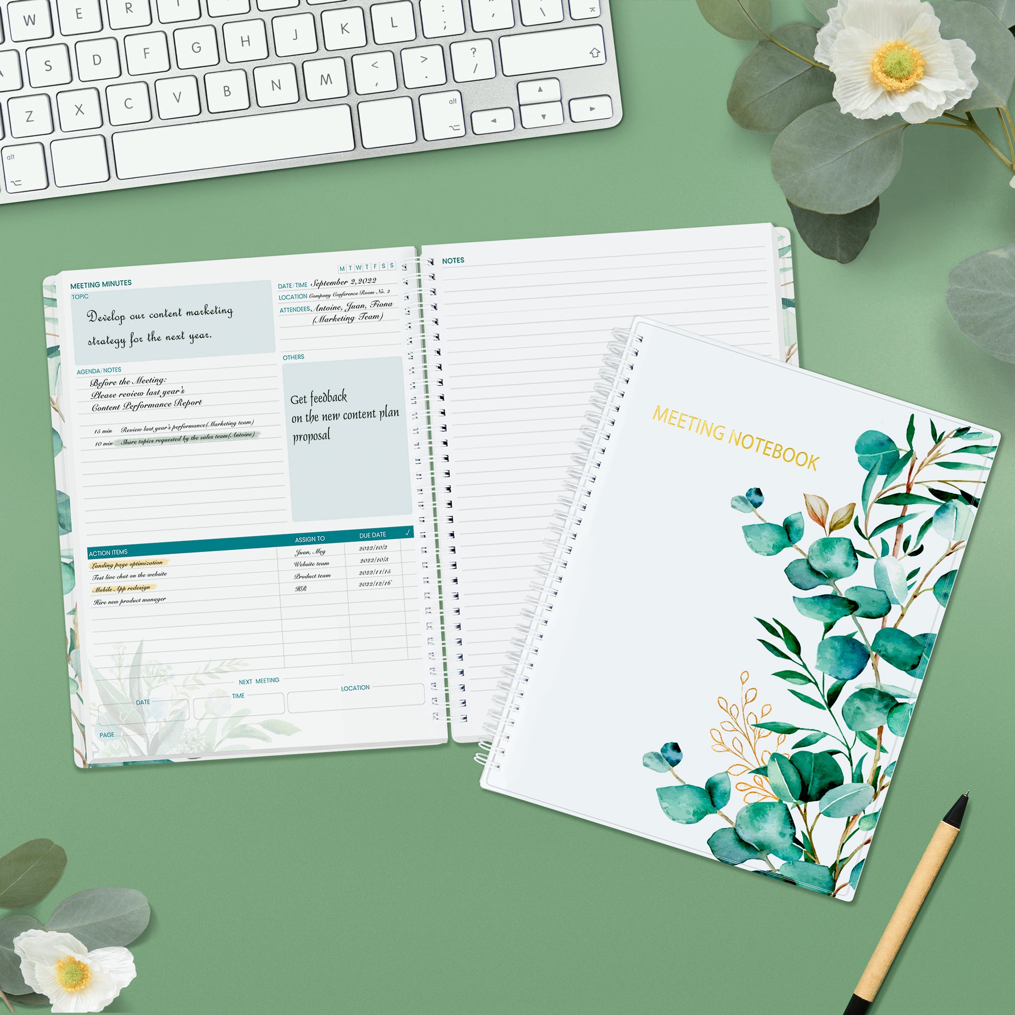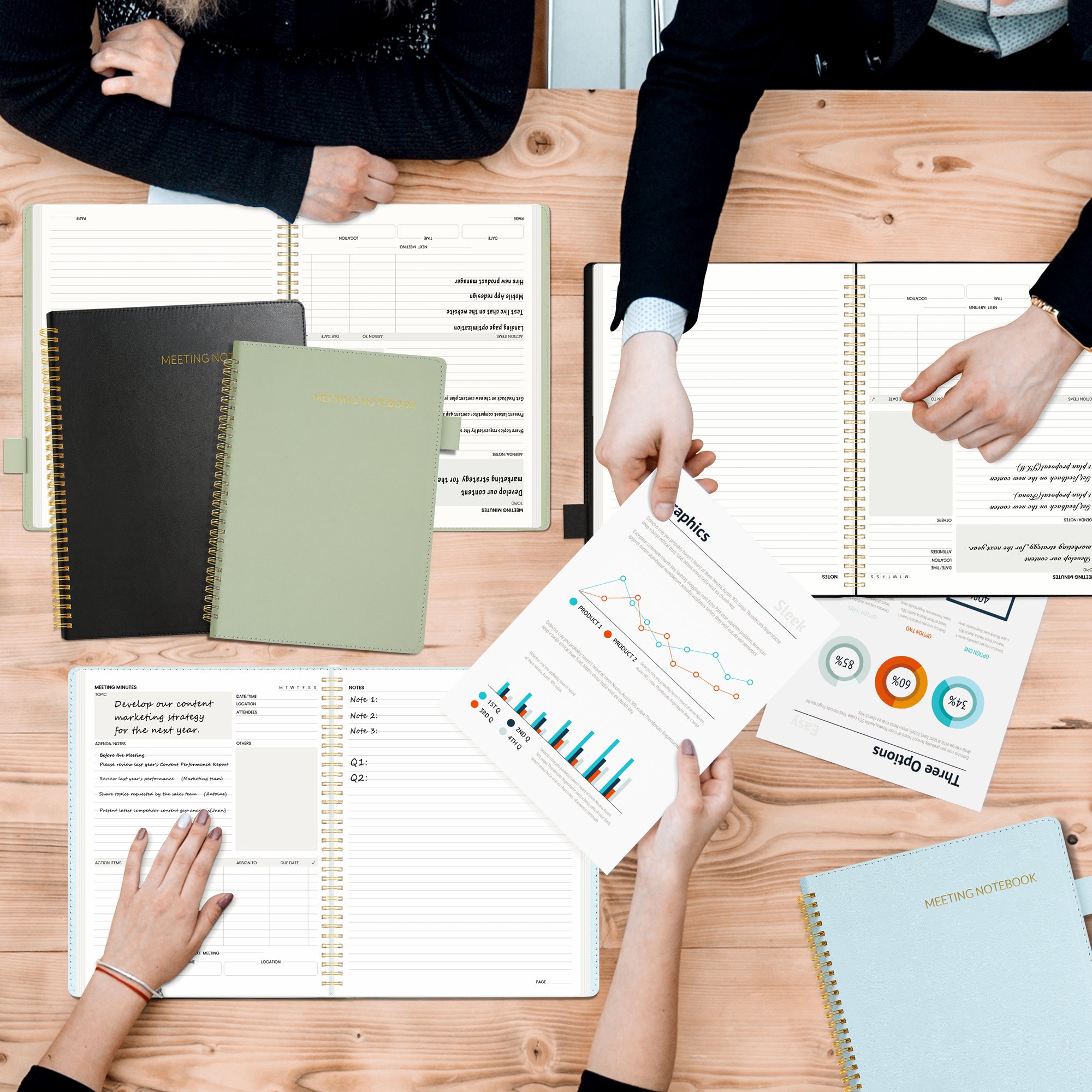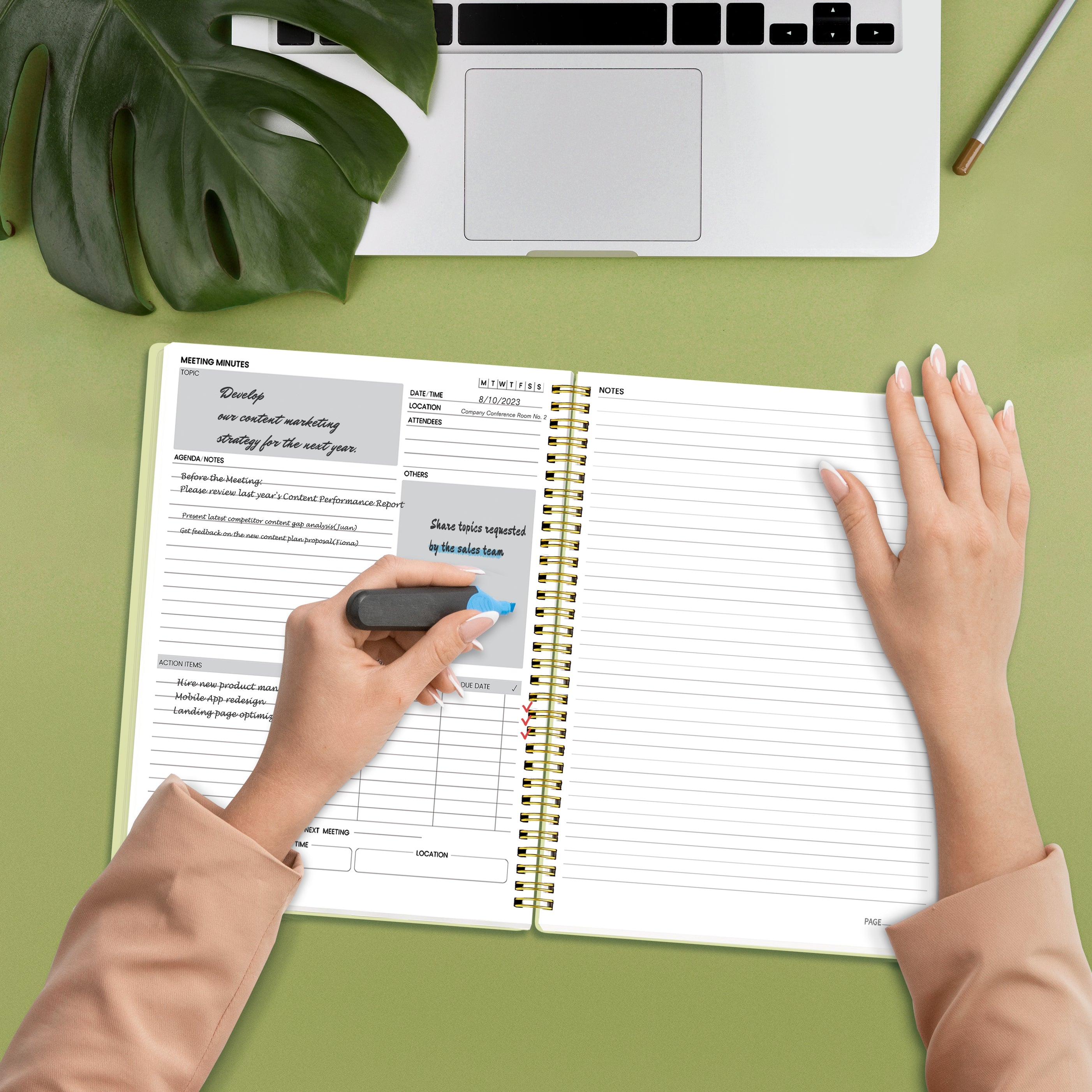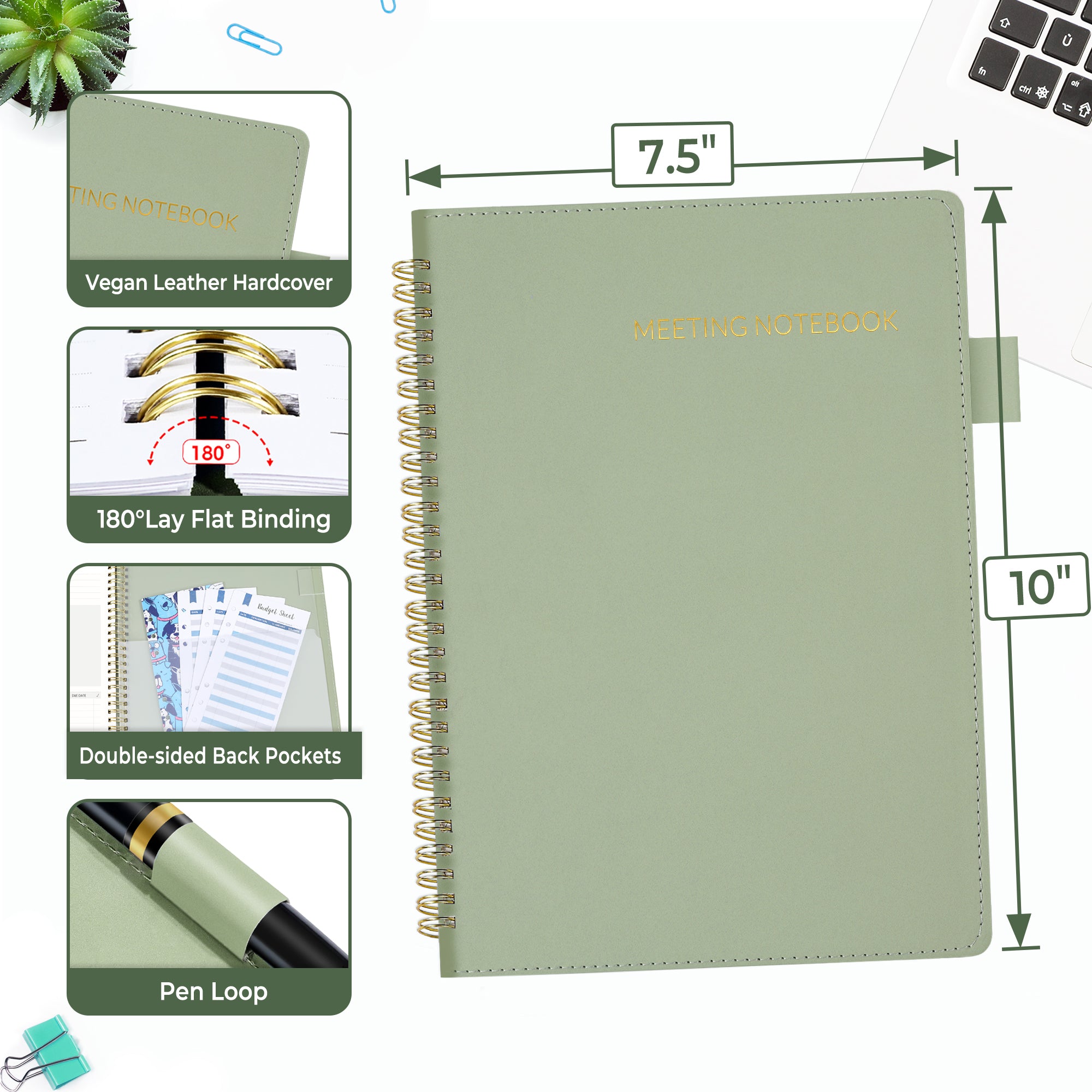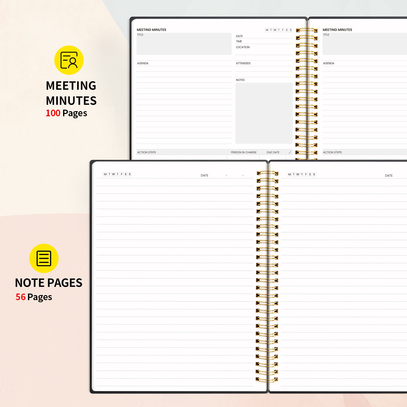 SUNEE Half Meeting Half Note - 8.5"x11" Professional Notebooks for Work - 160 Pages, A4 Size Project Planner, Spiral Meeting Agenda/Minutes Organizer for Women Men, Note Taking, Office & Business