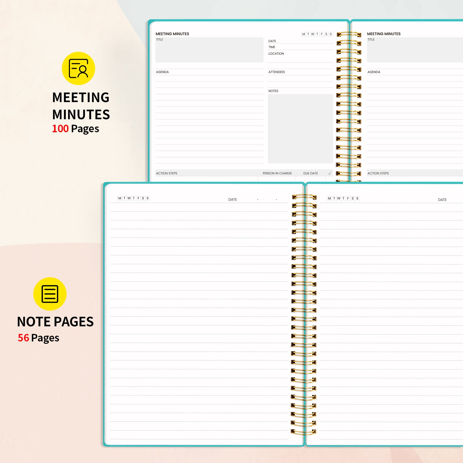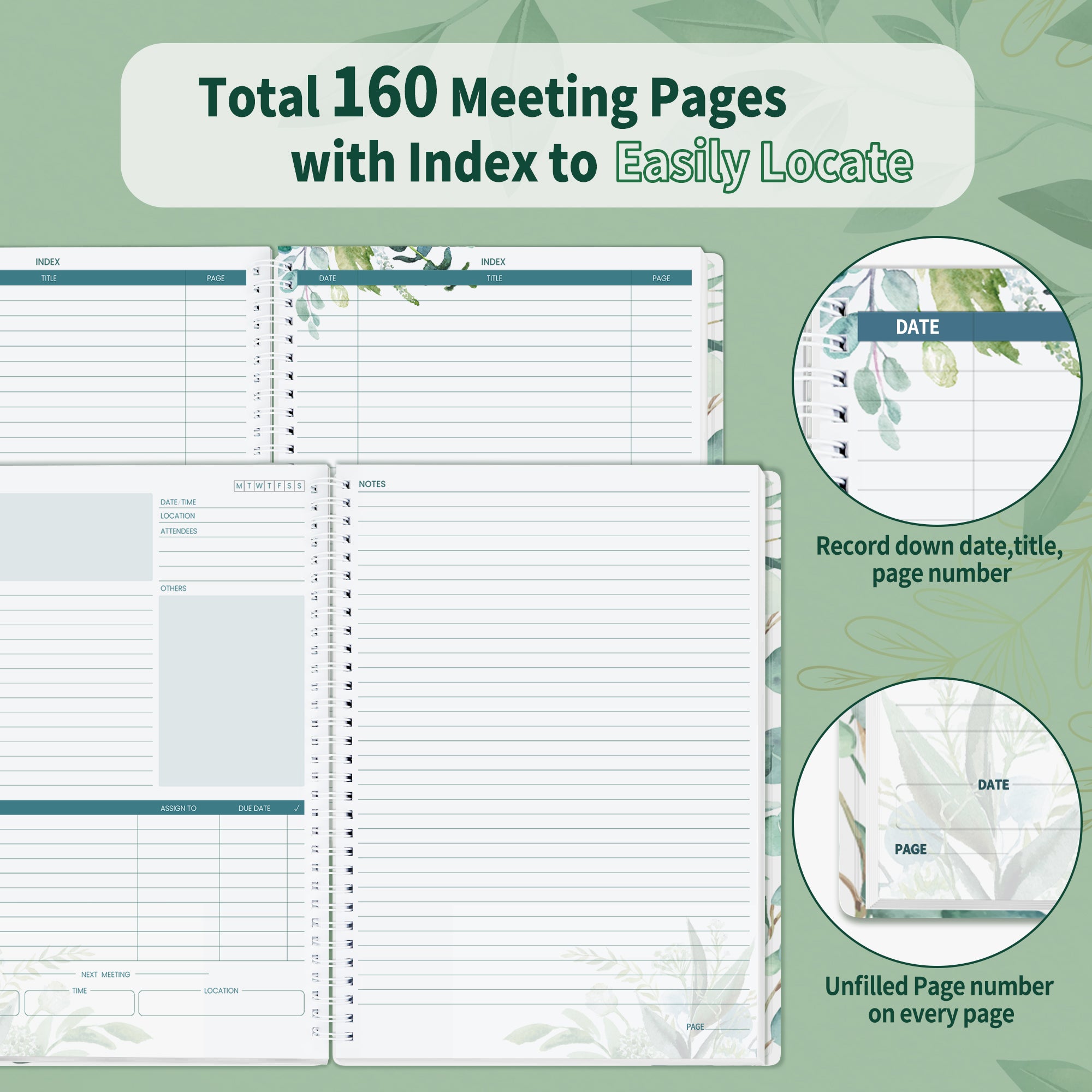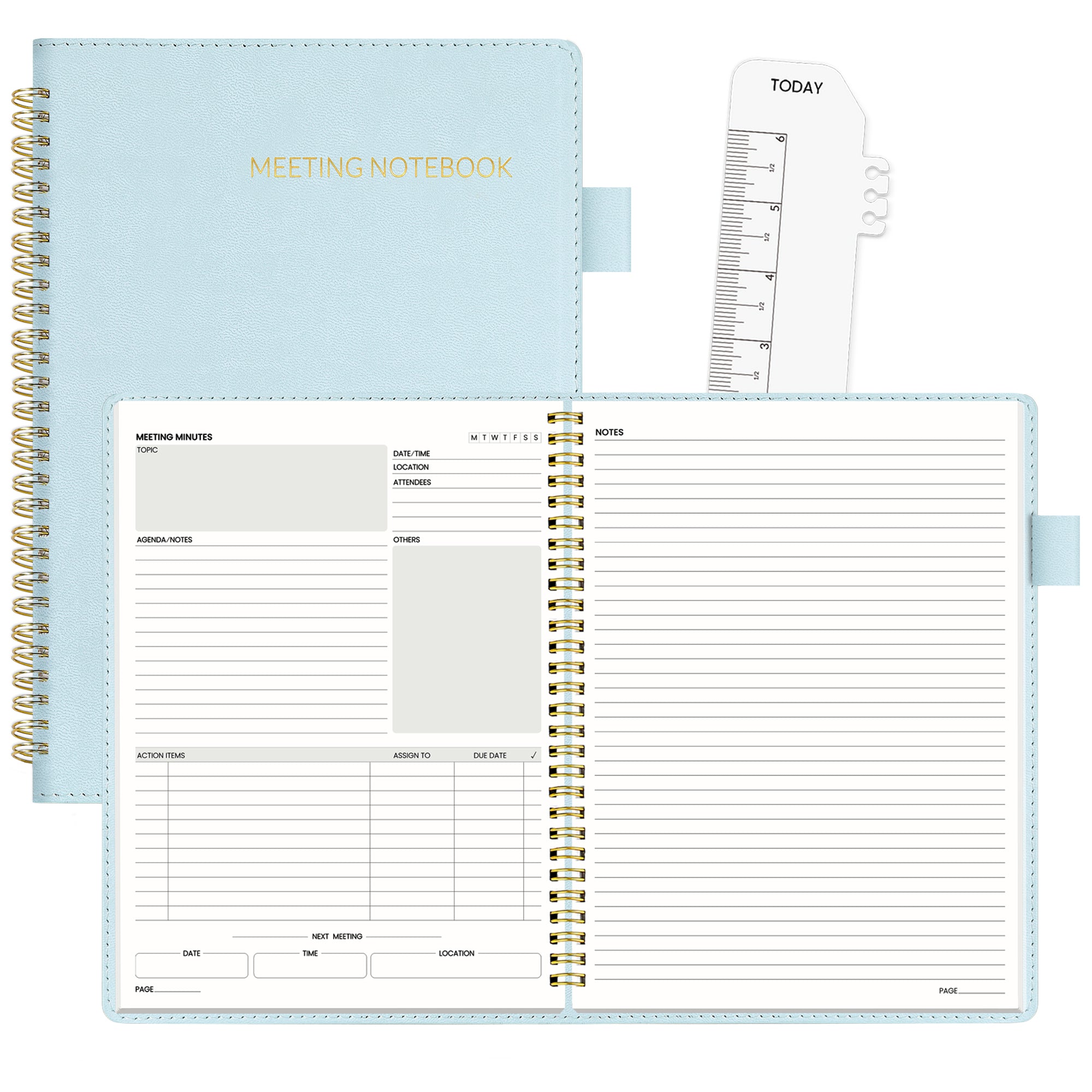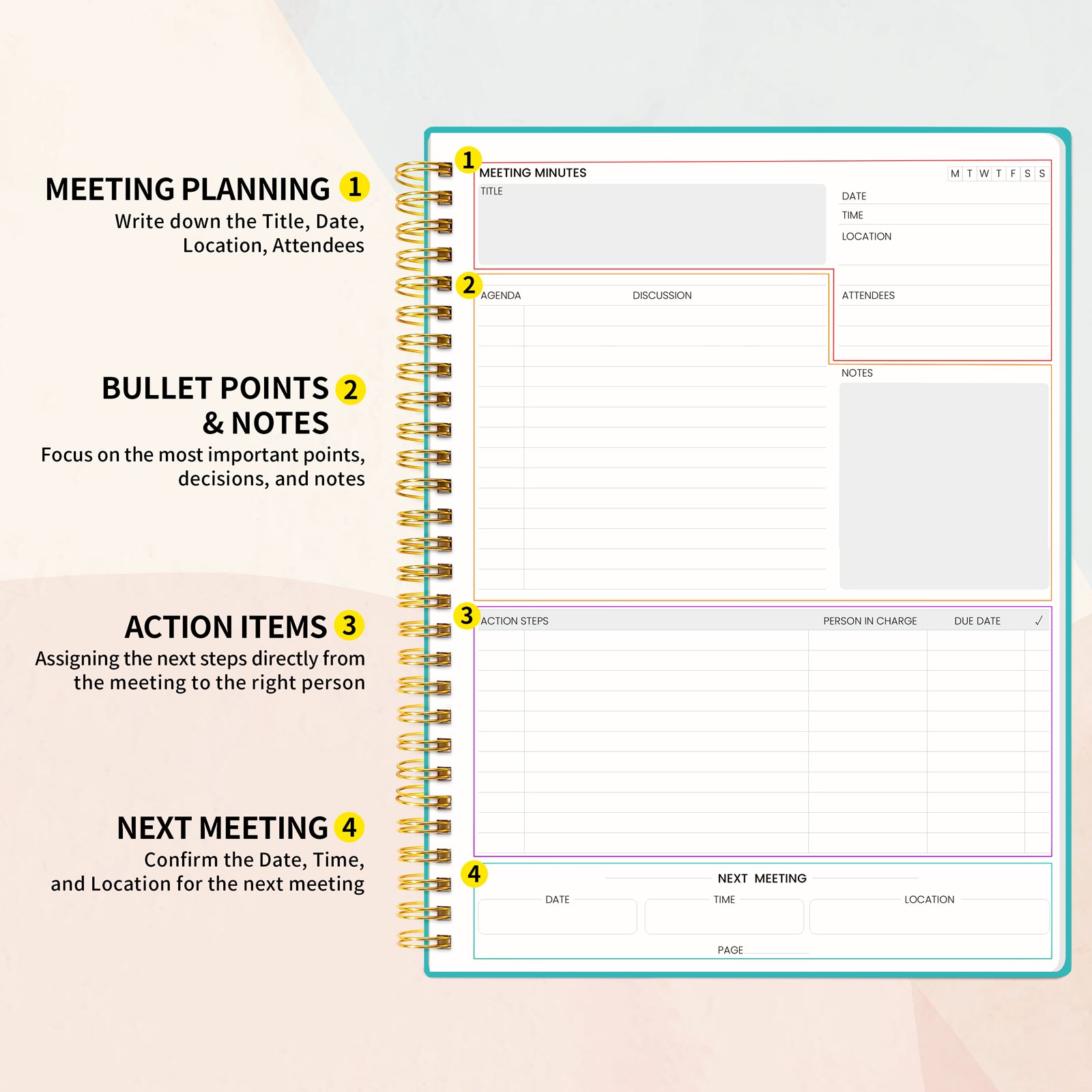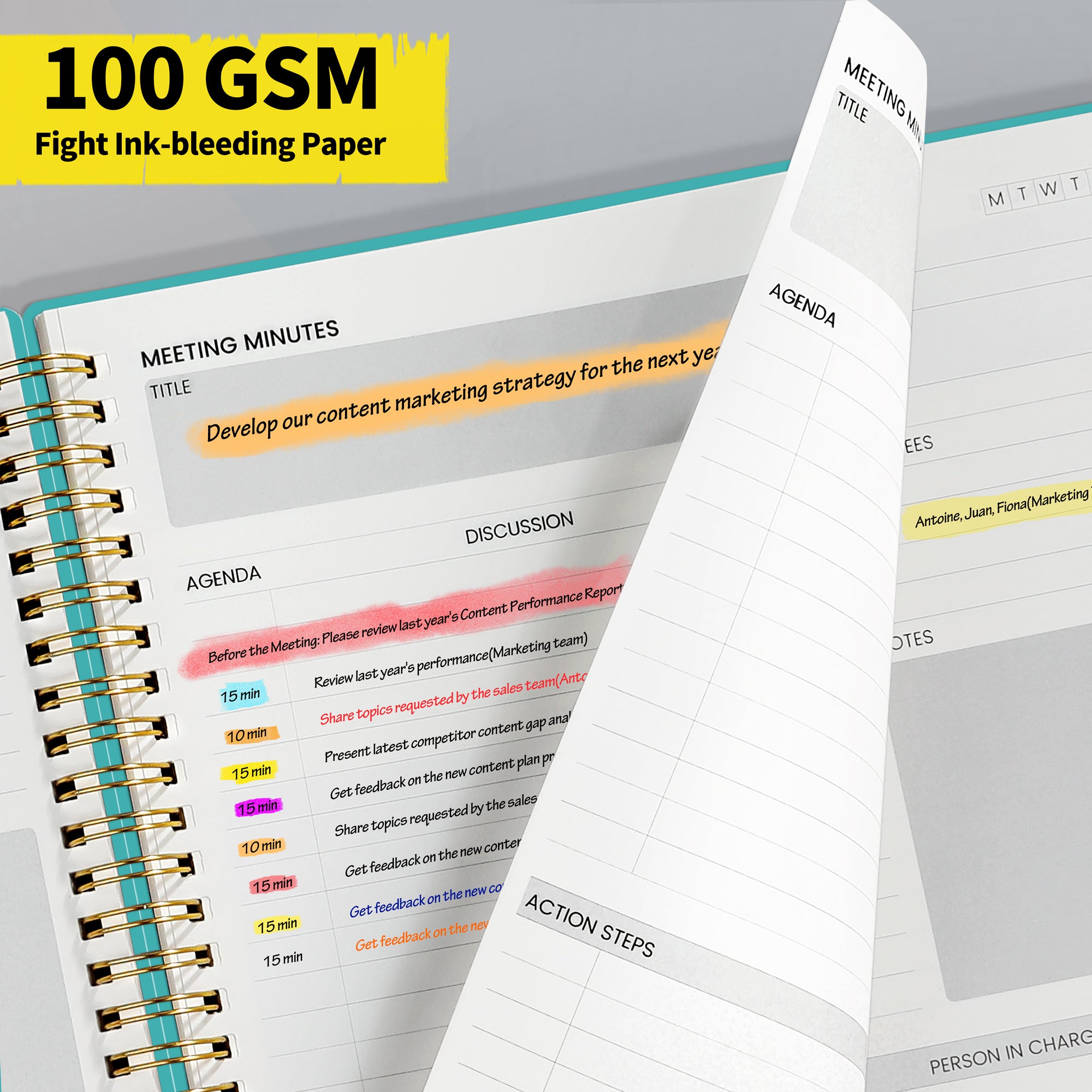 SUNEE Half Meeting Half Note - 8.5"x11" Professional Notebooks for Work - 160 Pages, A4 Size Project Planner, Spiral Meeting Agenda/Minutes Organizer for Women Men, Note Taking, Office & Business