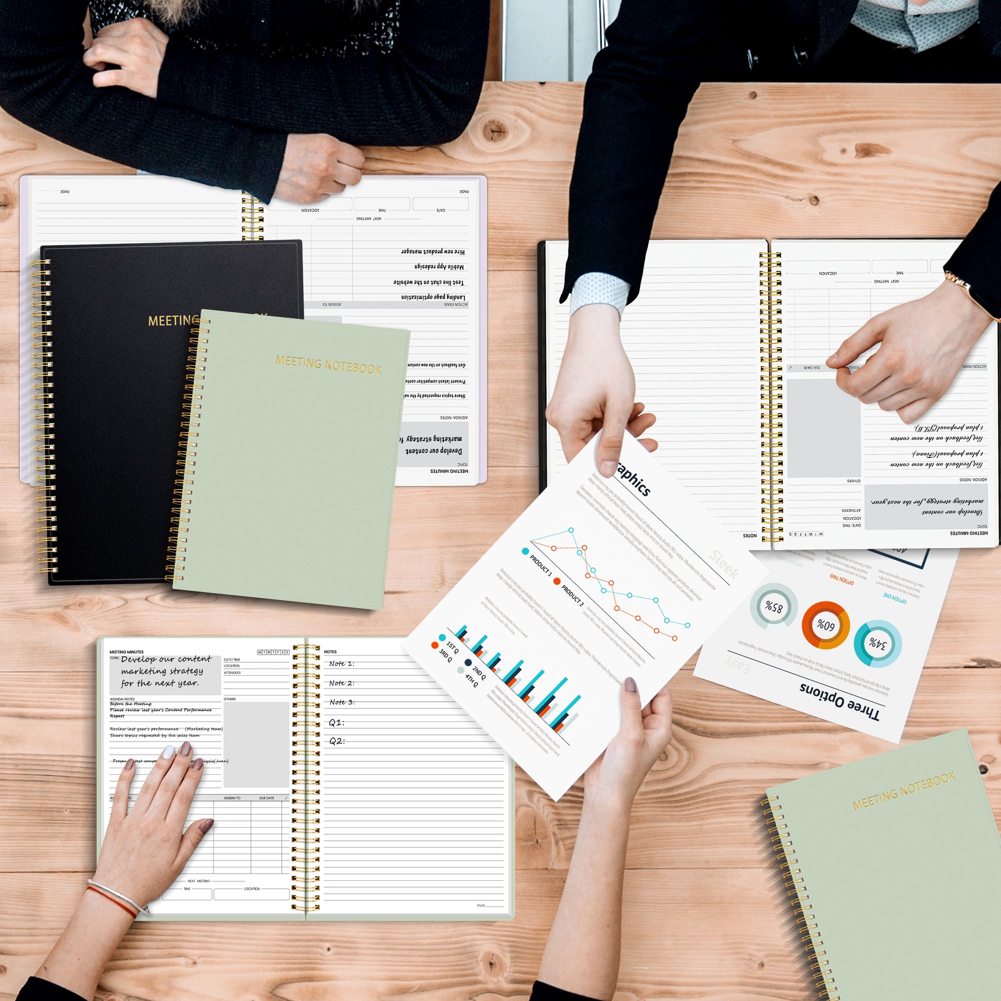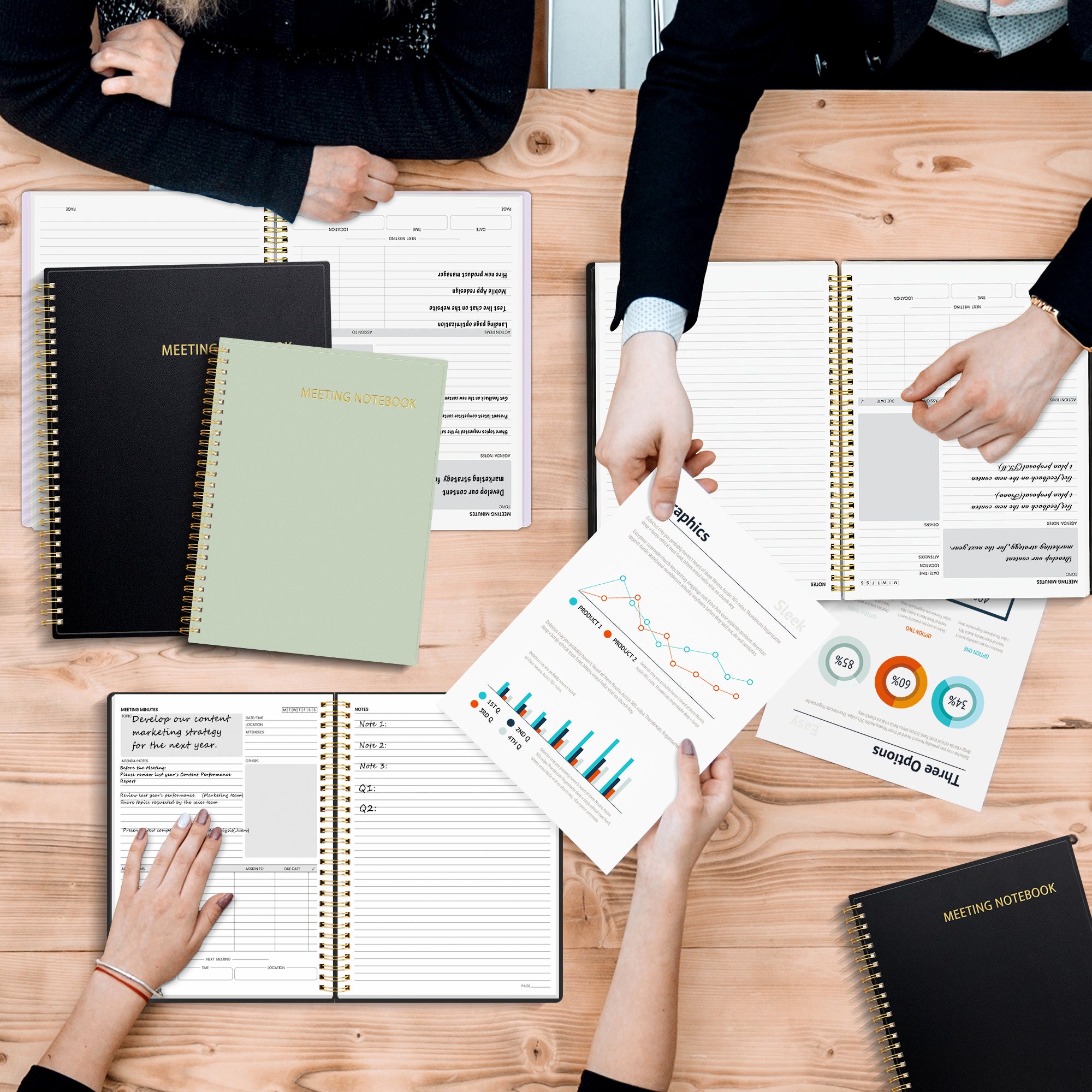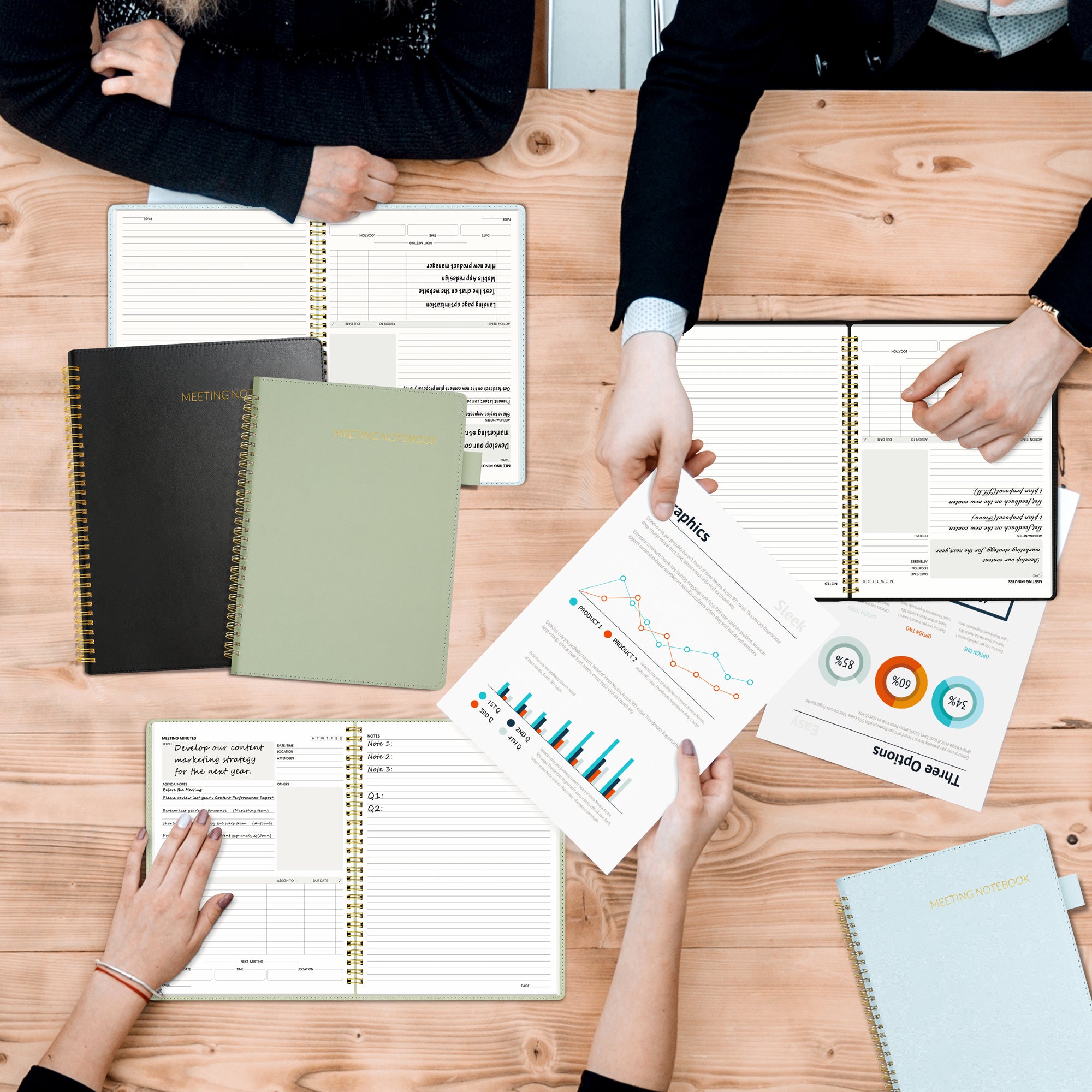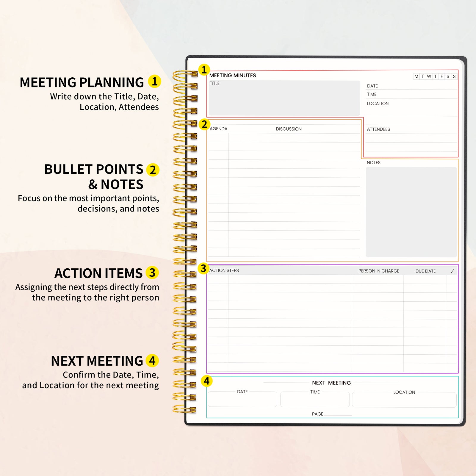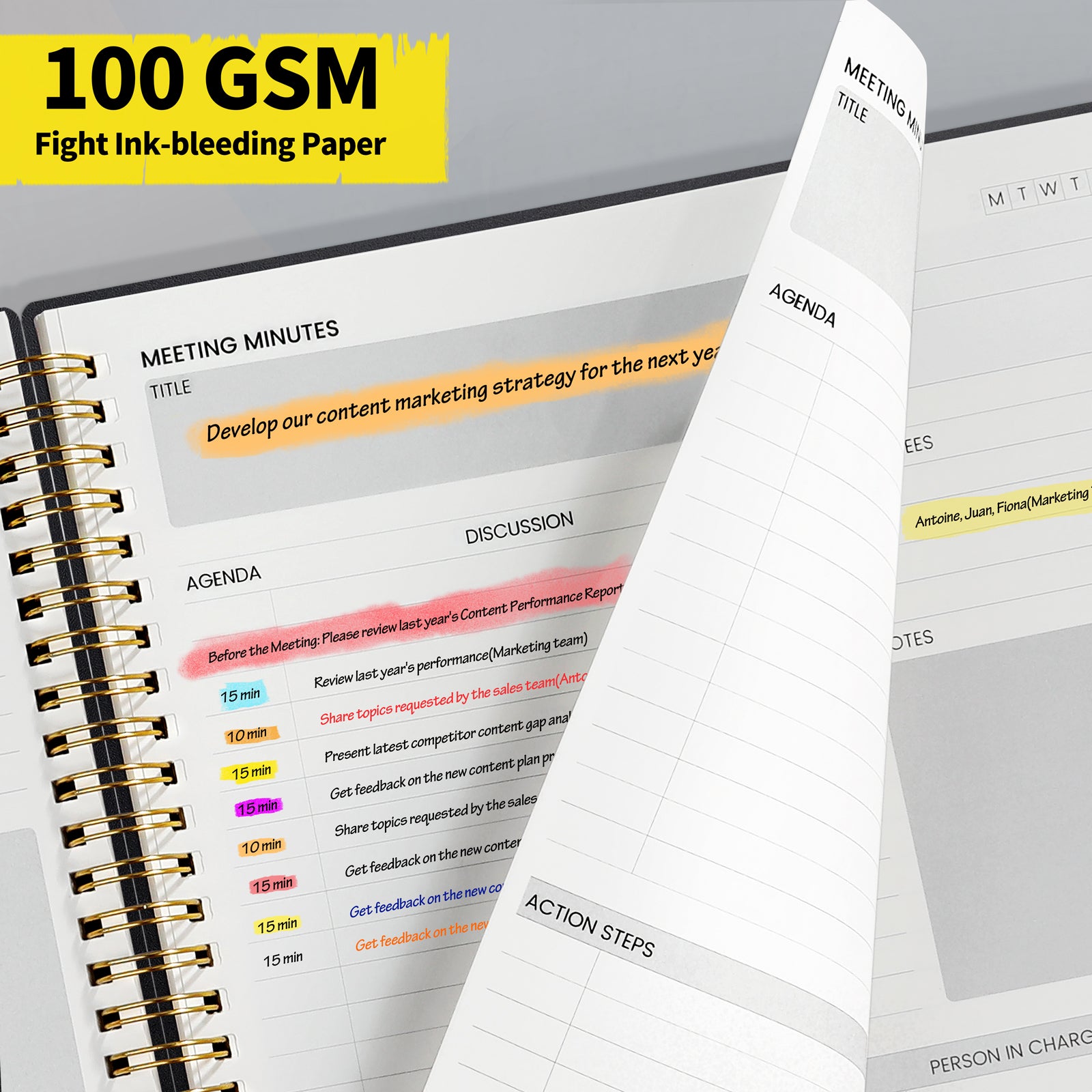 SUNEE Half Meeting Half Note - 8.5"x11" Professional Notebooks for Work - 160 Pages, A4 Size Project Planner, Spiral Meeting Agenda/Minutes Organizer for Women Men, Note Taking, Office & Business