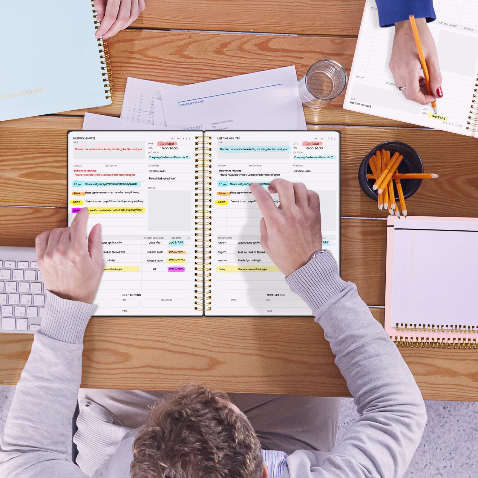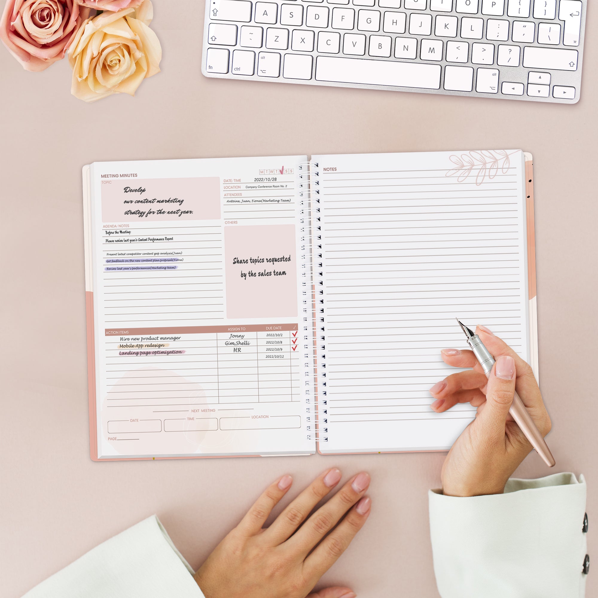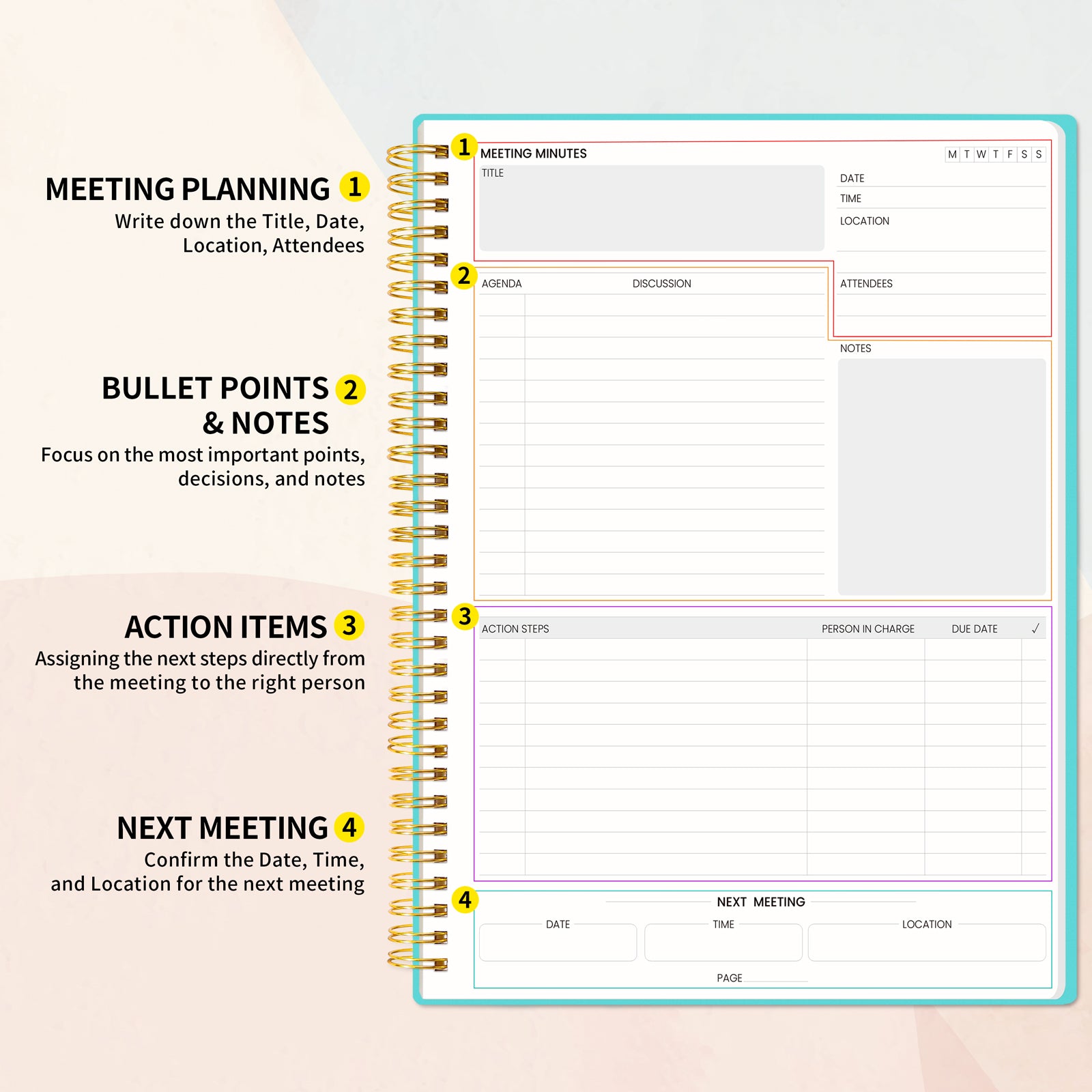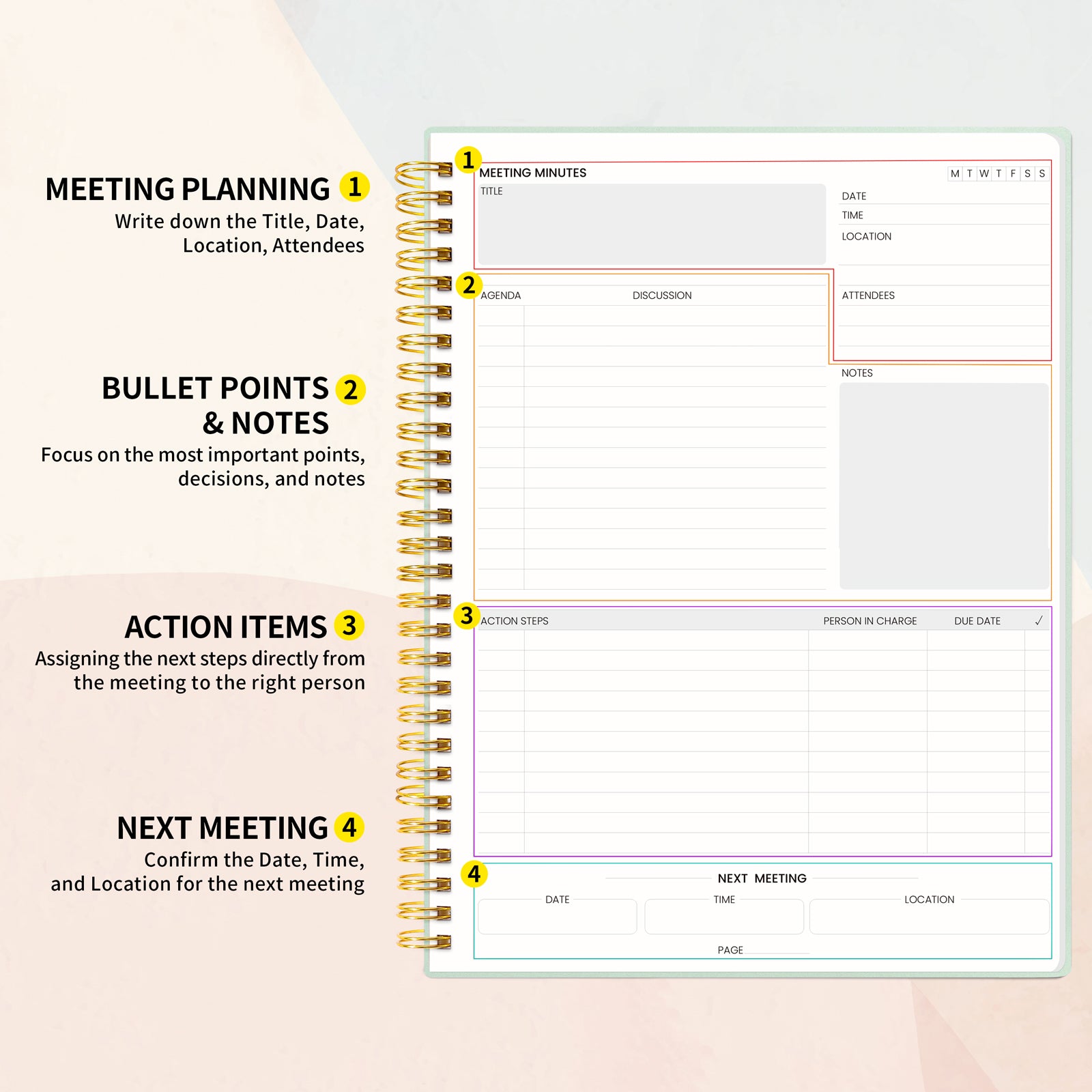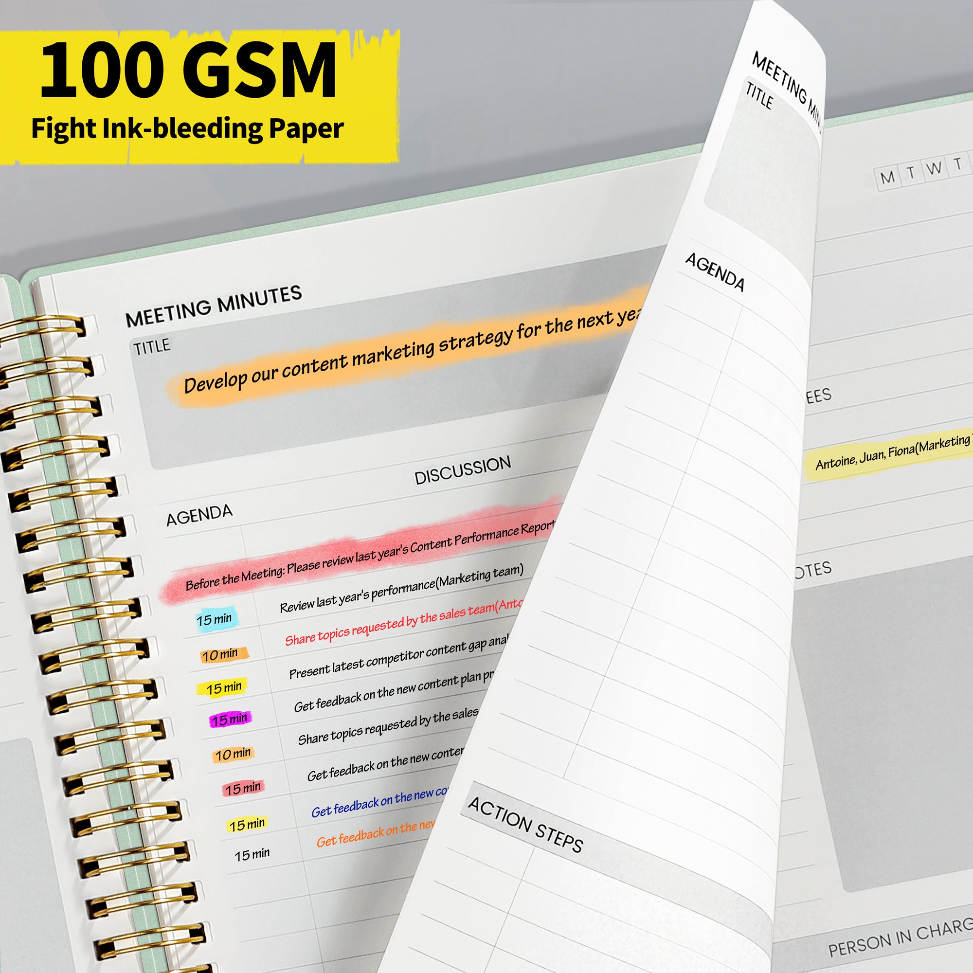 SUNEE Half Meeting Half Note - 8.5"x11" Professional Notebooks for Work - 160 Pages, A4 Size Project Planner, Spiral Meeting Agenda/Minutes Organizer for Women Men, Note Taking, Office & Business