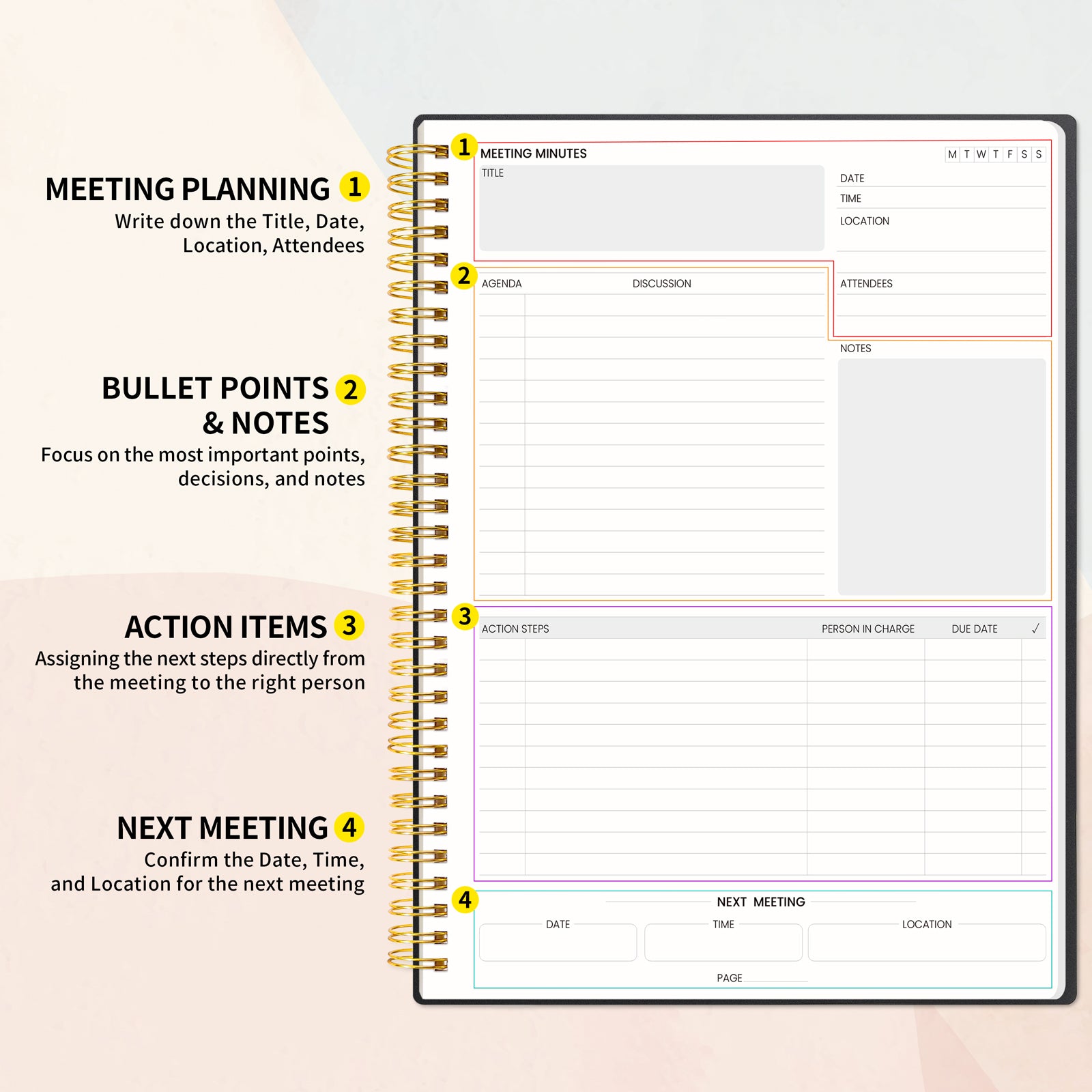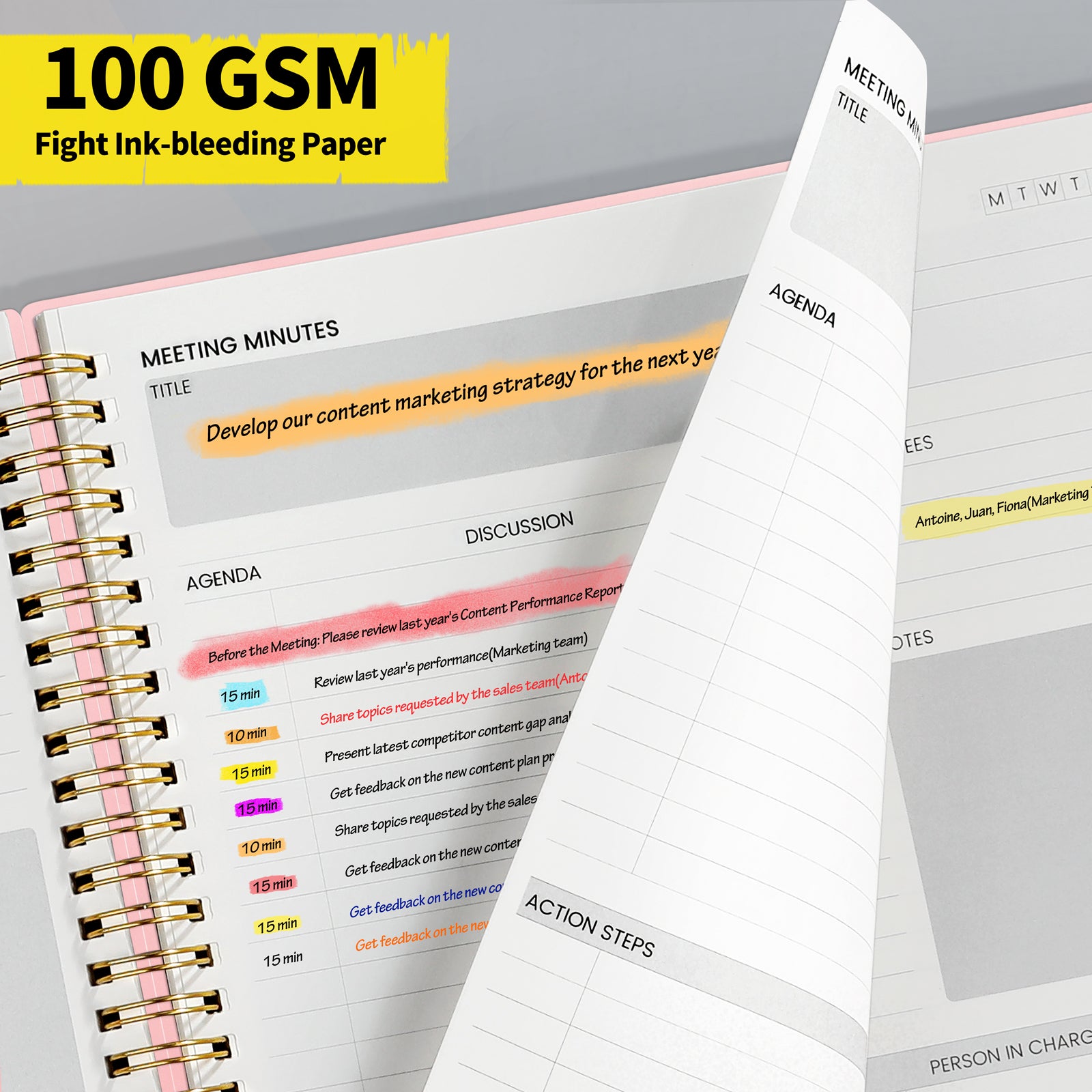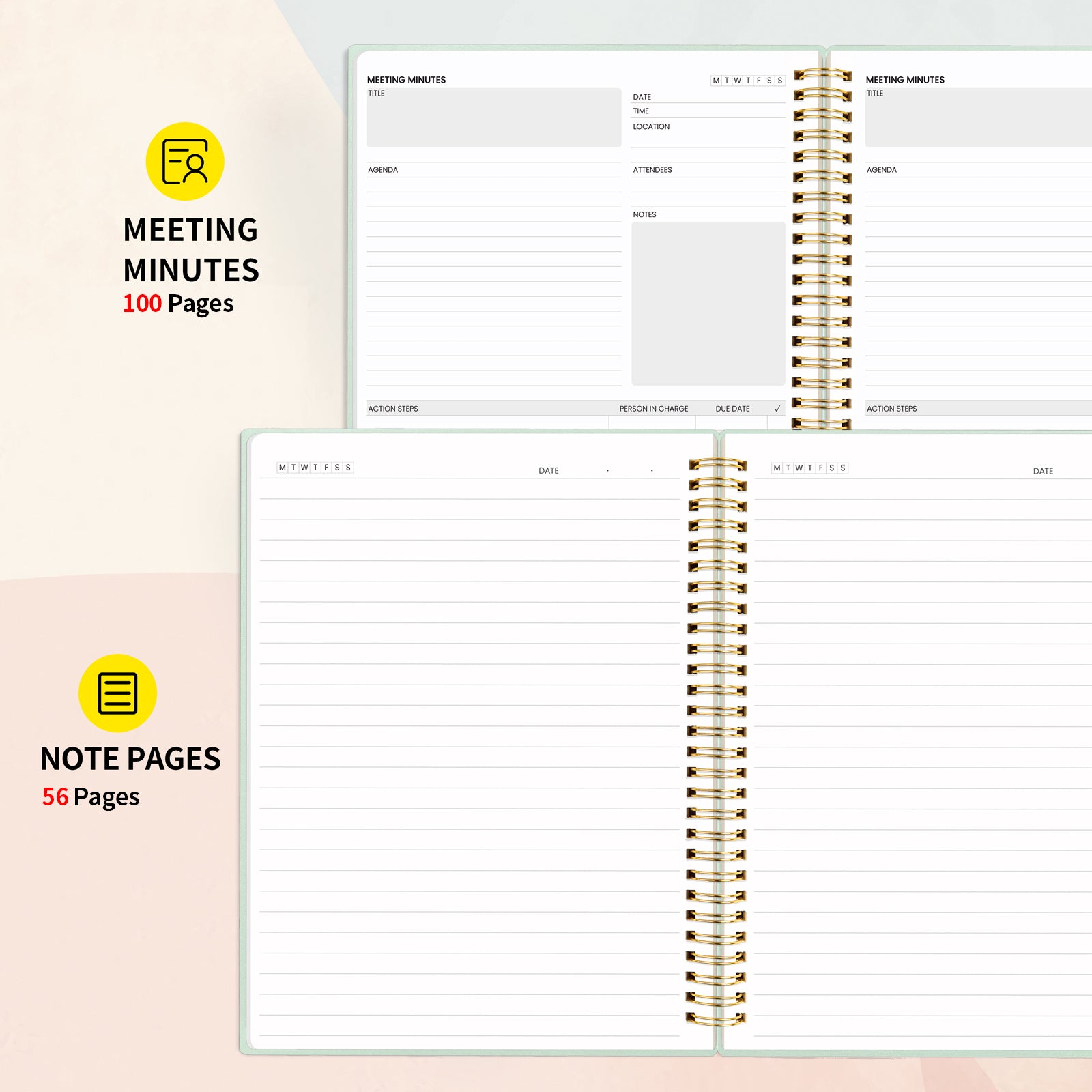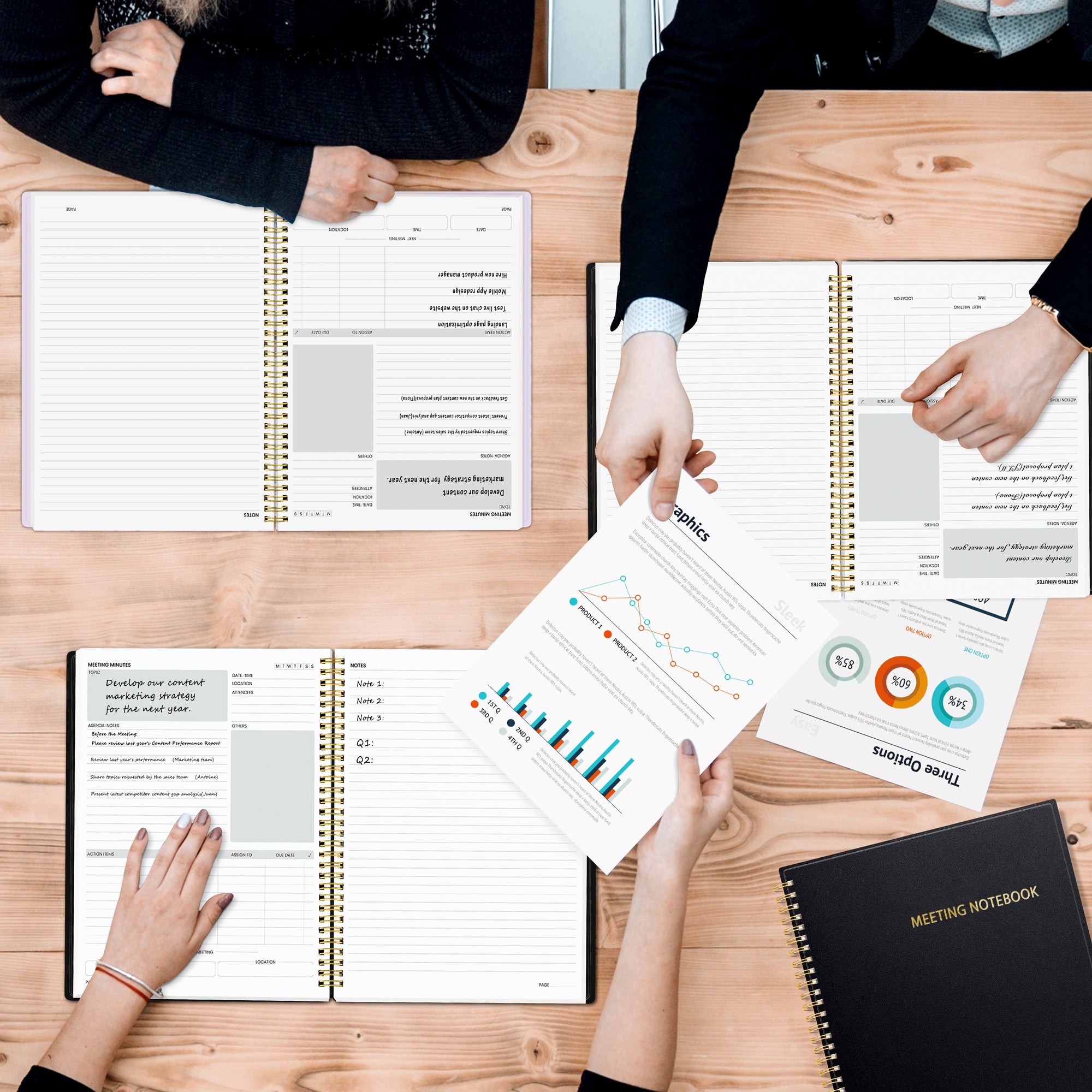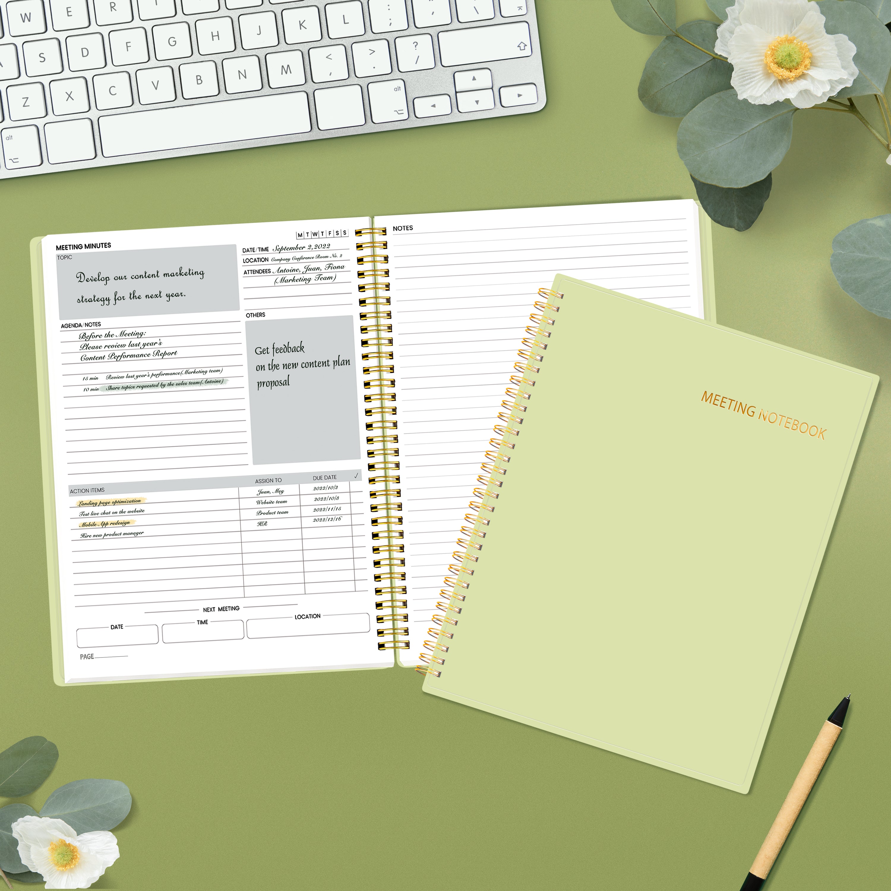 SUNEE Half Meeting Half Note - 8.5"x11" Professional Notebooks for Work - 160 Pages, A4 Size Project Planner, Spiral Meeting Agenda/Minutes Organizer for Women Men, Note Taking, Office & Business