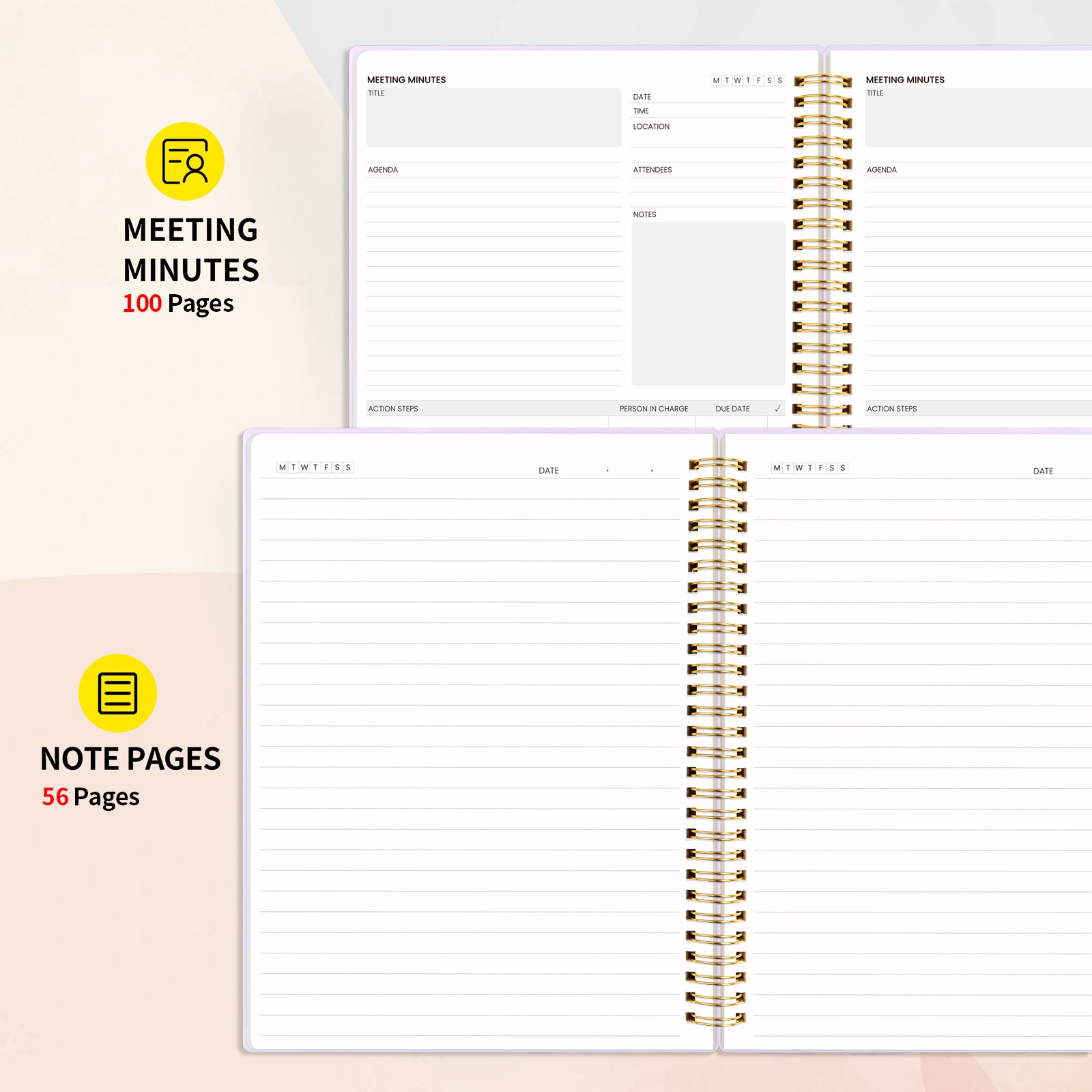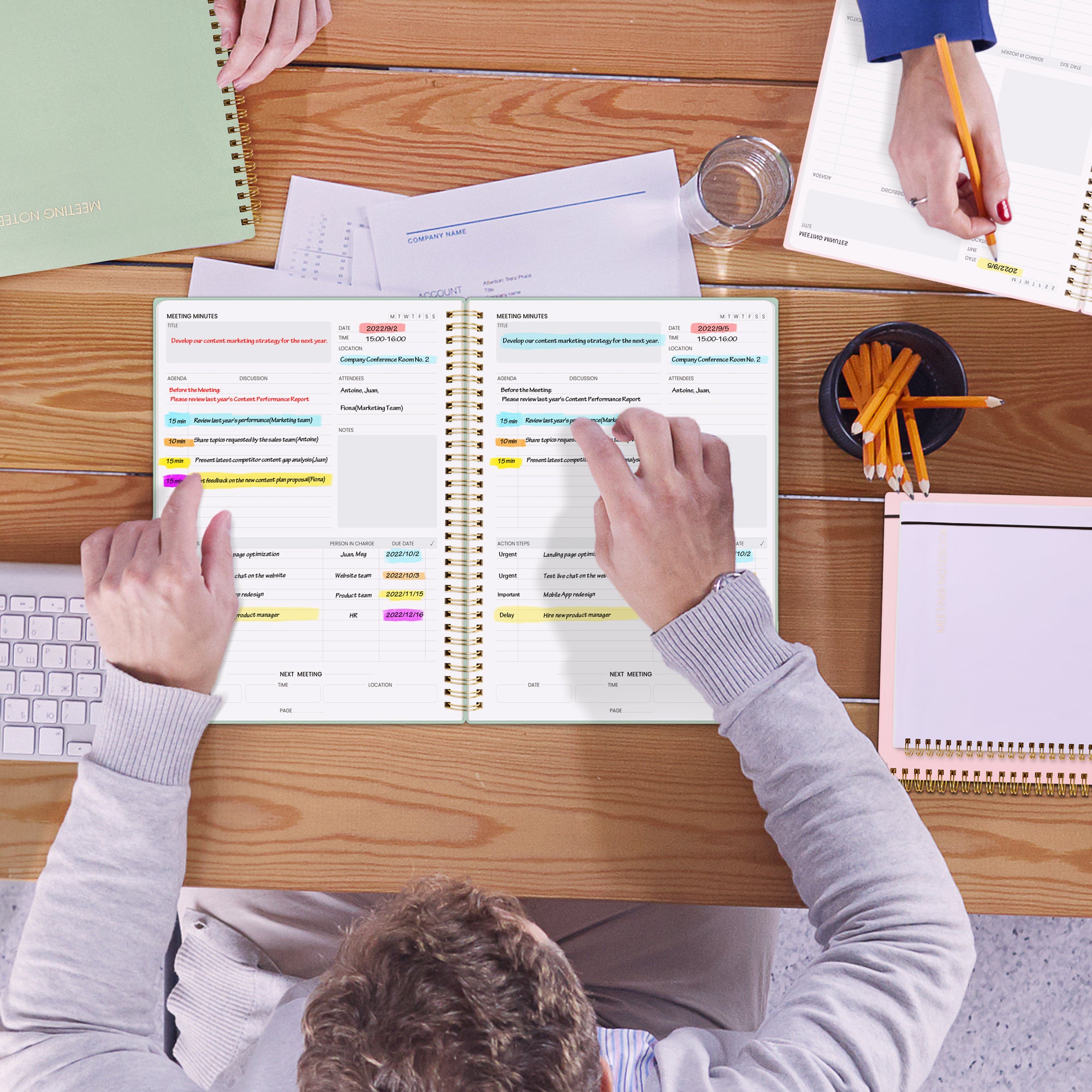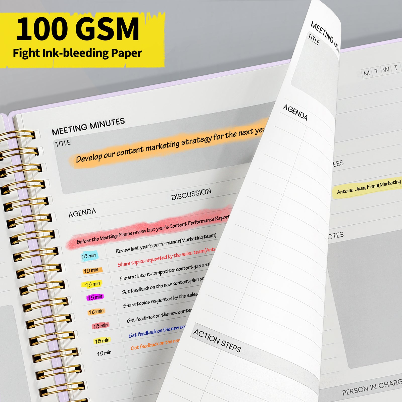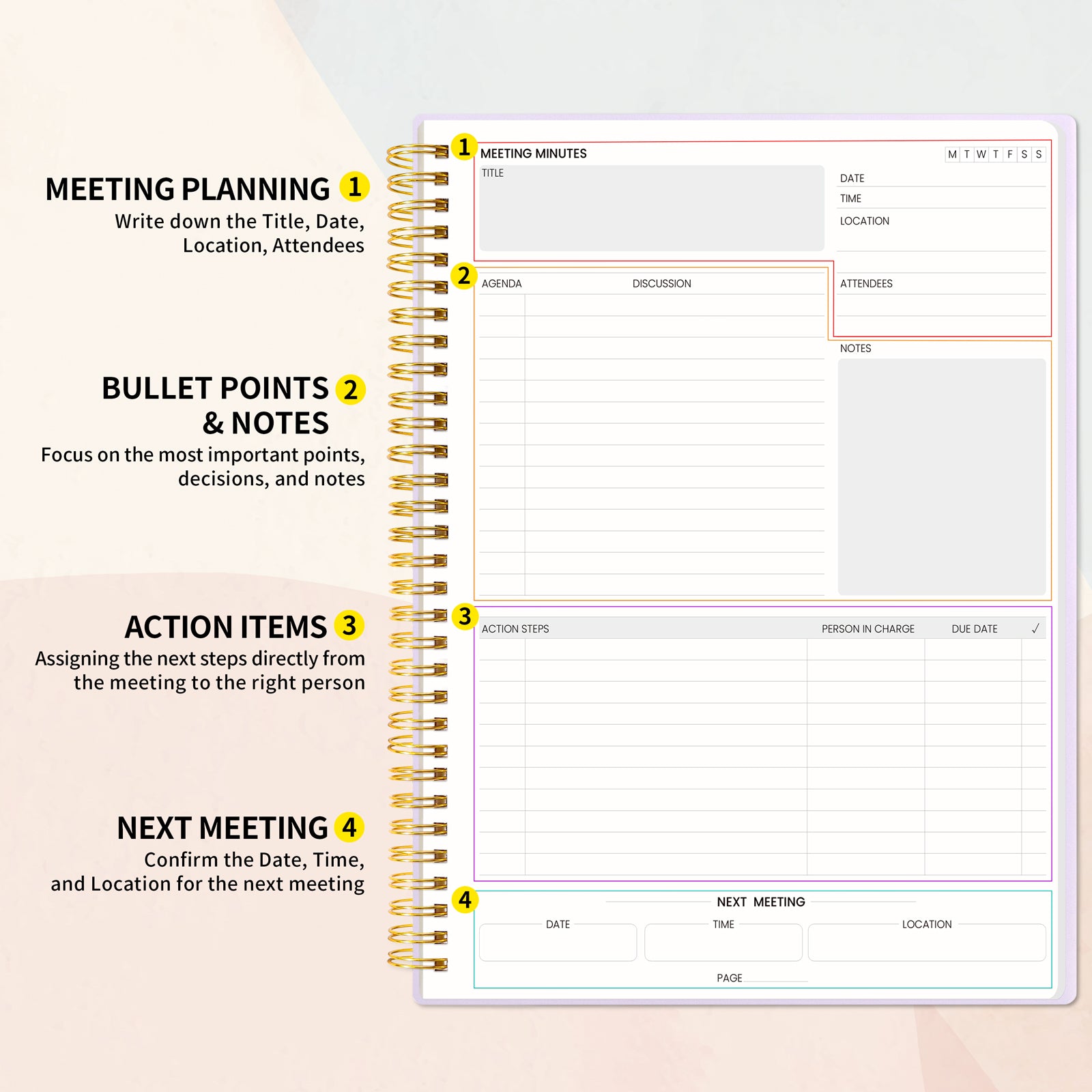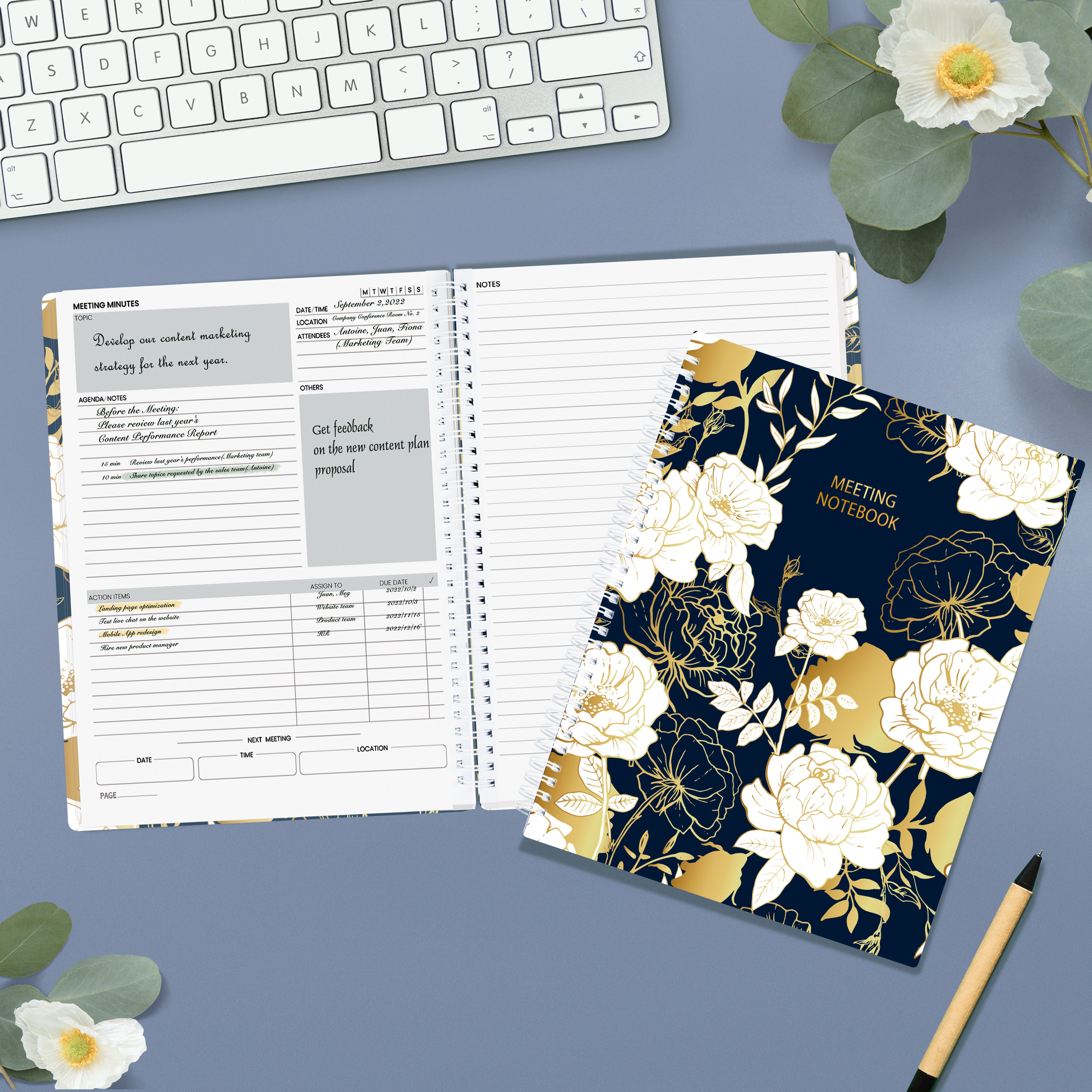 SUNEE Half Meeting Half Note - 8.5"x11" Professional Notebooks for Work - 160 Pages, A4 Size Project Planner, Spiral Meeting Agenda/Minutes Organizer for Women Men, Note Taking, Office & Business