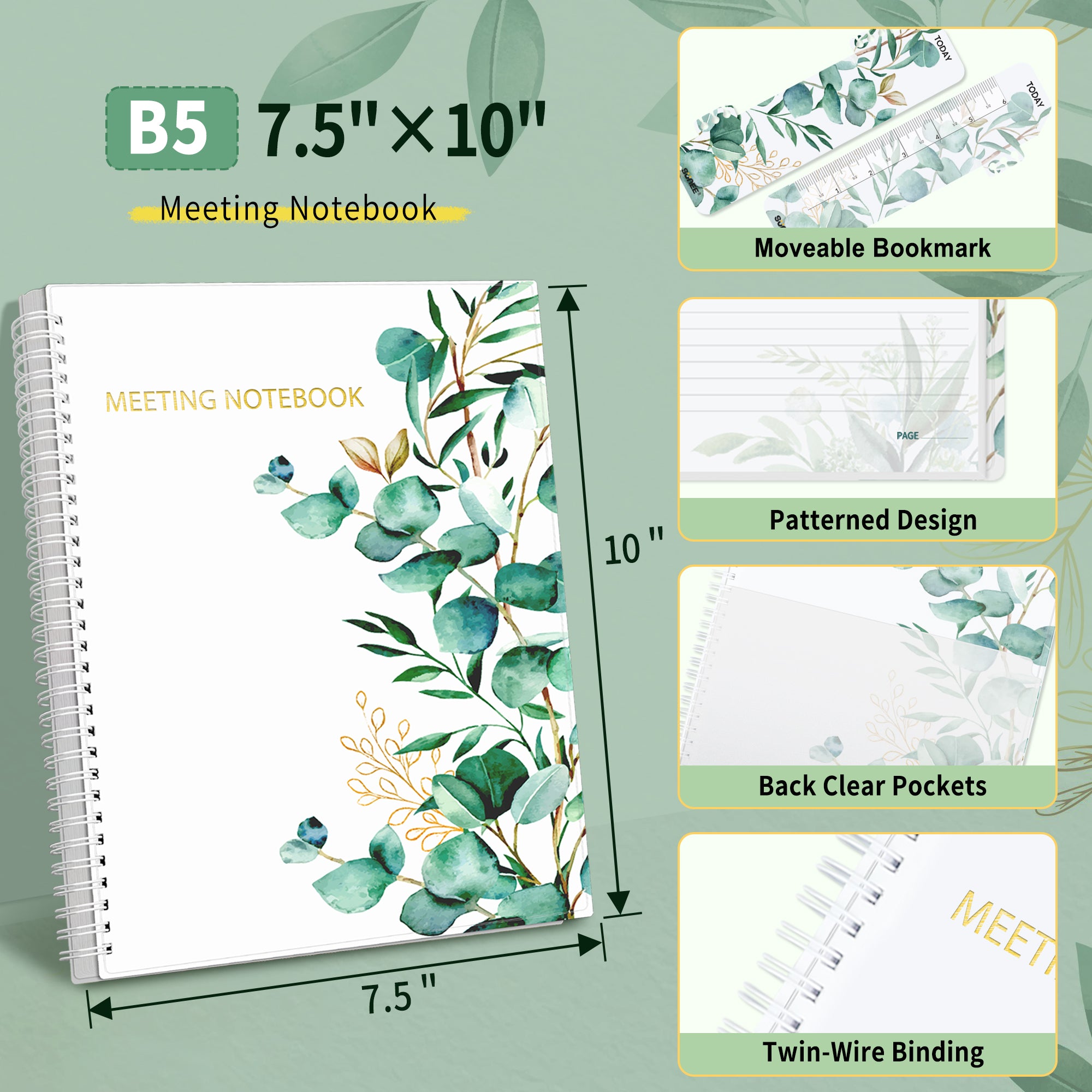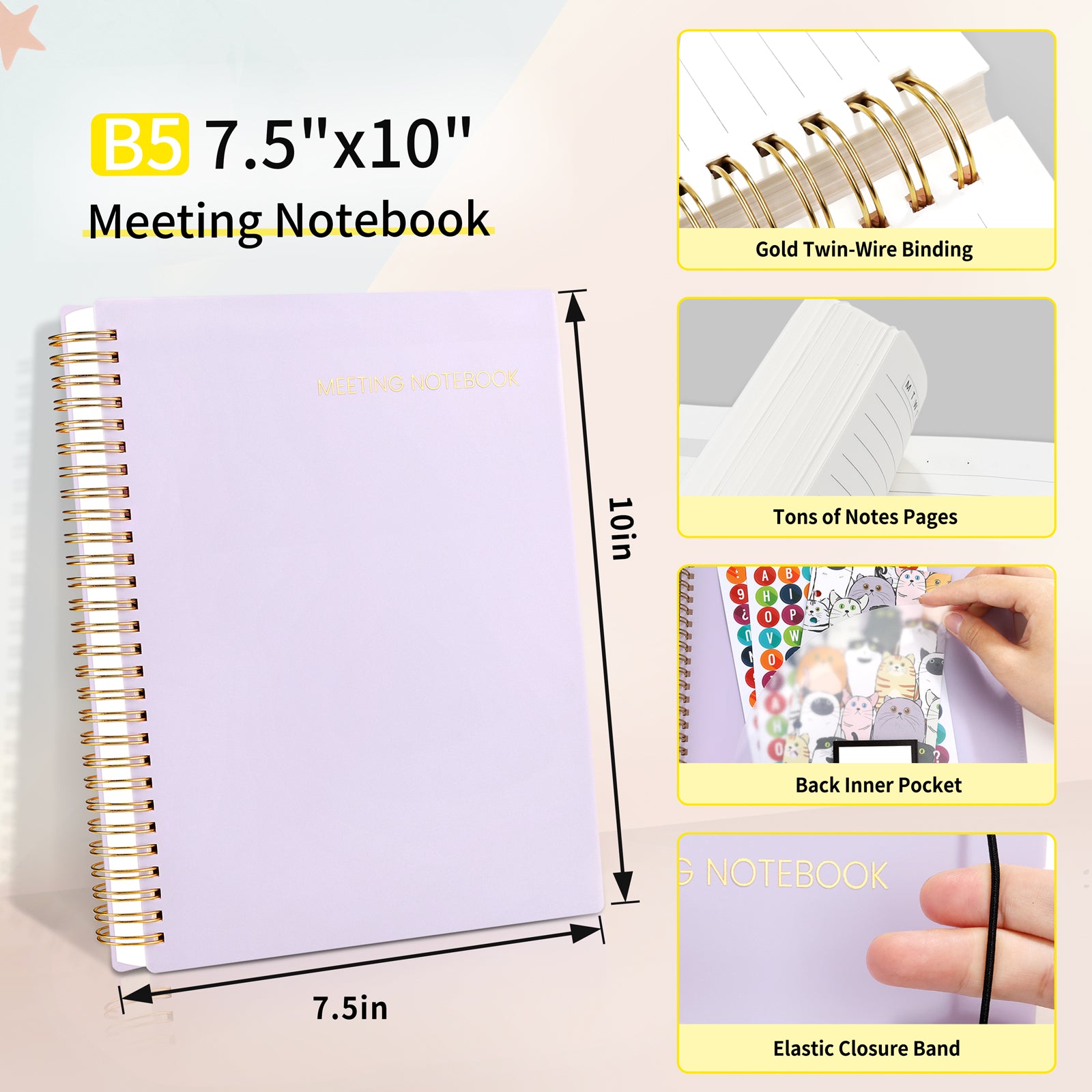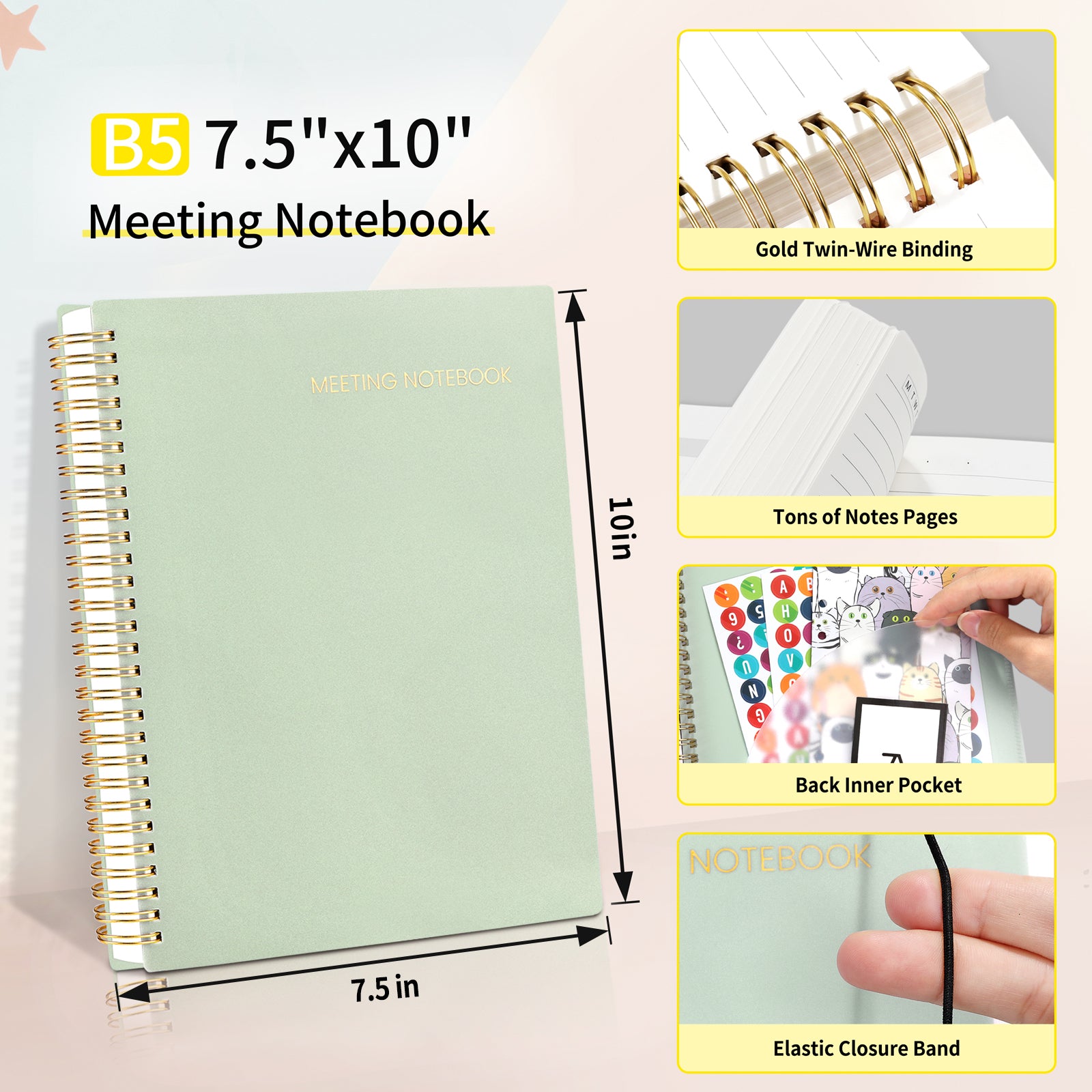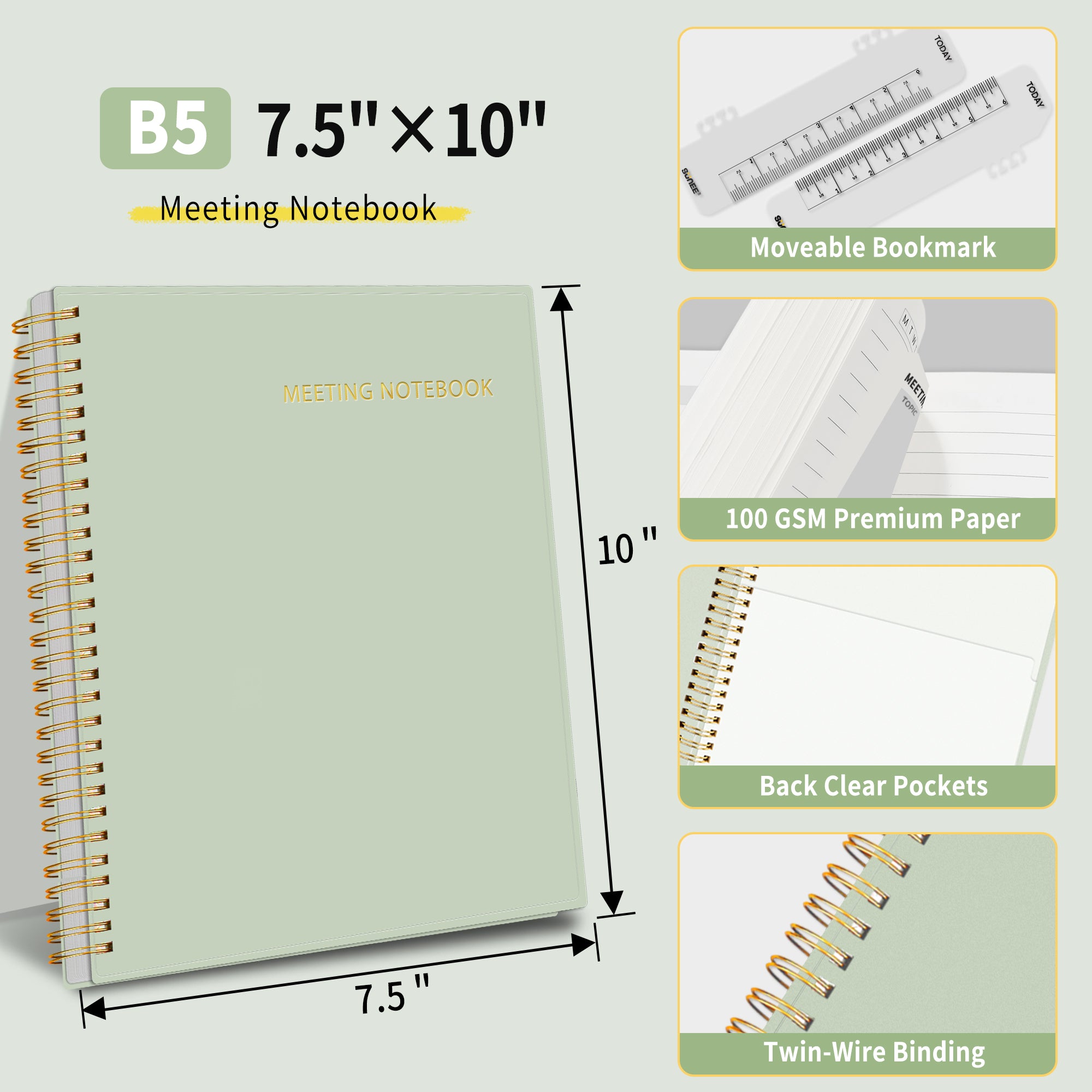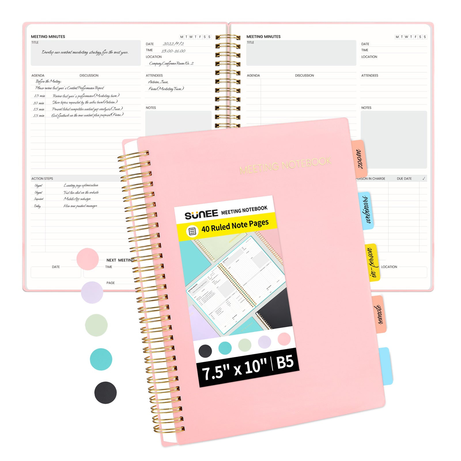 SUNEE Half Meeting Half Note - 7.5"x10" Professional Notebooks for Work - 160 Pages, B5 Size Project Planner, Spiral Meeting Agenda/Minutes Organizer for Women Men, Note Taking, Office & Business
