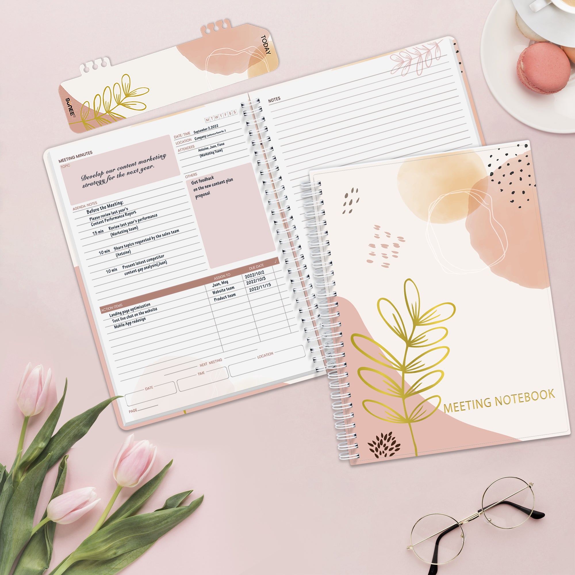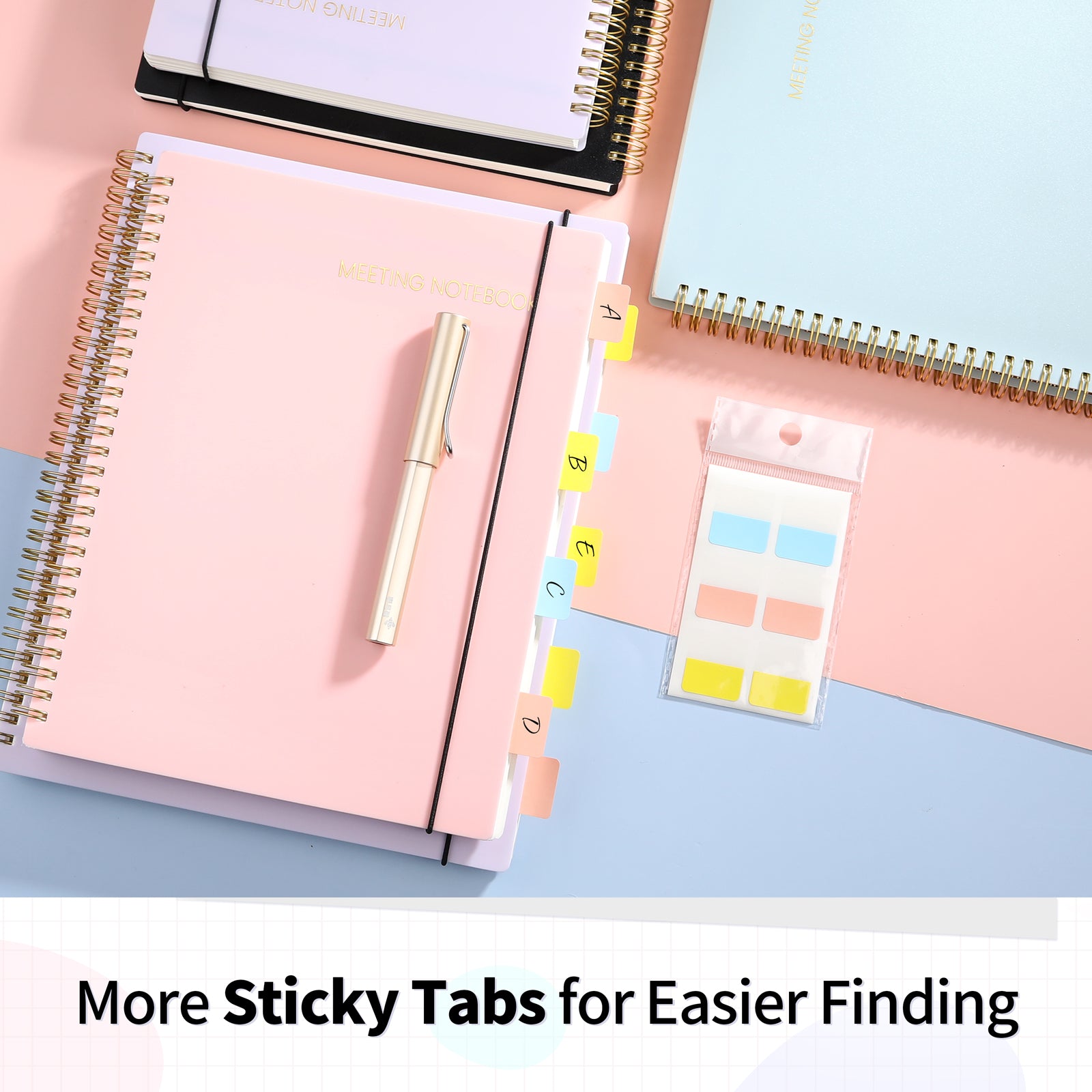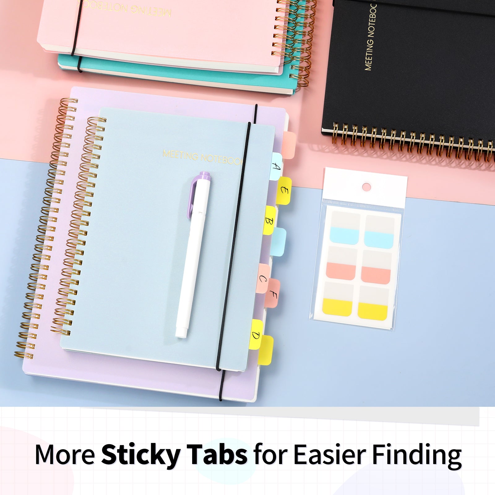 SUNEE Spiral Meeting Notebook for Work with Sticky Tabs 160 Pages