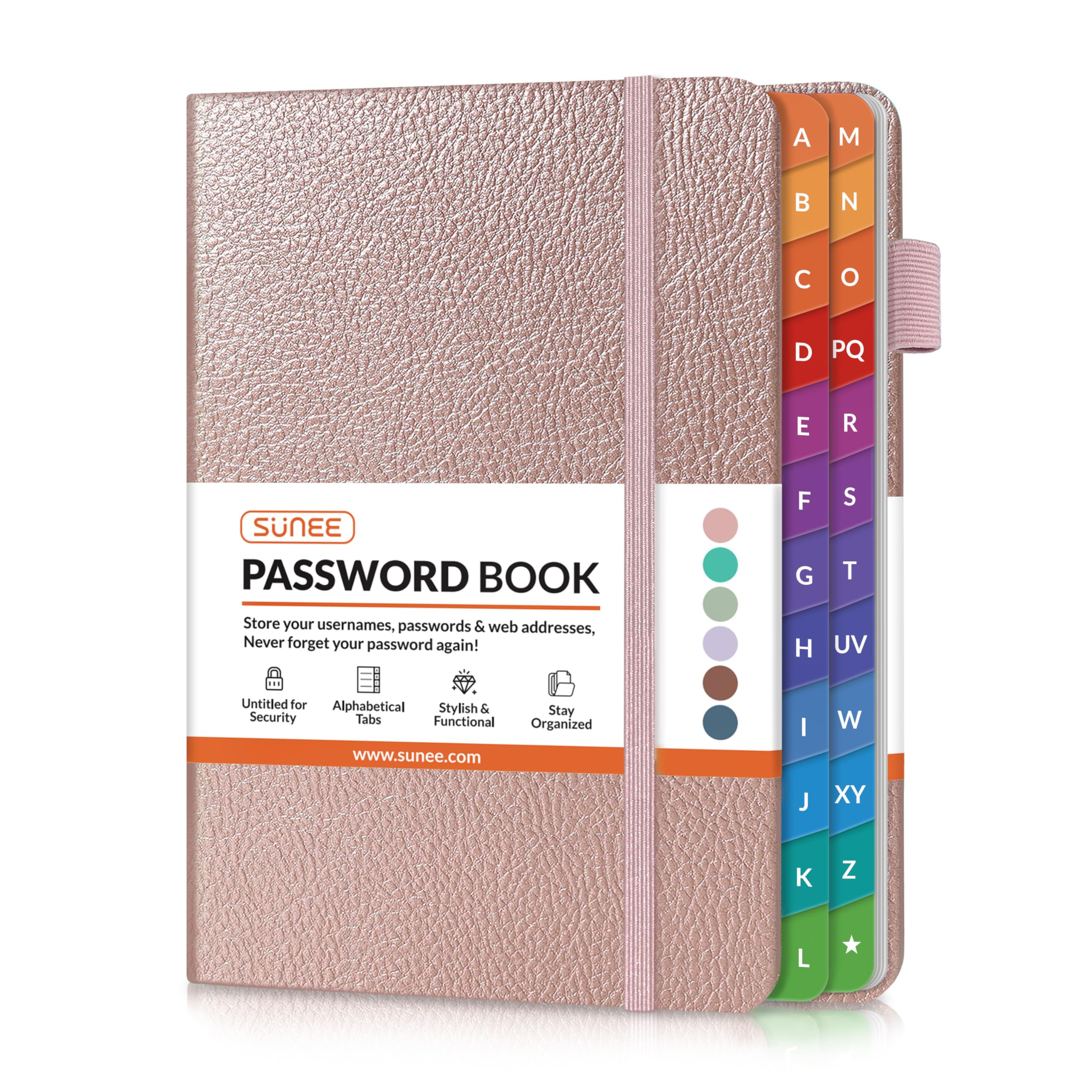 SUNEE Password Keeper Book with A–Z Tabs, Medium Password Book for Seniors, 5.3”×7.7” Brown