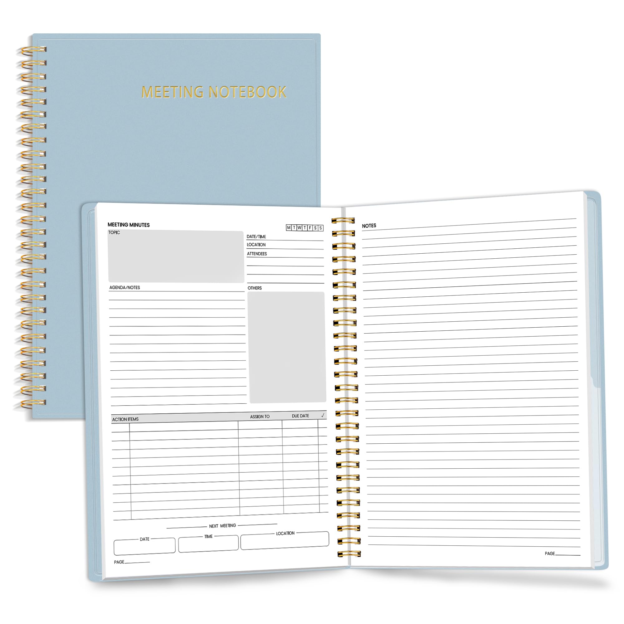 SUNEE Half Meeting Half Note - 7.5"x10" Professional Notebooks for Work - 160 Pages, B5 Size Project Planner, Spiral Meeting Agenda/Minutes Organizer for Women Men, Note Taking, Office & Business
