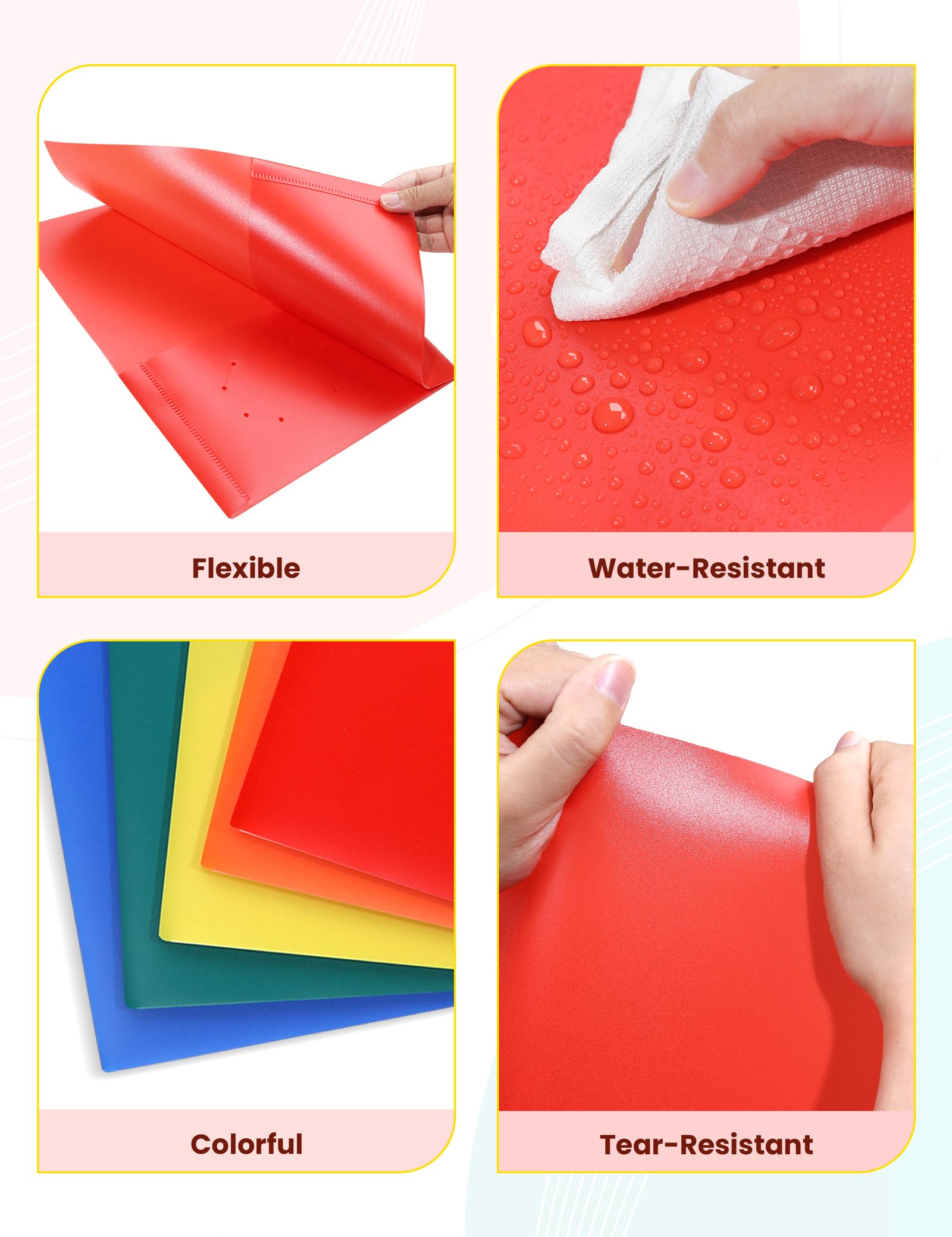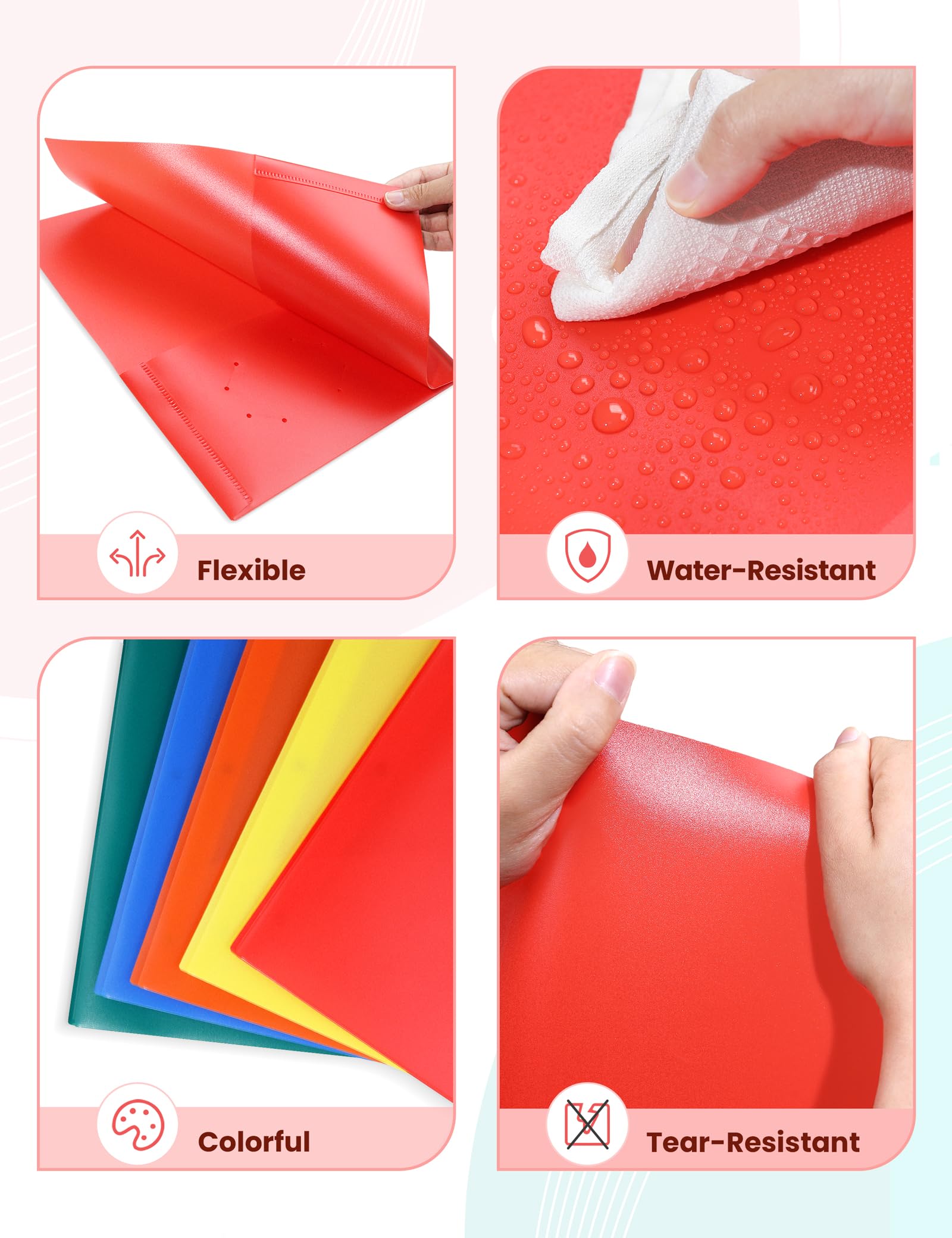 【Recyclable Plastic Material】These folders are made from durable, recyclable plastic to withstand daily wear and tear, providing long-lasting protection for your documents.